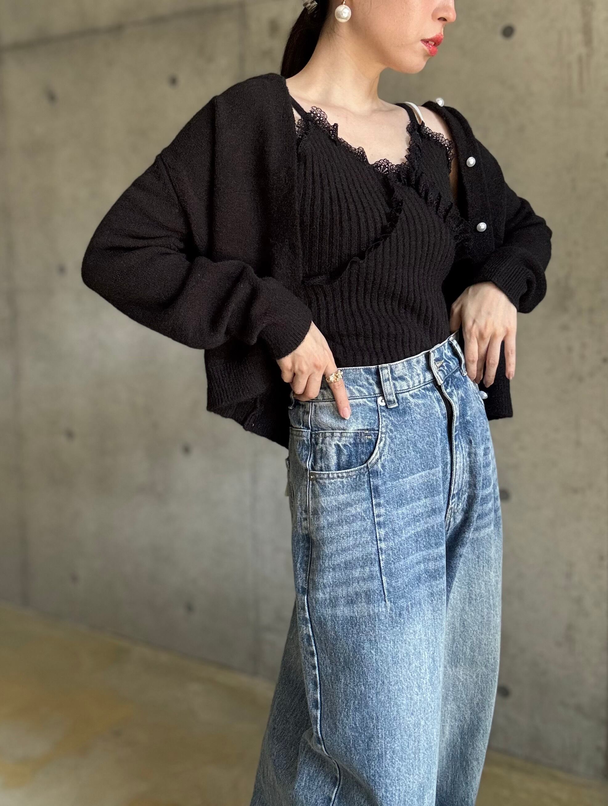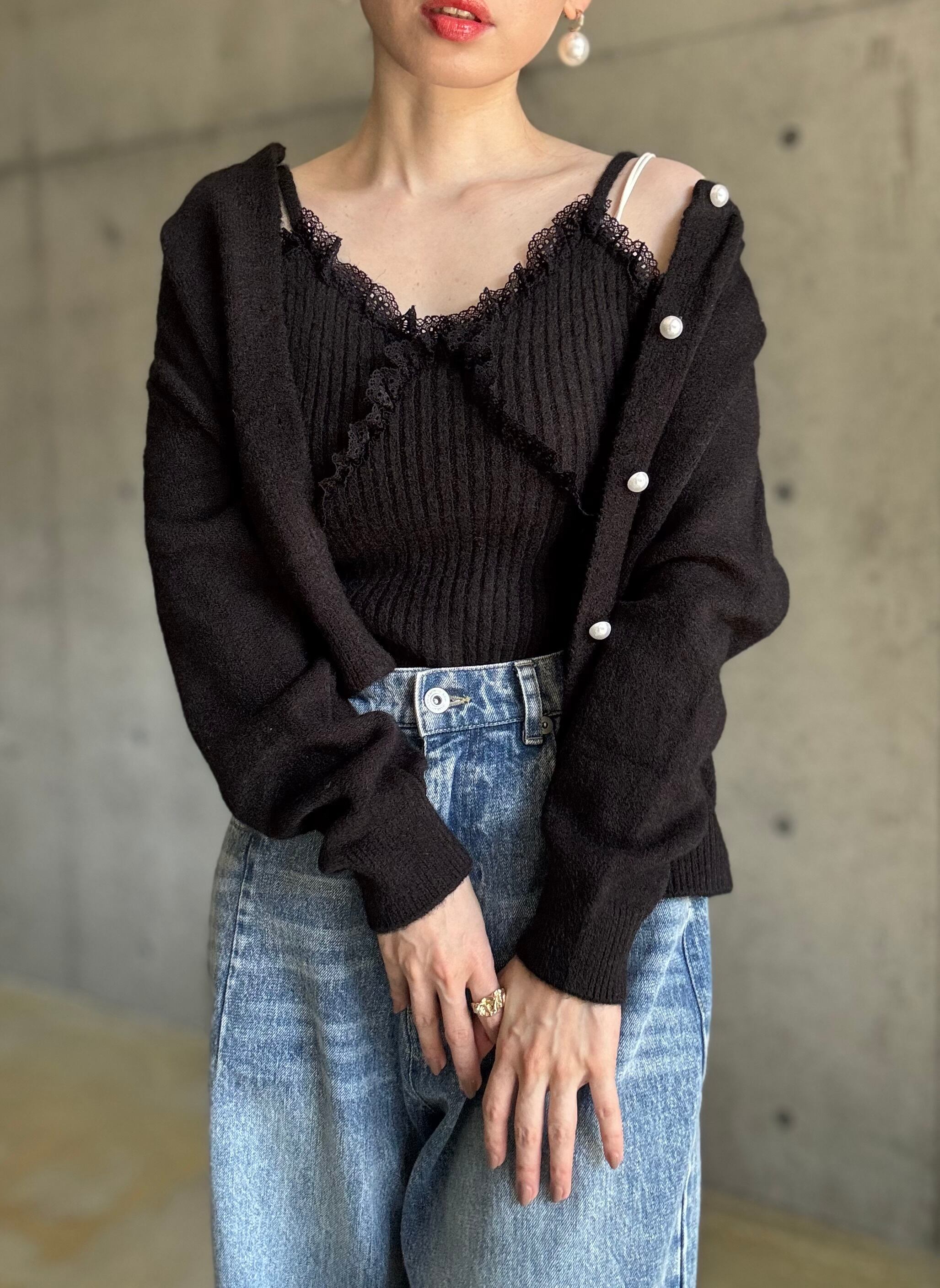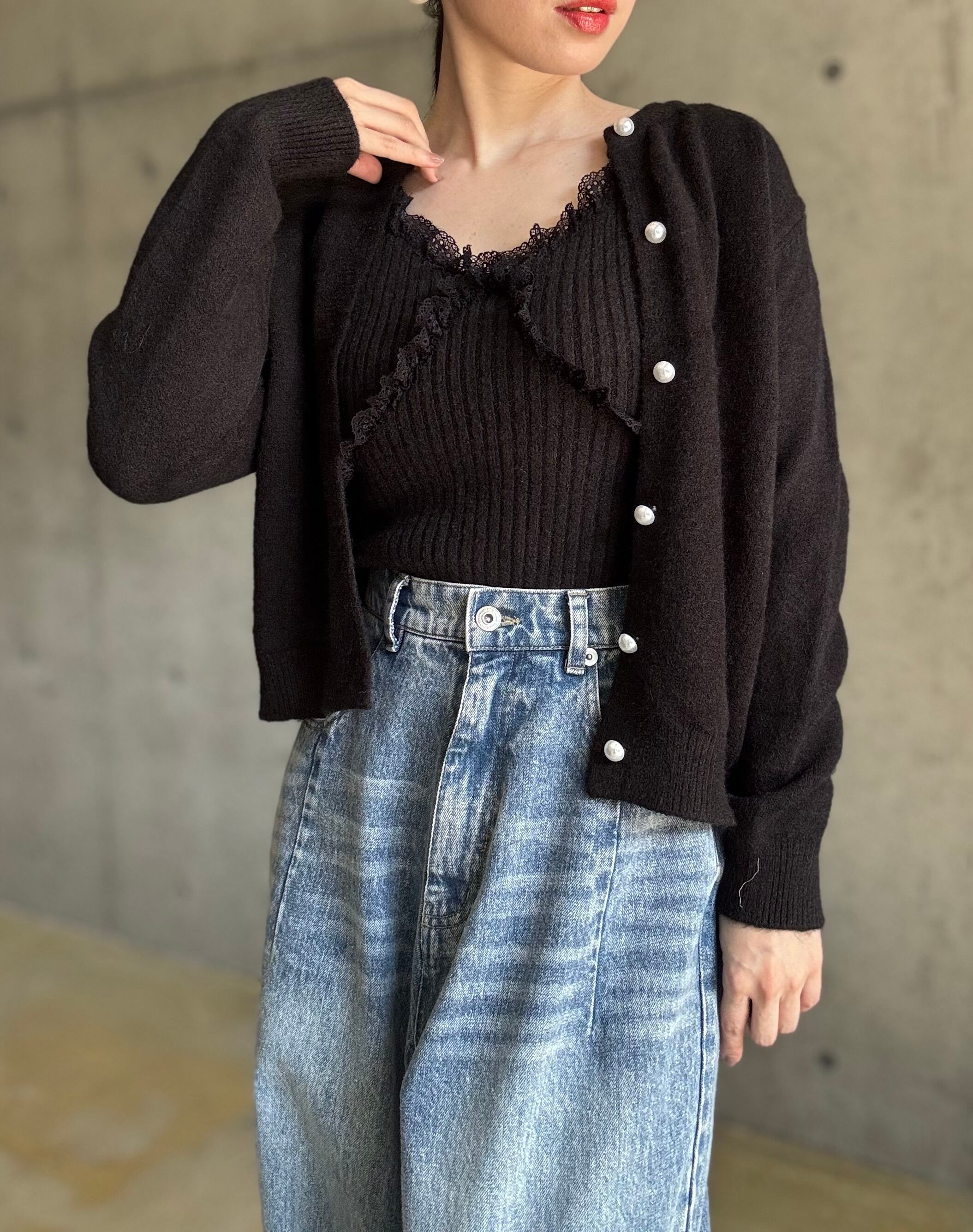 肌触りの良いニットを使用したカーディガンとキャミソールのセットアイテム✨