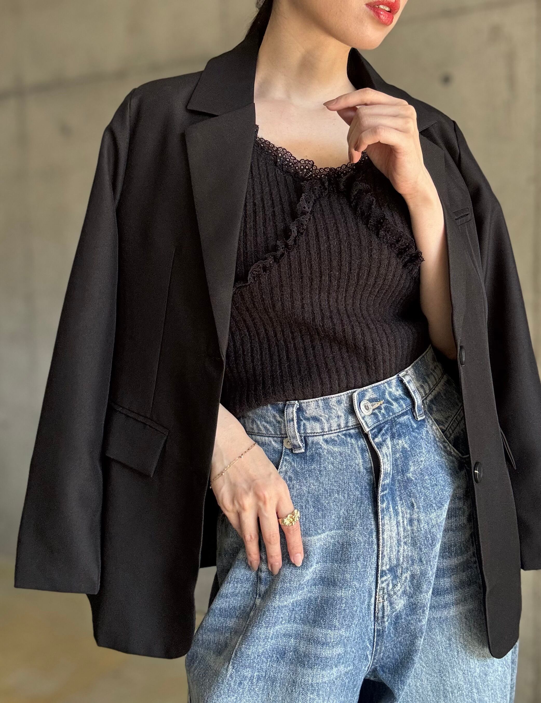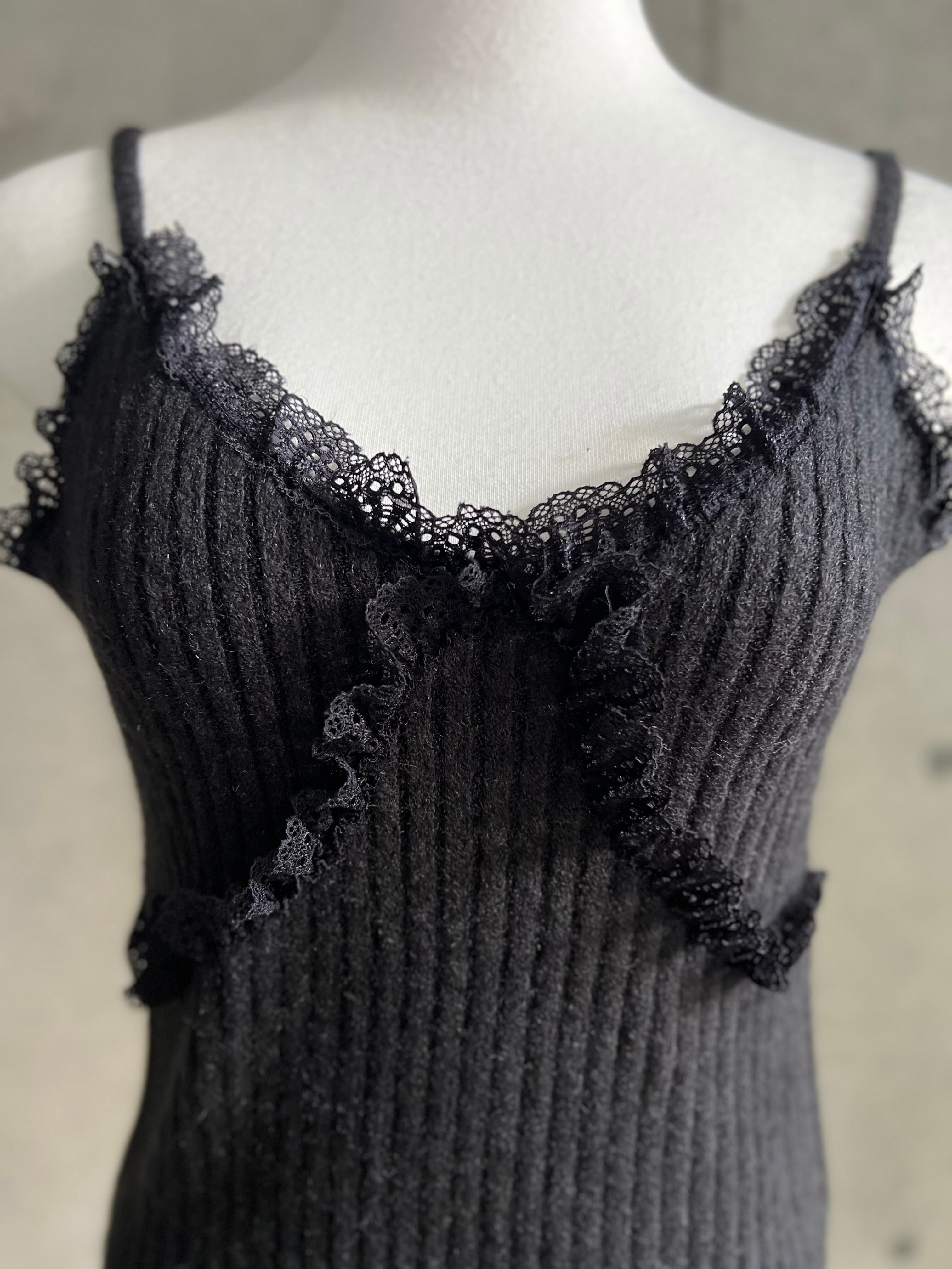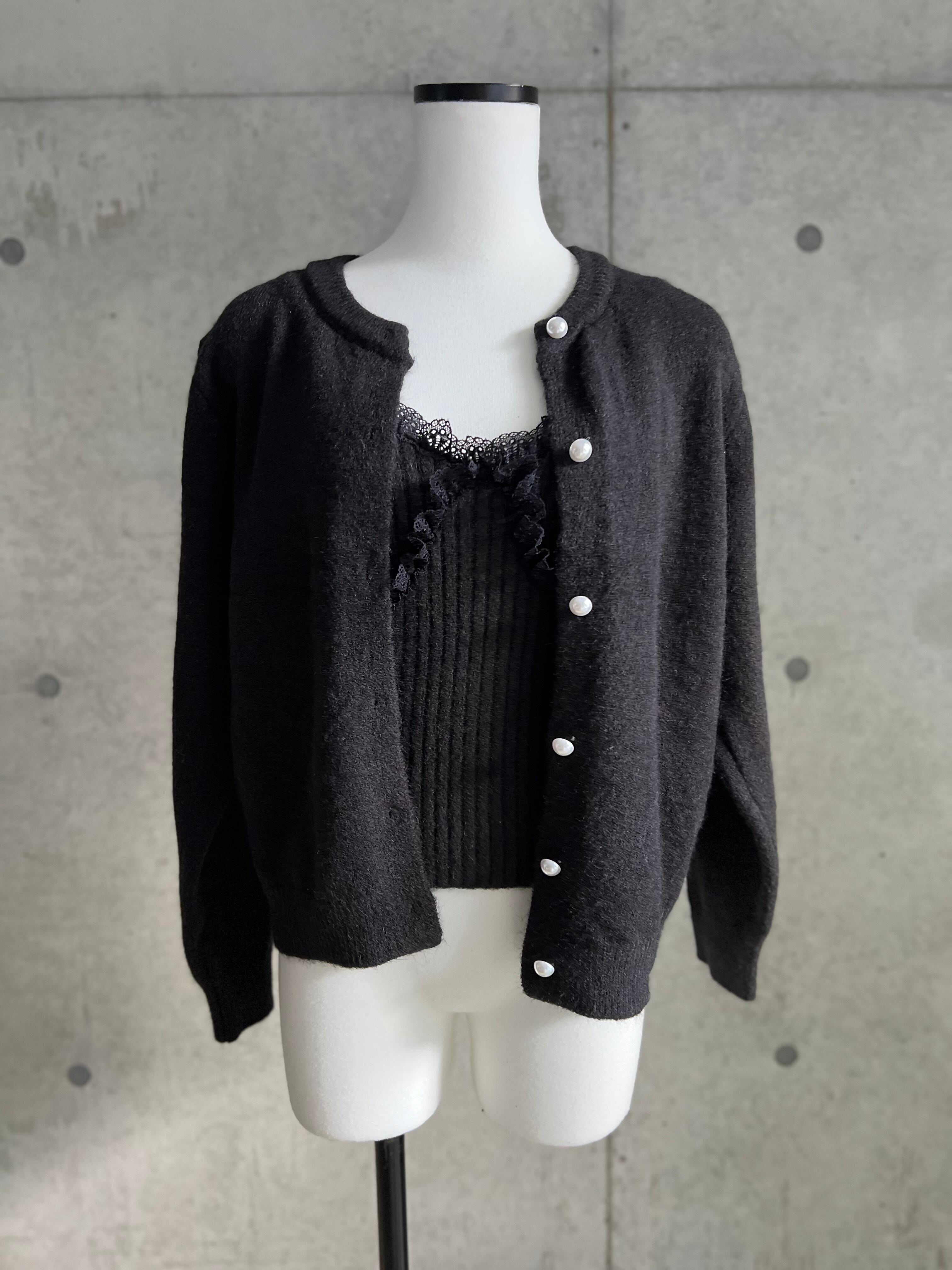 【即納】ニットキャミソール+カーディガンset【ブラック】