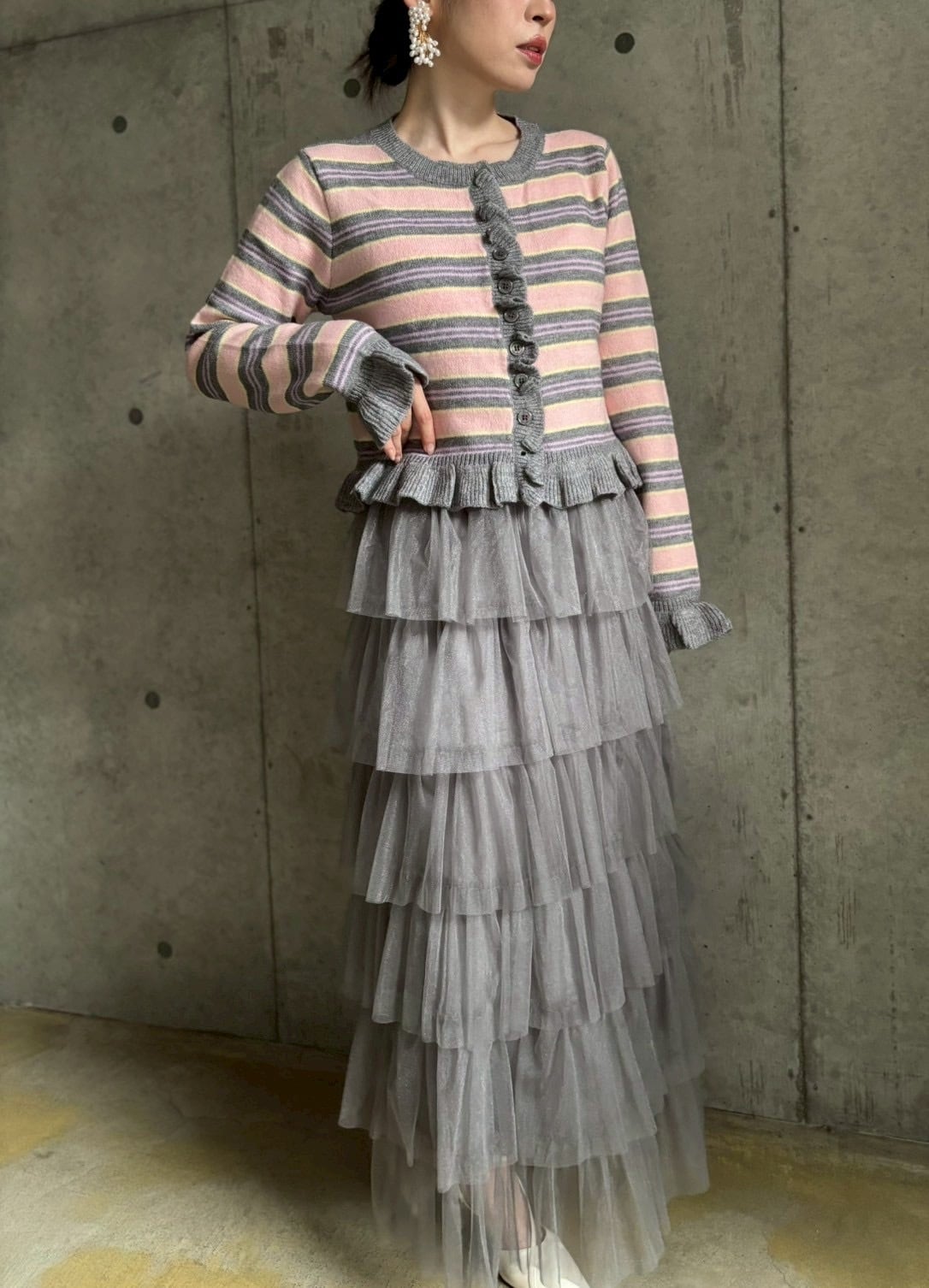 ブラウスやニット、スウェットなど、合わせるものによってオールシーズン着用できるアイテム♪