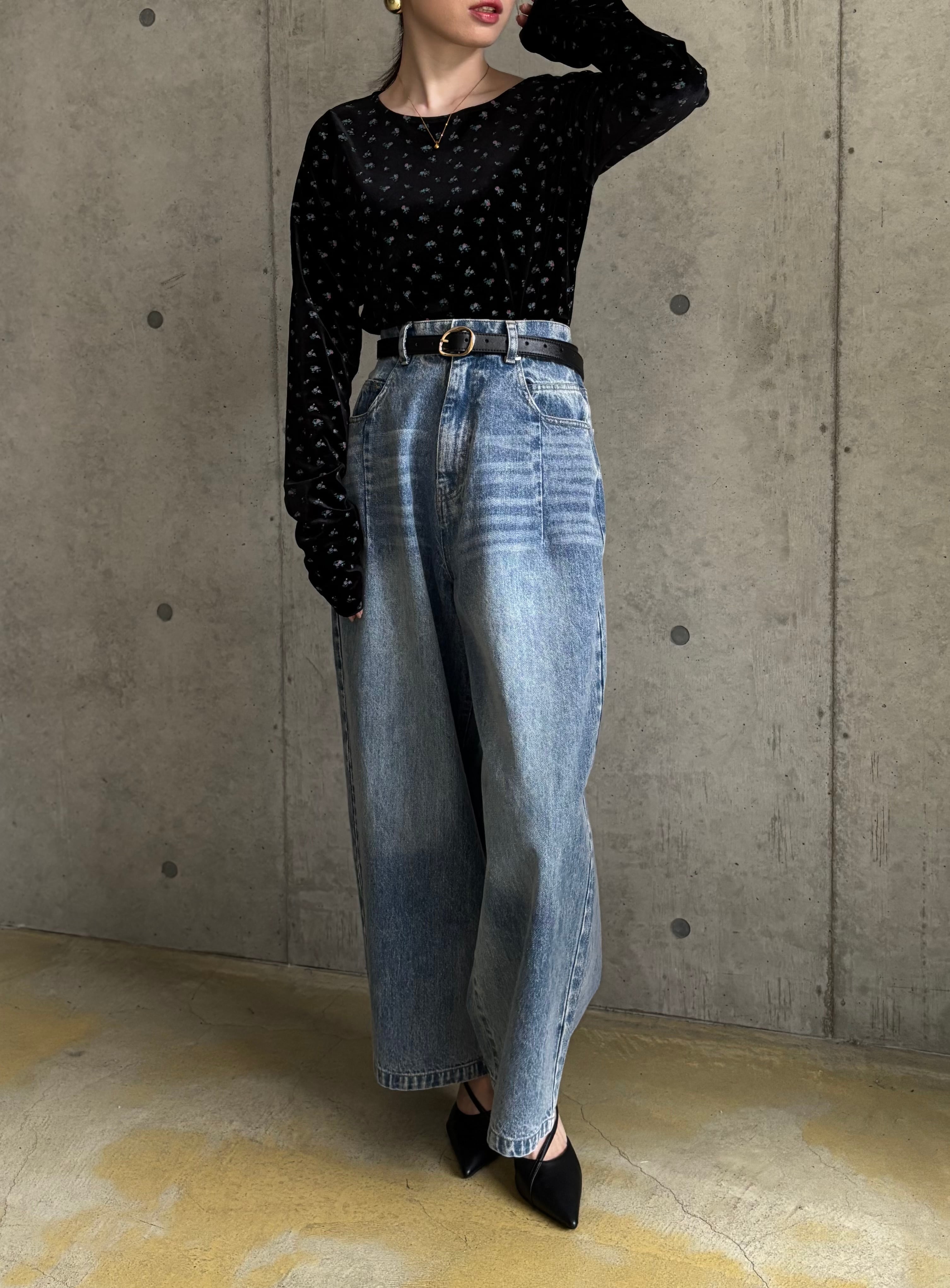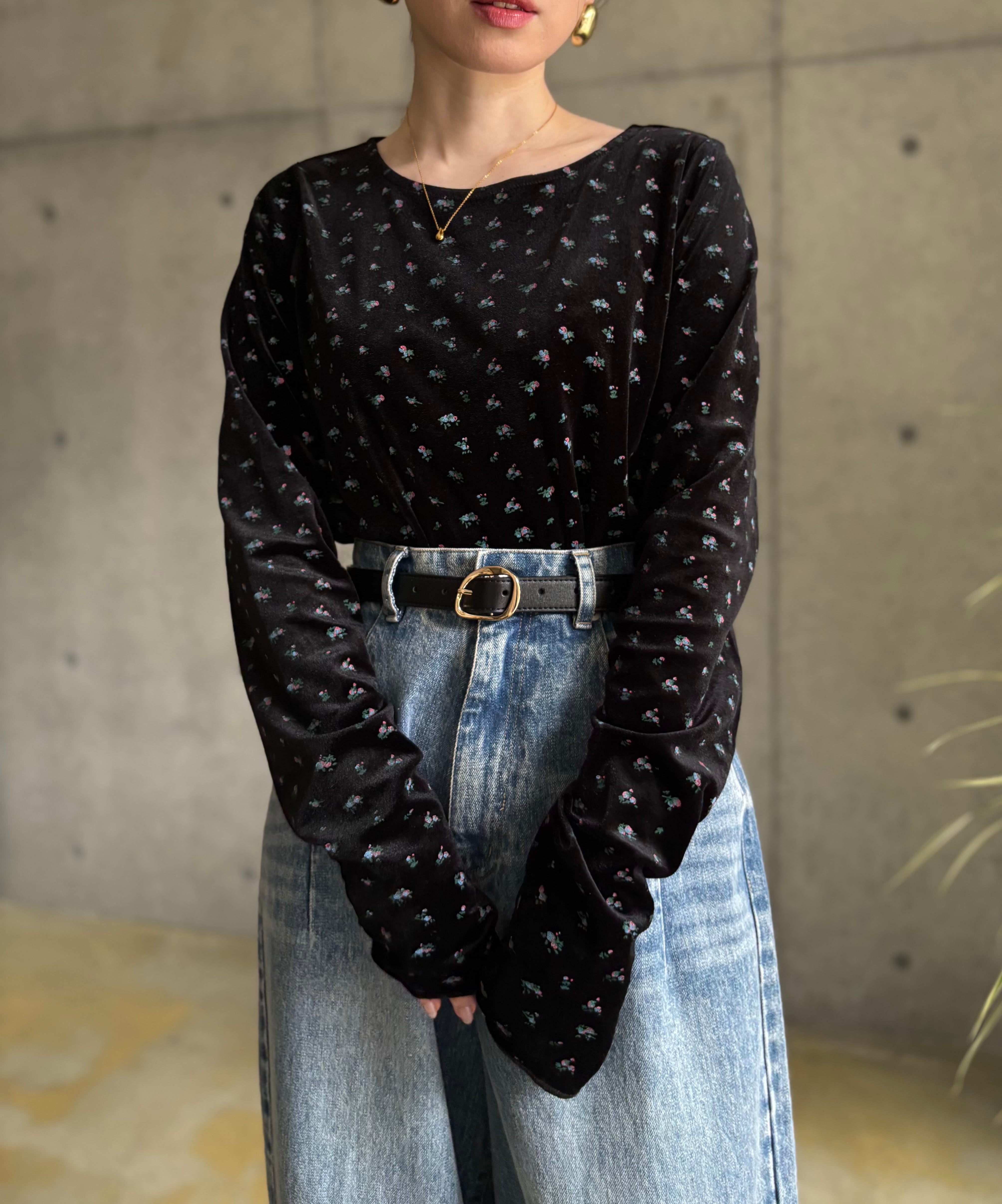 【10/7 21:00〜】小花柄ベロアtops【ブラック】