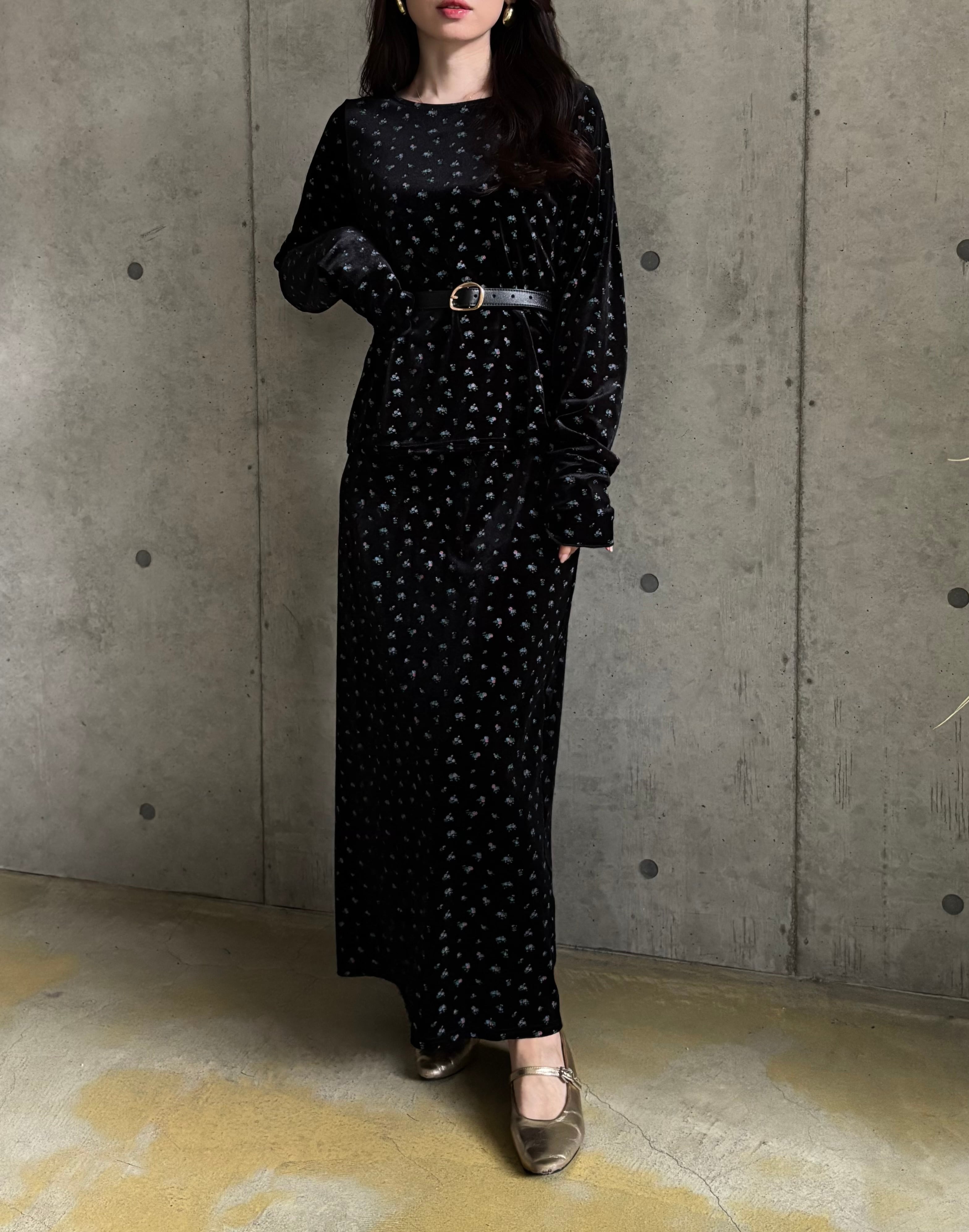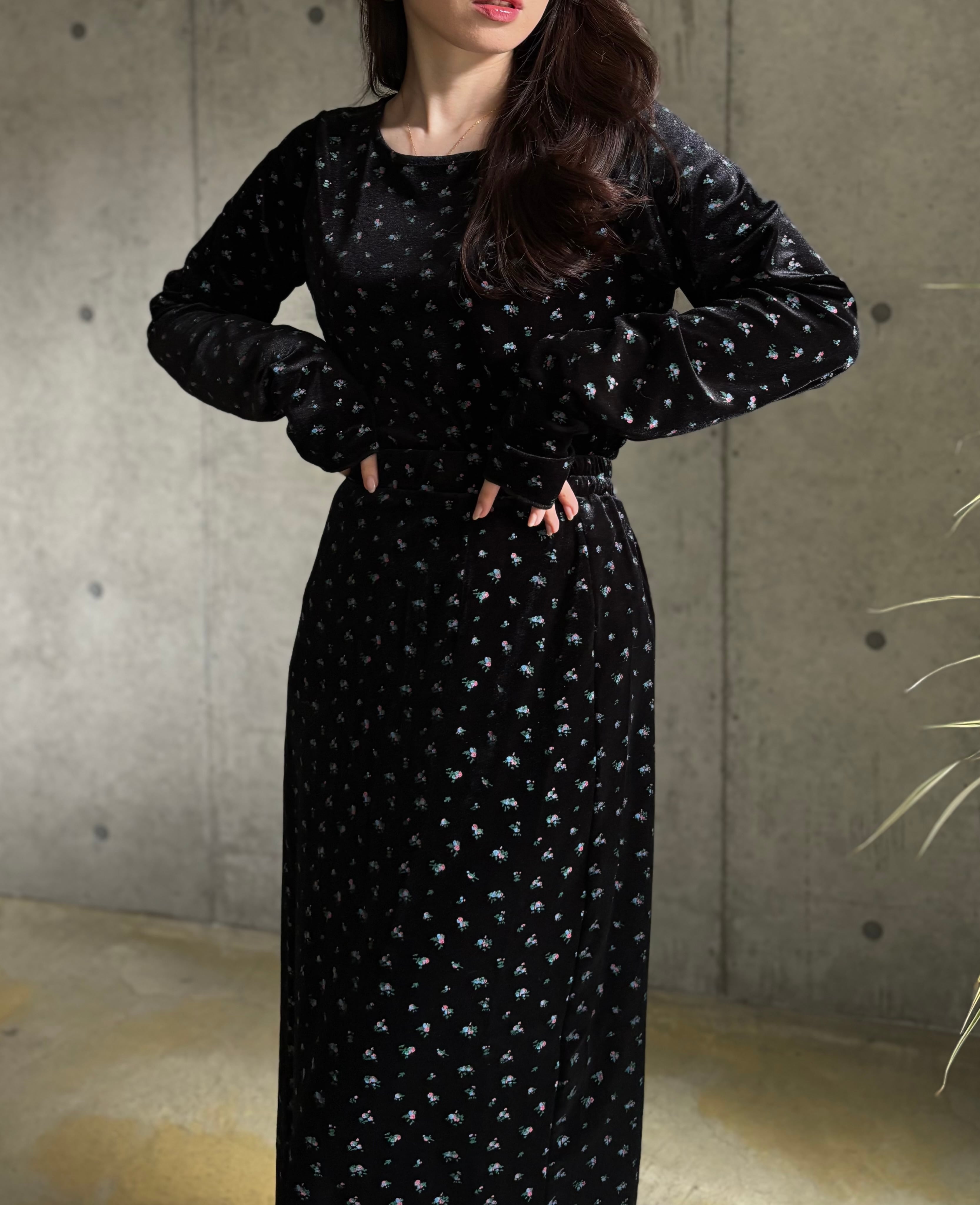 【10/7 21:00〜】小花柄ベロアスカート【ブラック】