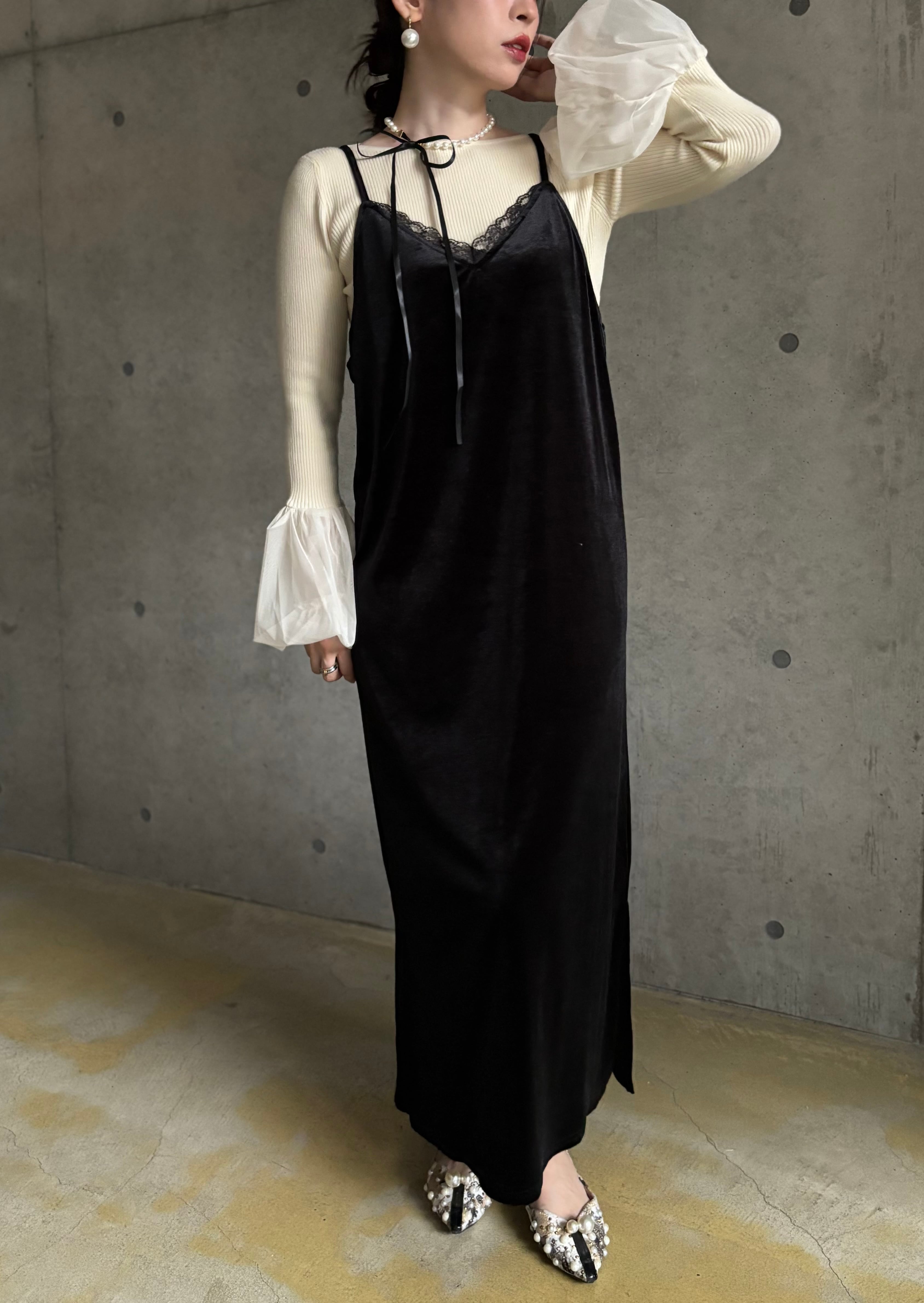 【10/7 21:00〜】レースベロアキャミワンピース【ブラック】