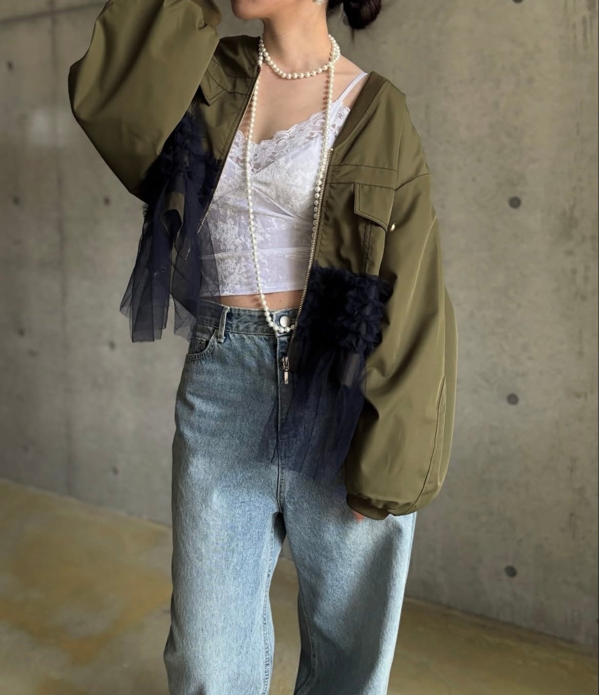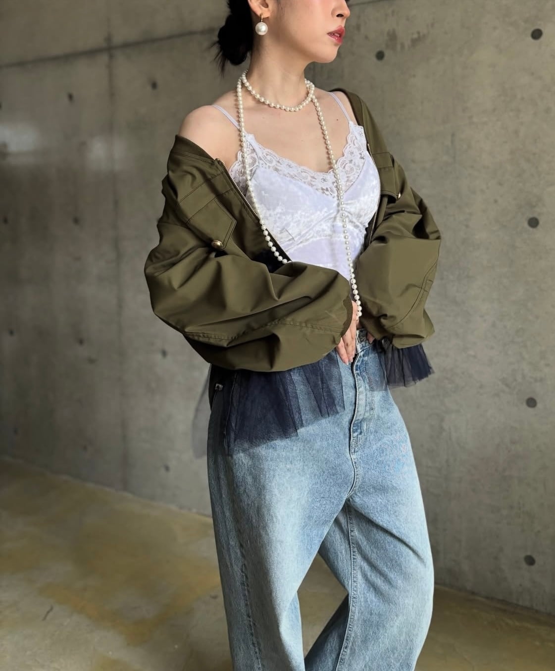 キレイめアイテムとのスタイリングはもちろん、デニムなどと合わせて敢えてカジュアルダウンして着るのもオススメです♪