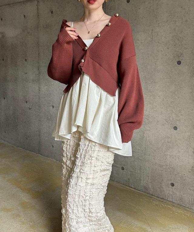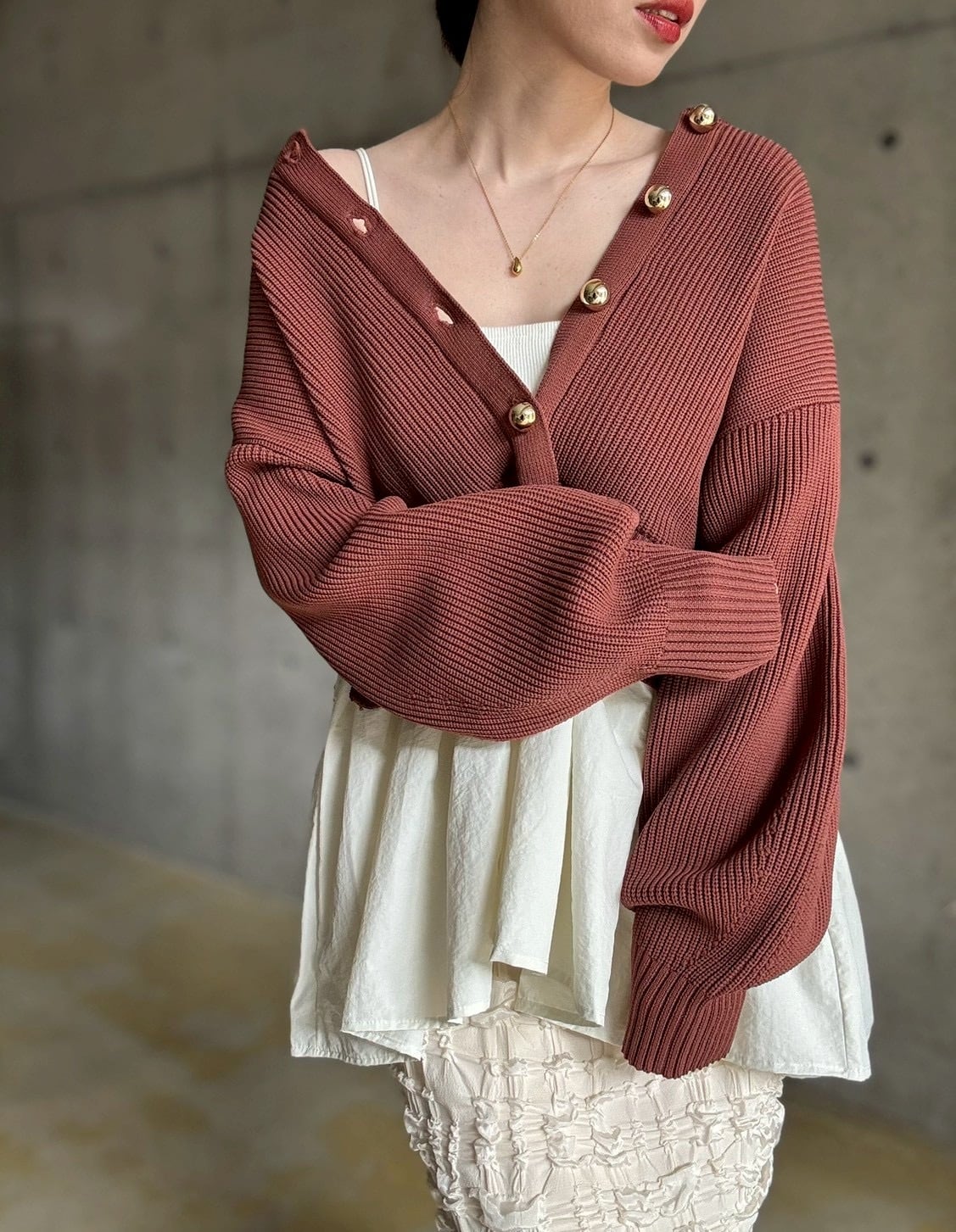 【10/10 21:00〜】ドッキングスポンジニットカーディガン【ダークオレンジ】