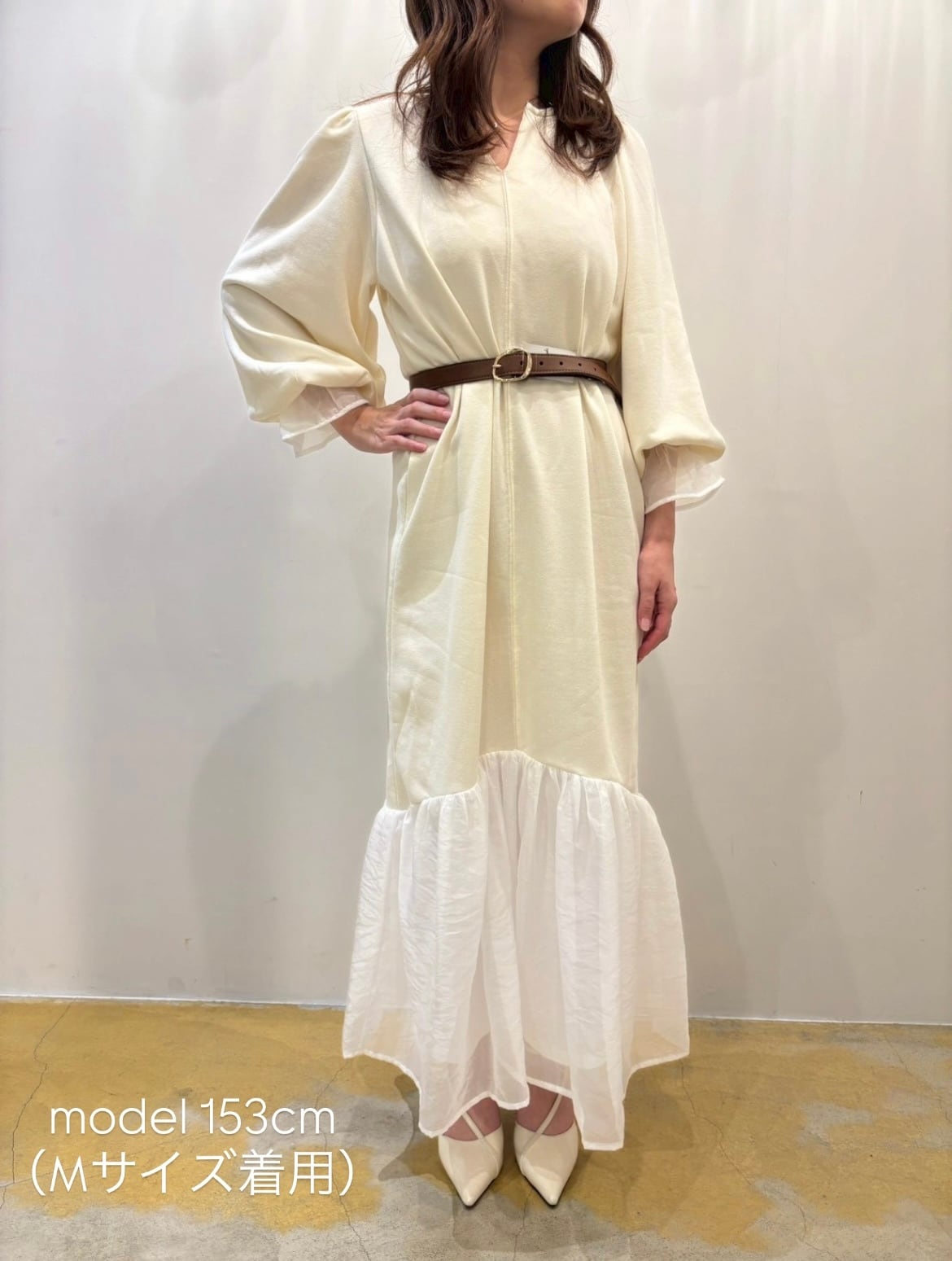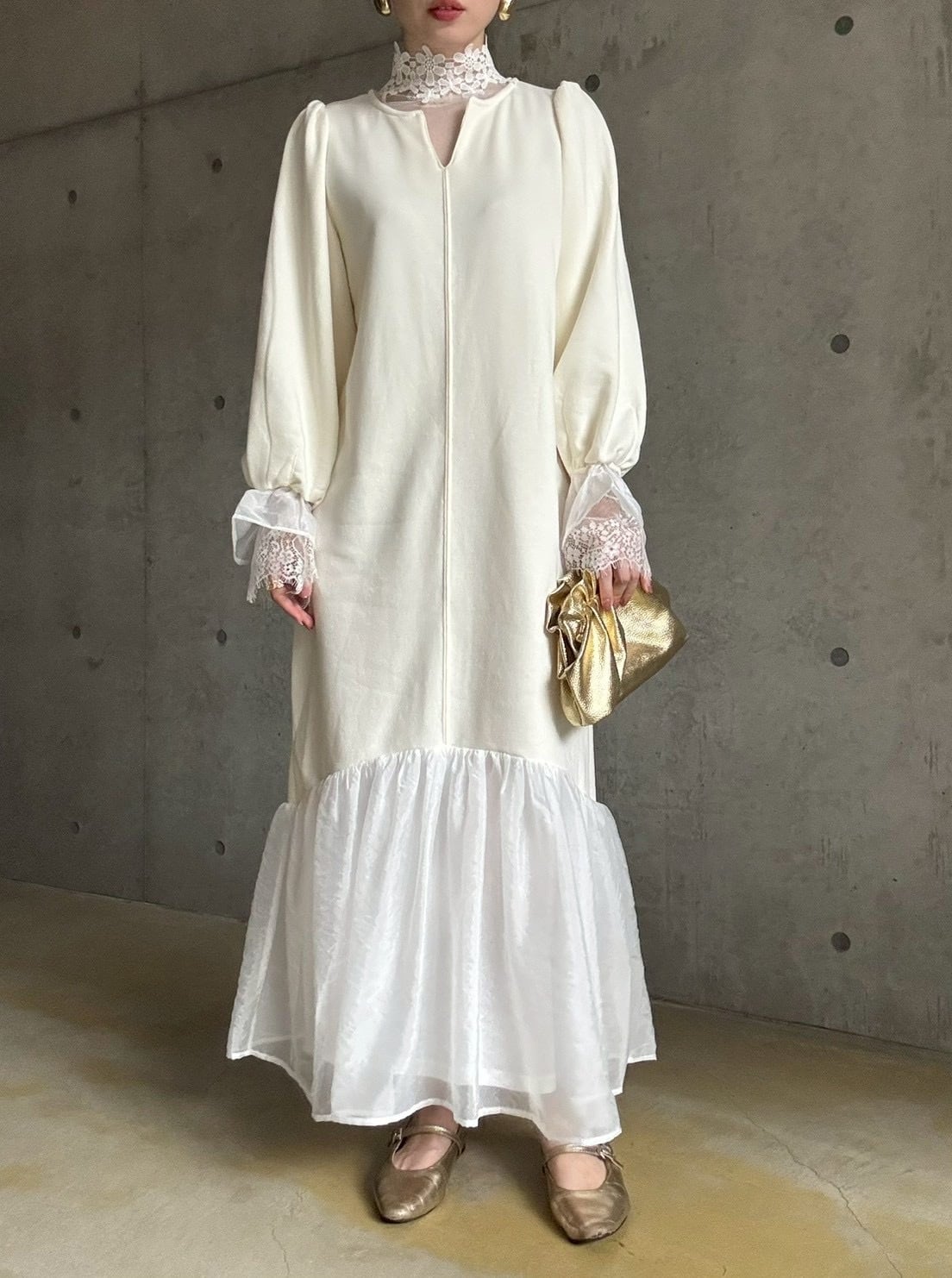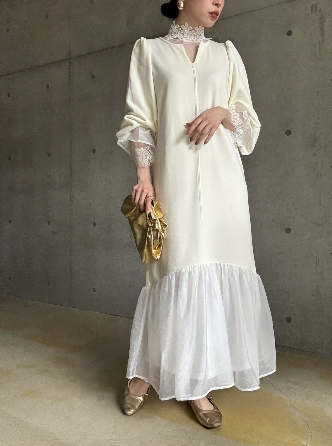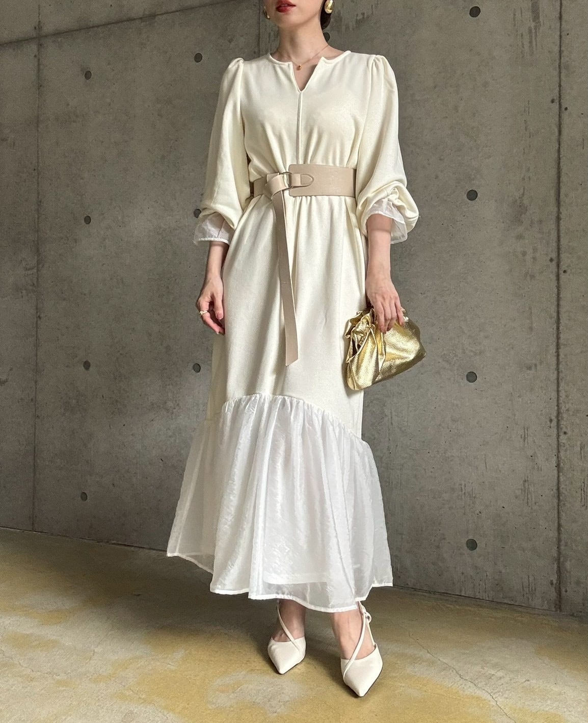 【10/10 21:00〜】オーガンジー切替ロングワンピース【アイボリー】