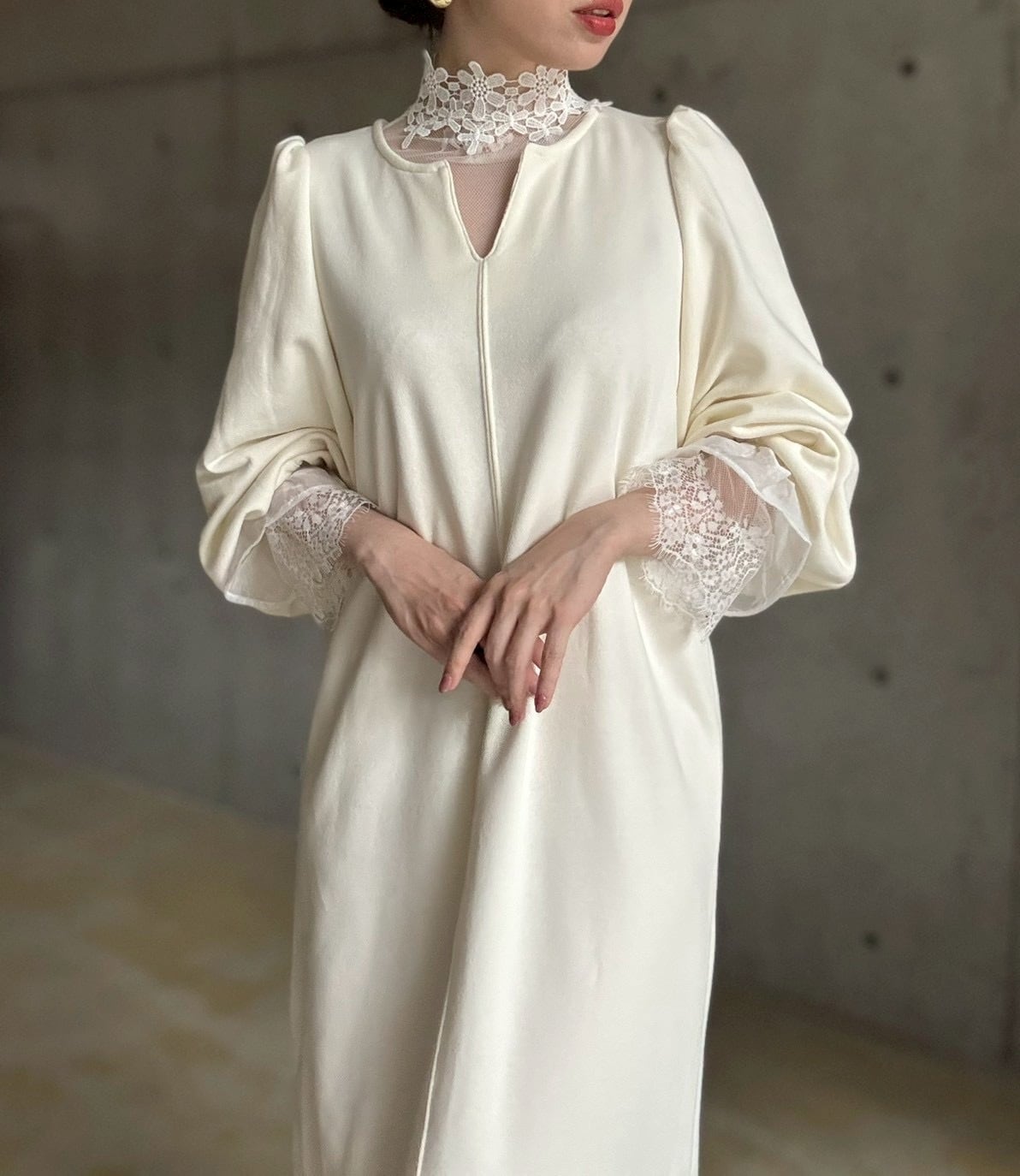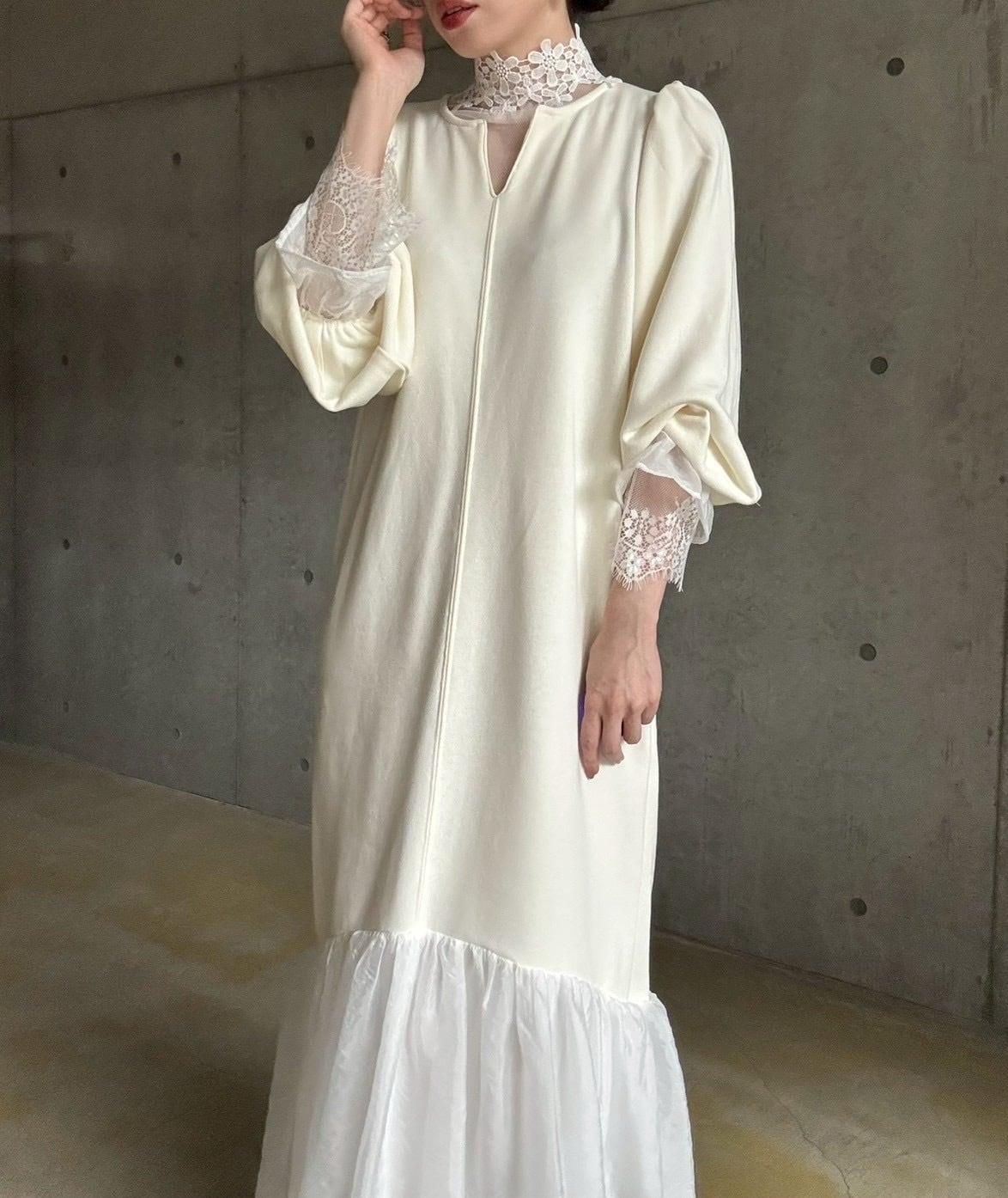 オーガンジーのレースがフェミニンな印象のロングワンピース✨