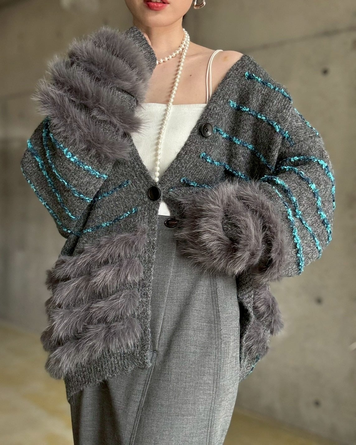 肌触りの良いファーをあしらったボリュームカーディガン✨