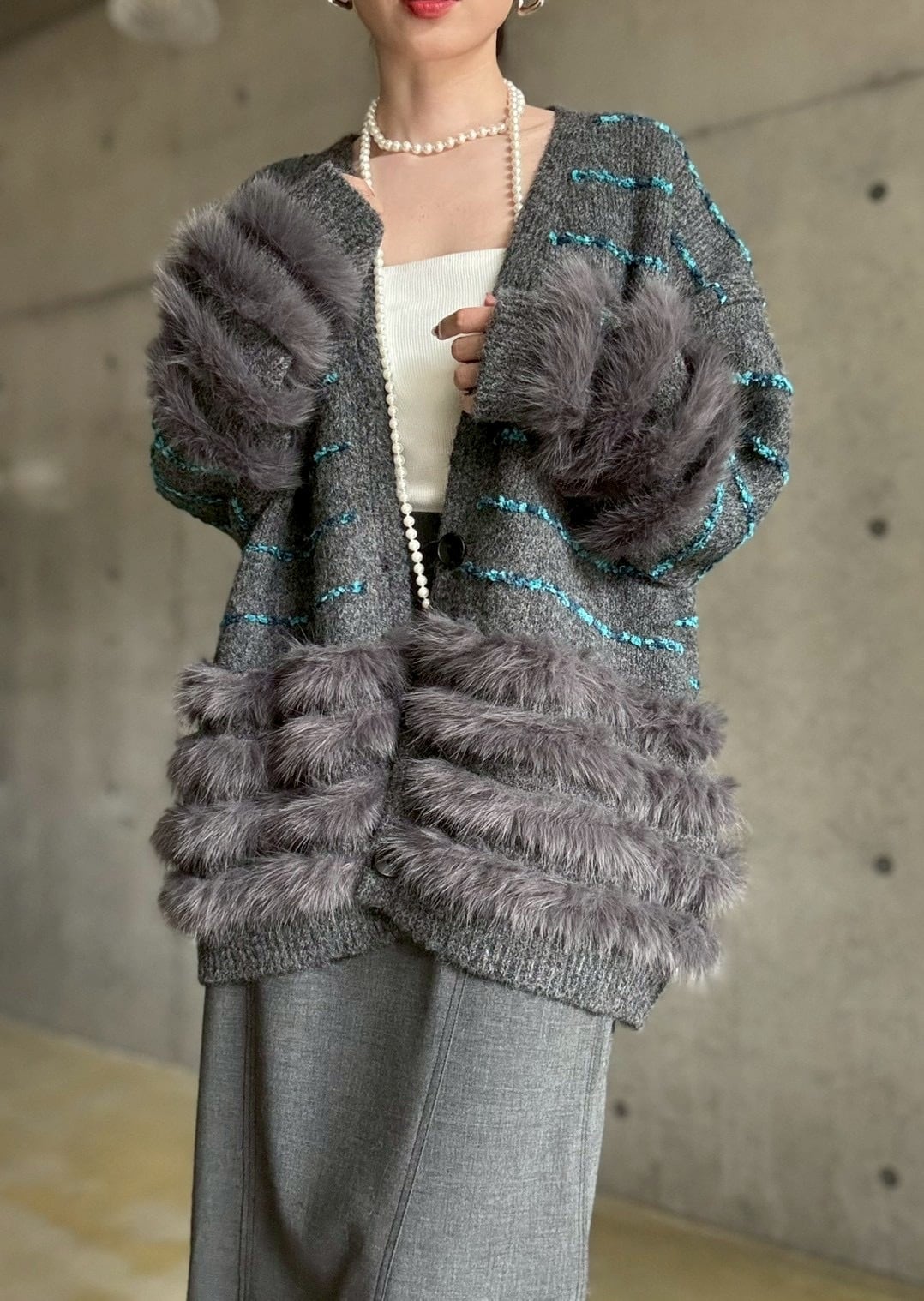 【10/10 21:00〜】ファー付きボリュームニットカーディガン【グレー】