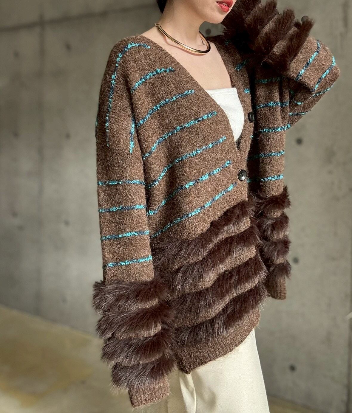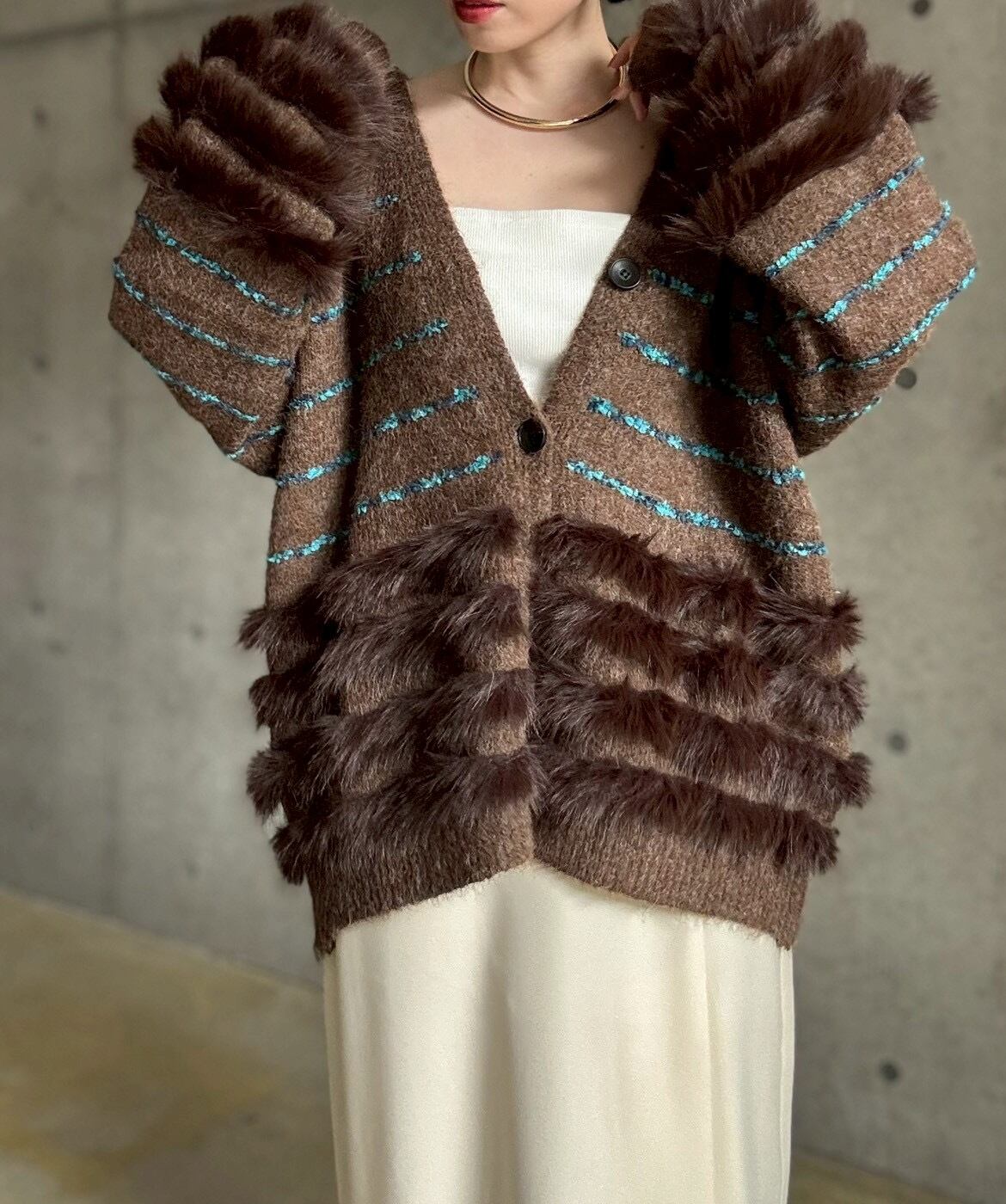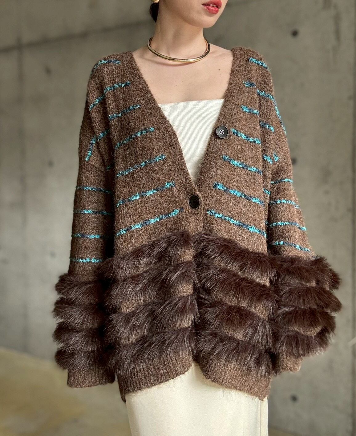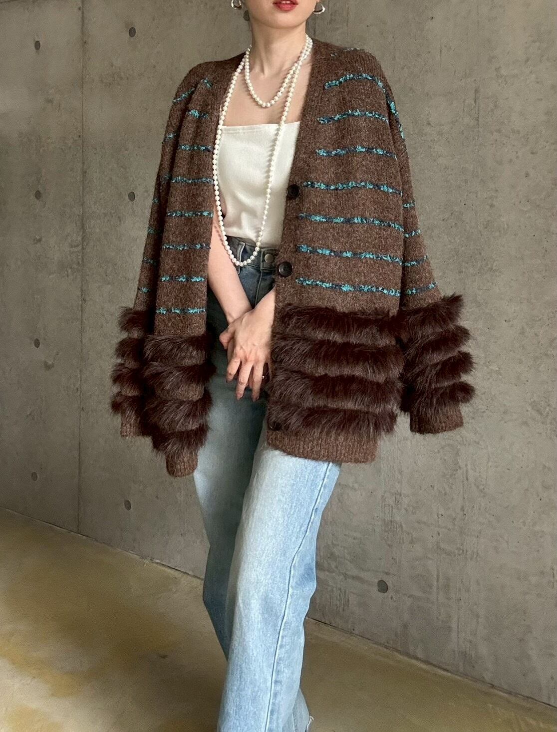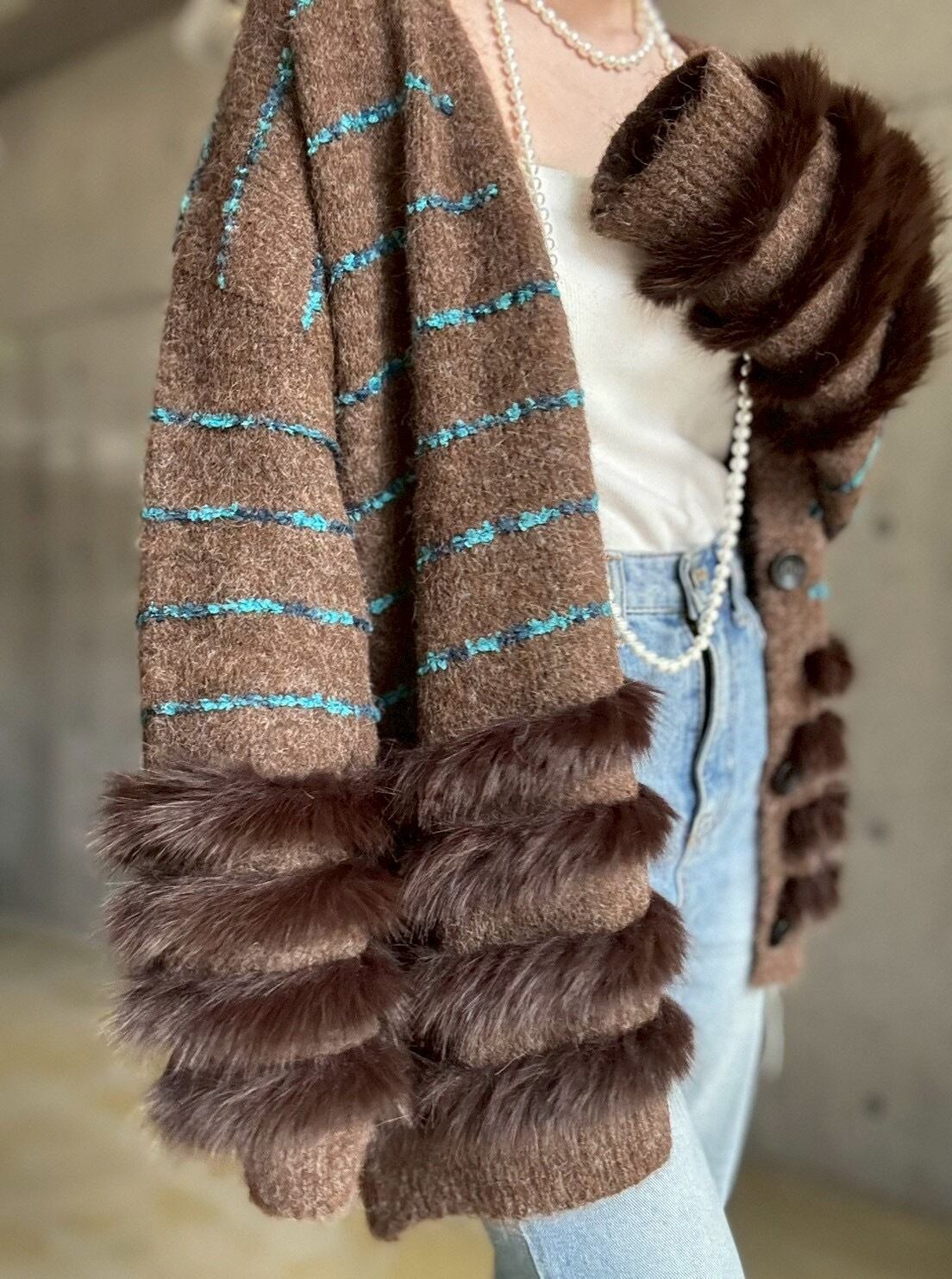 肌触りの良いファーをあしらったボリュームカーディガン✨
