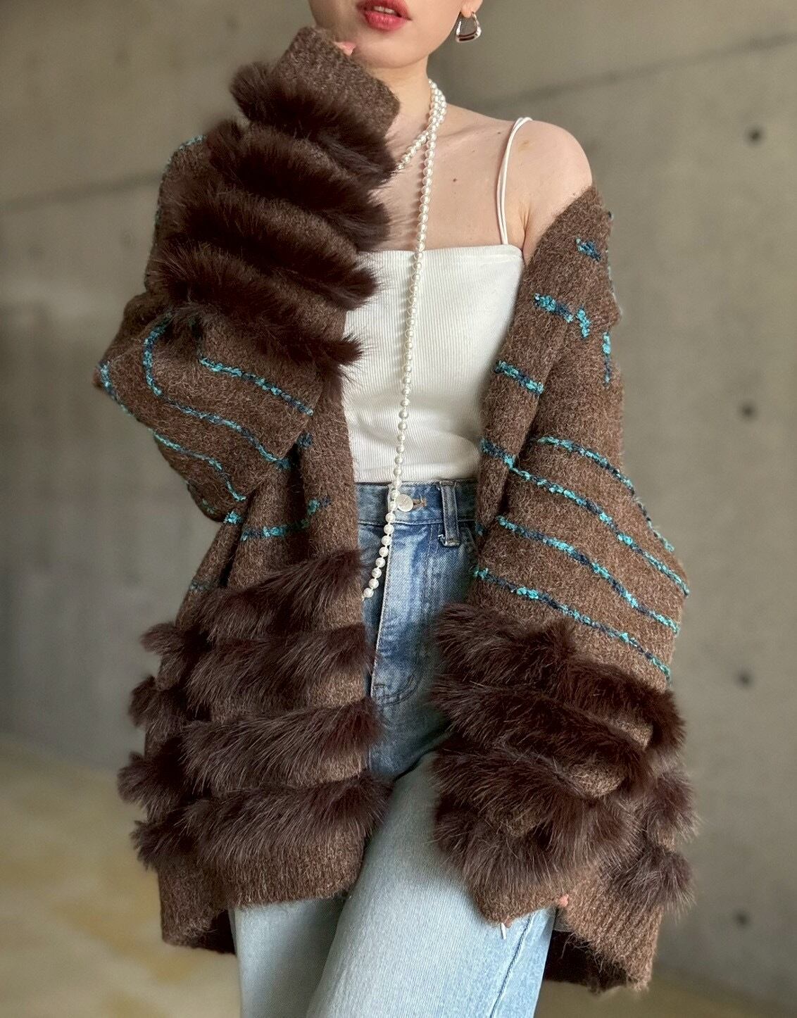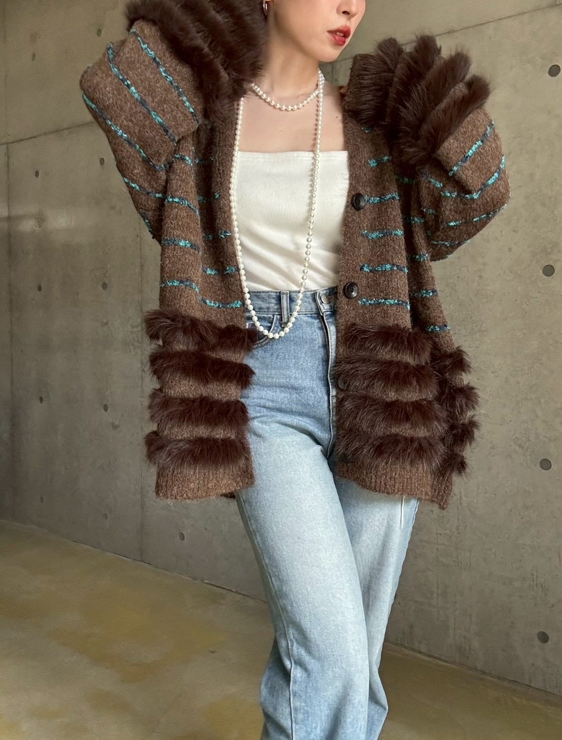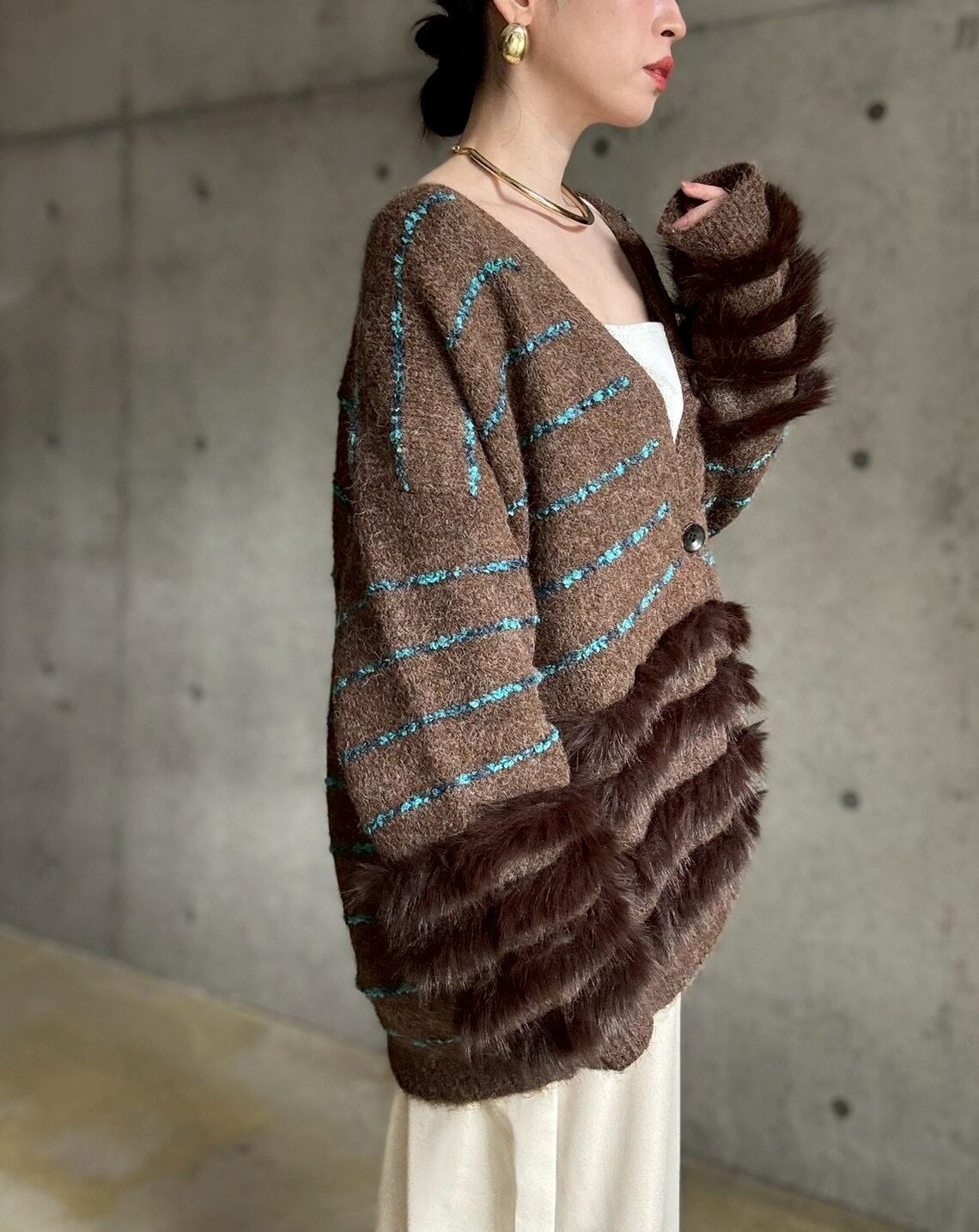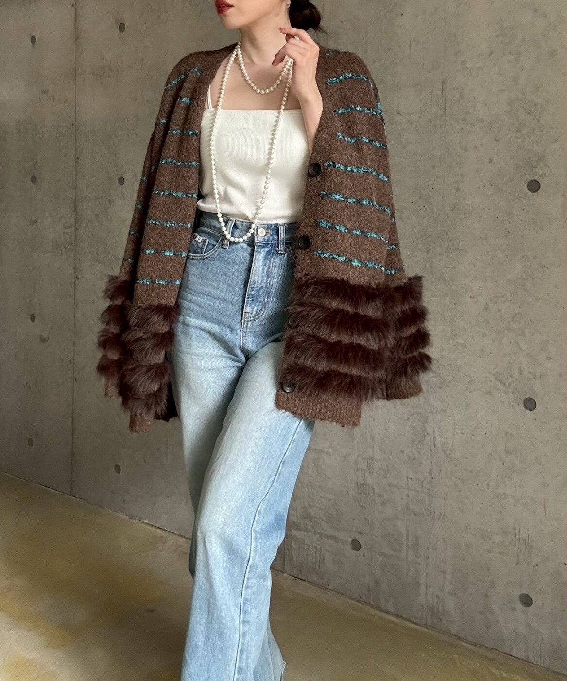 肌触りの良いファーをあしらったボリュームカーディガン✨