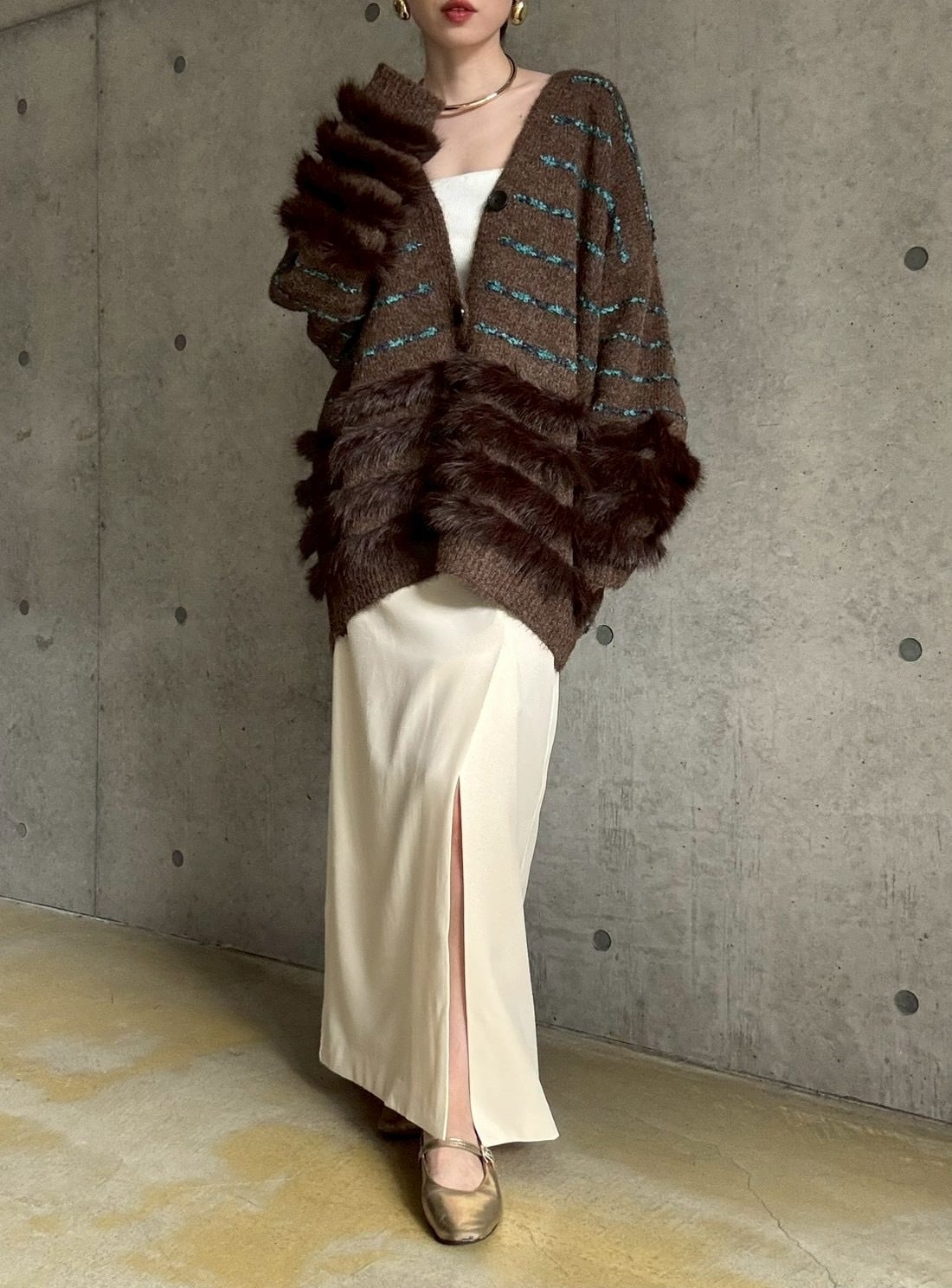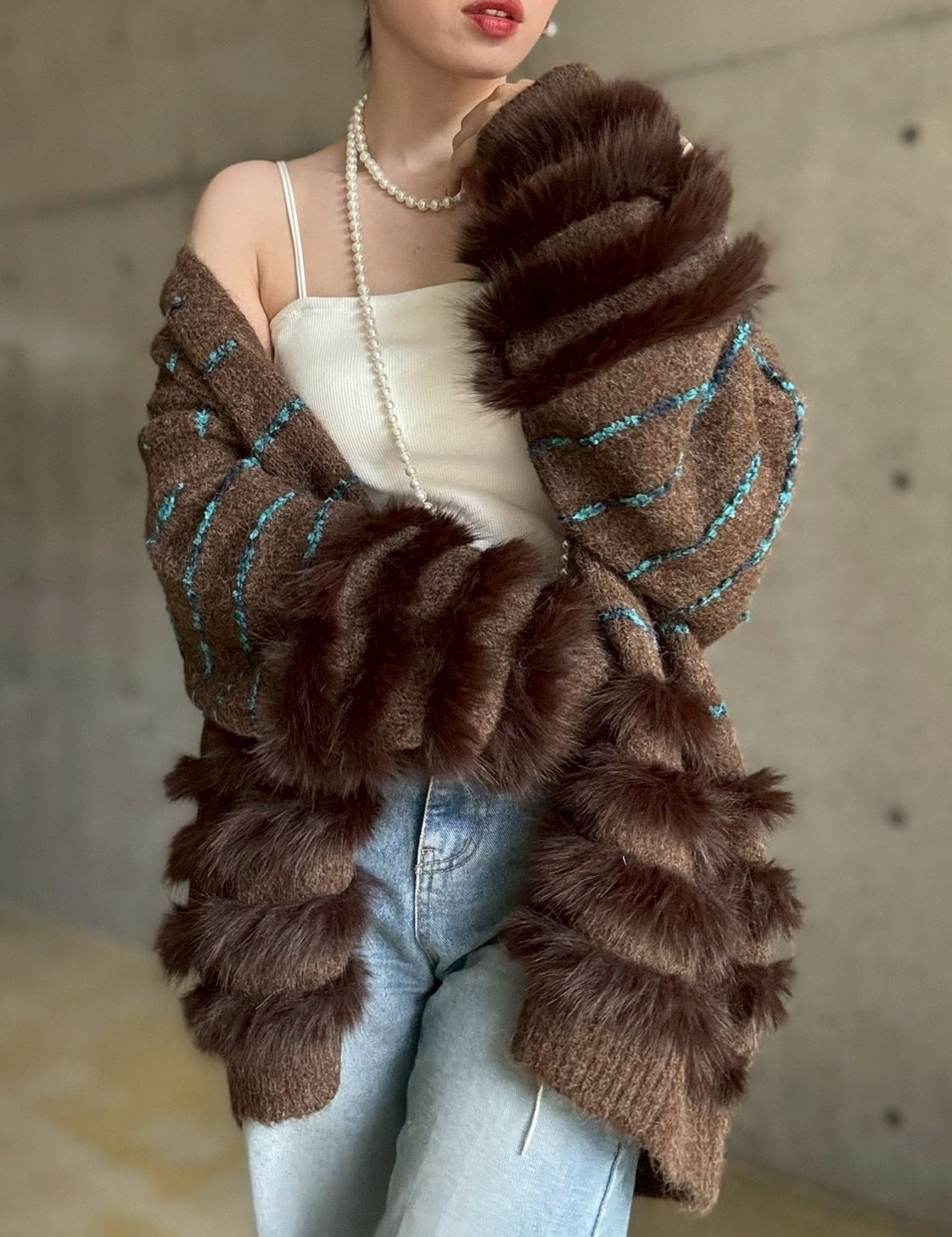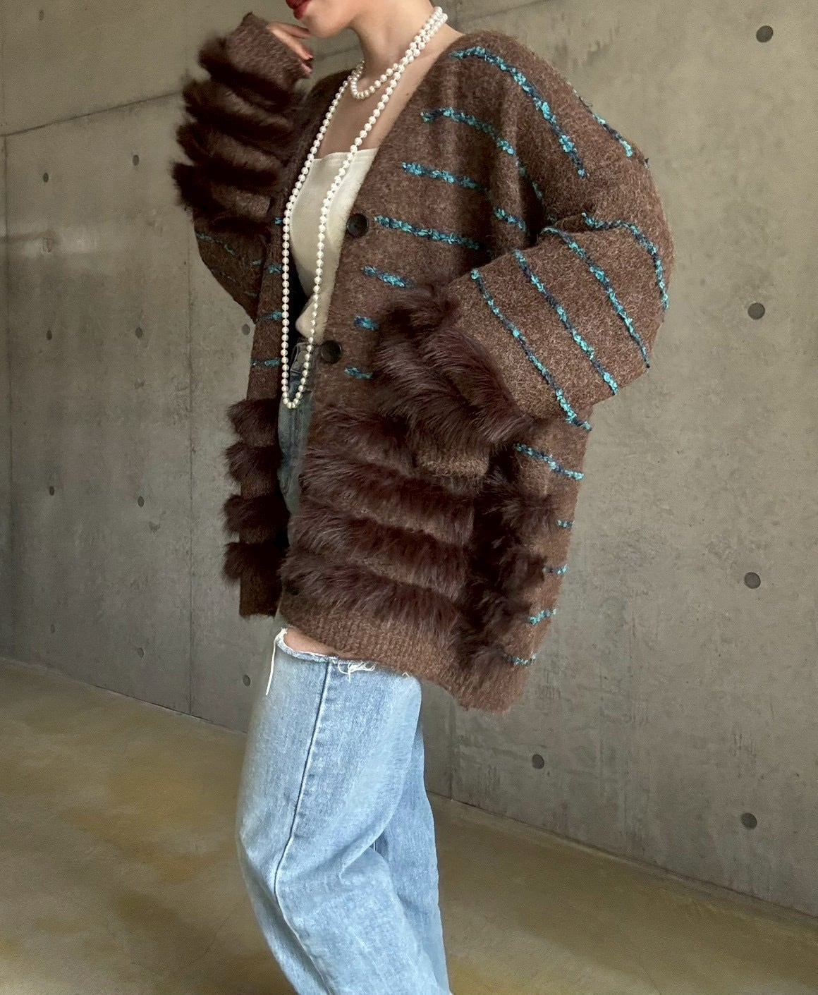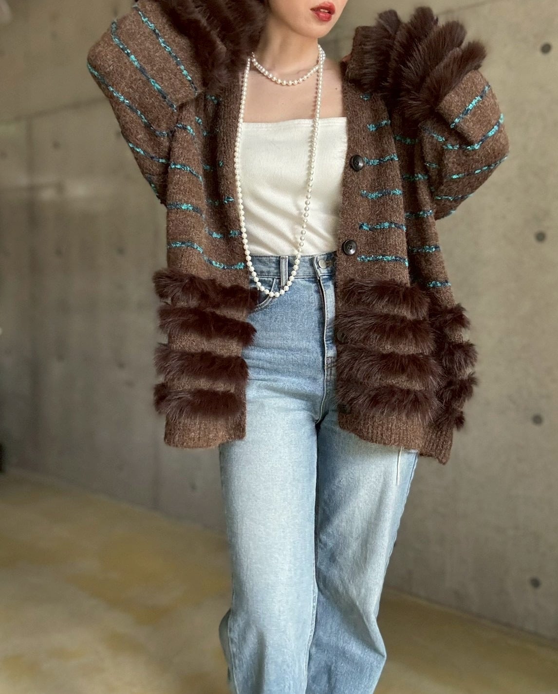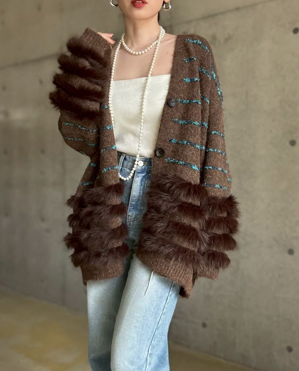 肌触りの良いファーをあしらったボリュームカーディガン✨