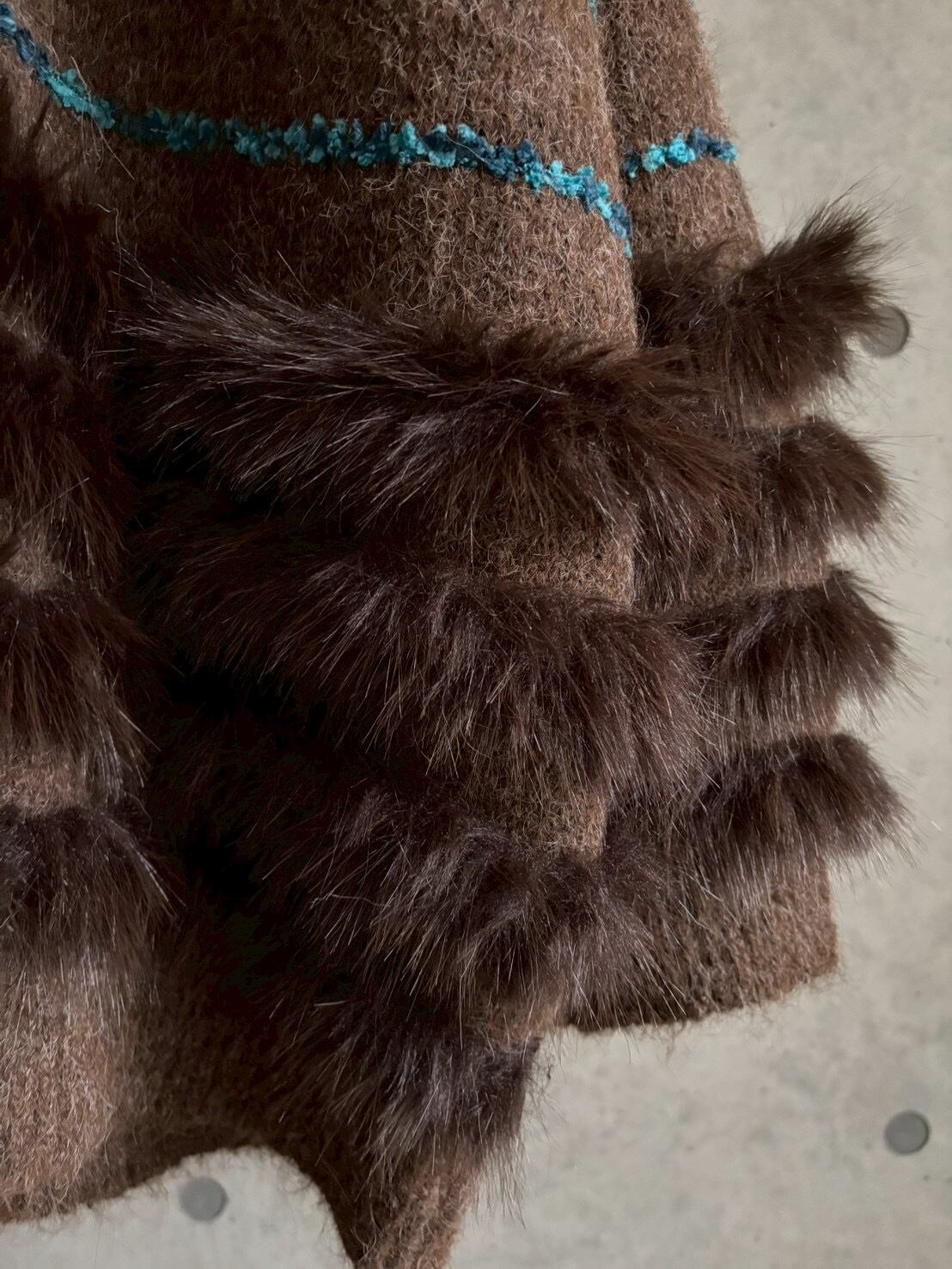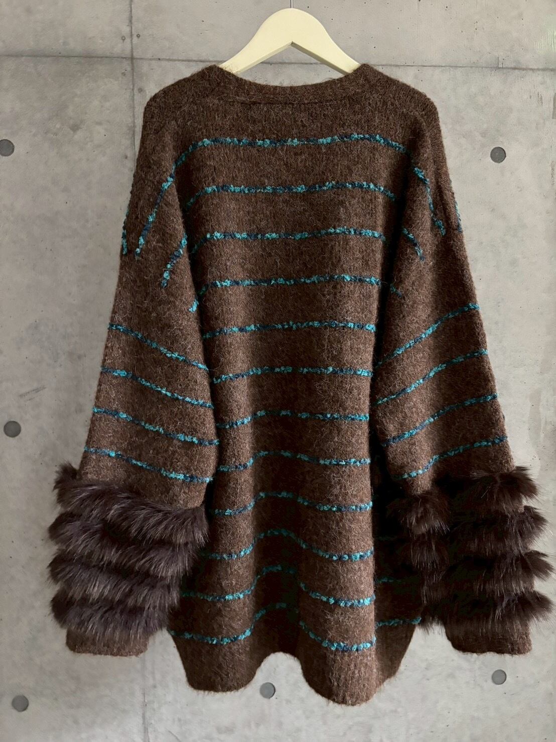 【即納】ファー付きボリュームニットカーディガン【ブラウン】