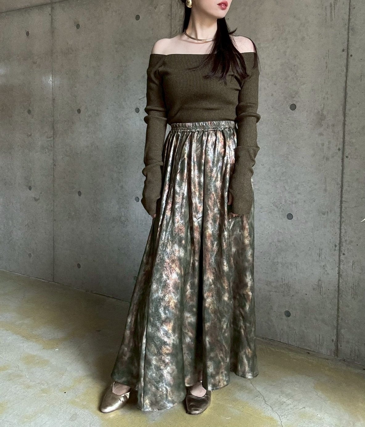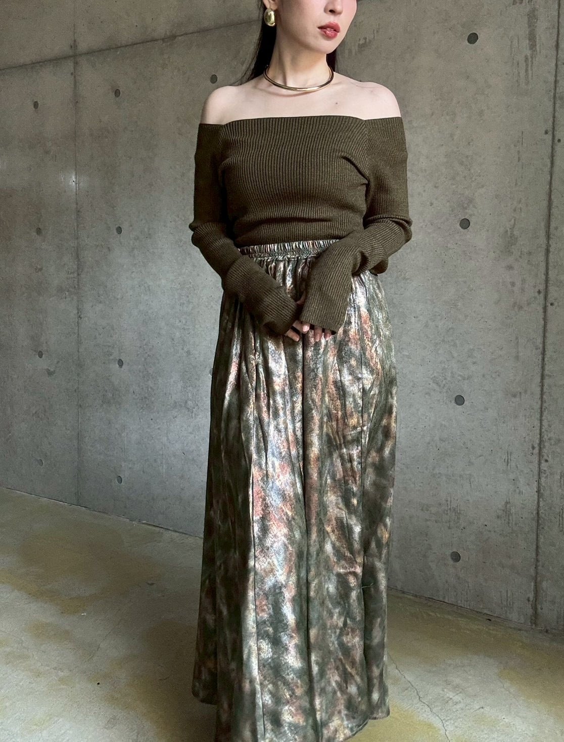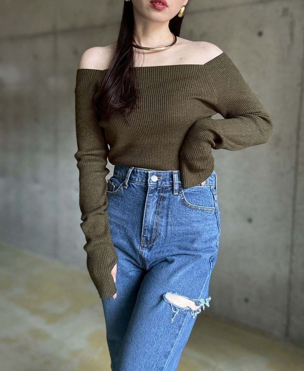 【10/15 21:00〜】オフショルリブニットtops【カーキ】