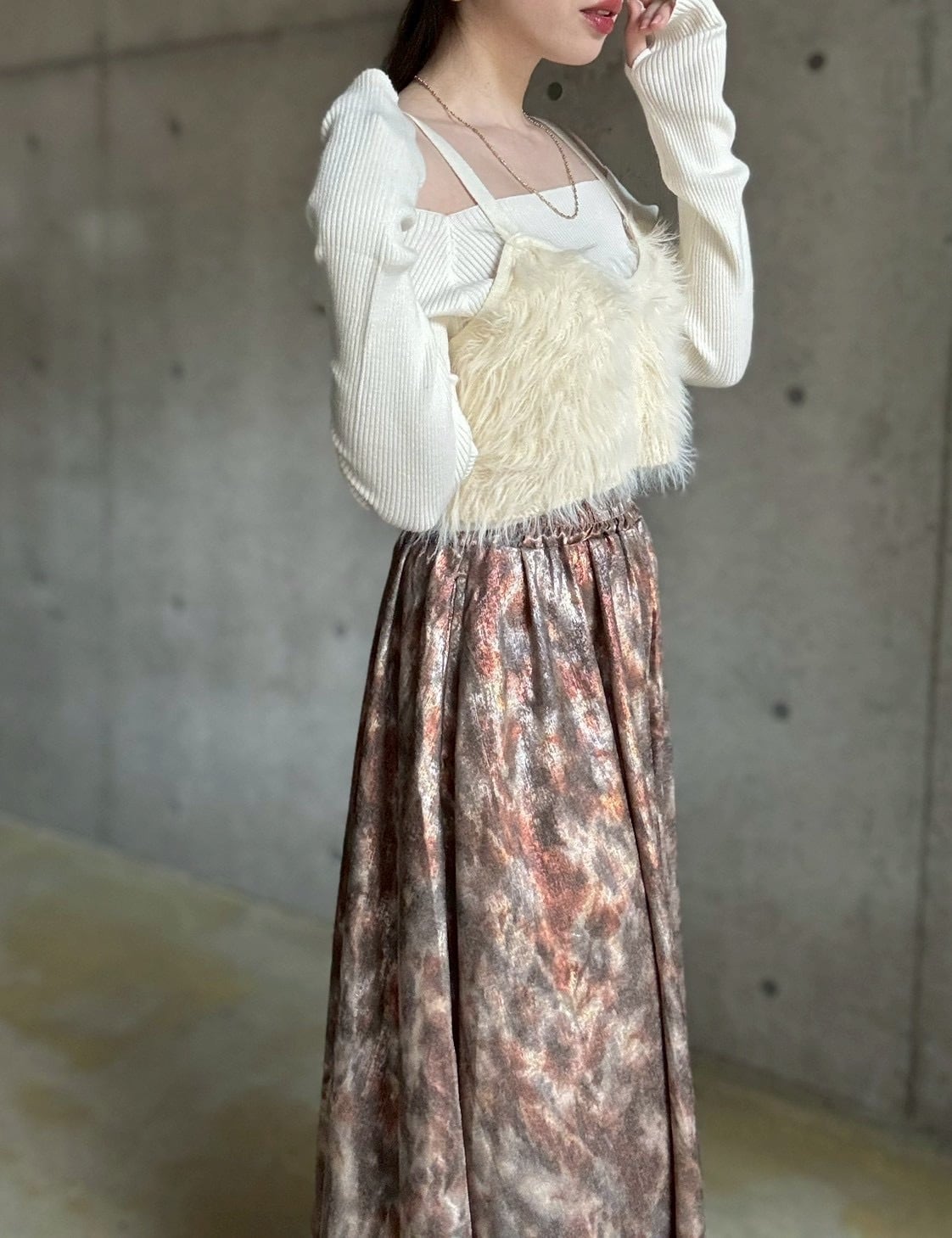 もっちりとした柔らかな肌触りのニット素材が、タイトながら締め付け感のないストレスフリーな着心地を叶えてくれます✨