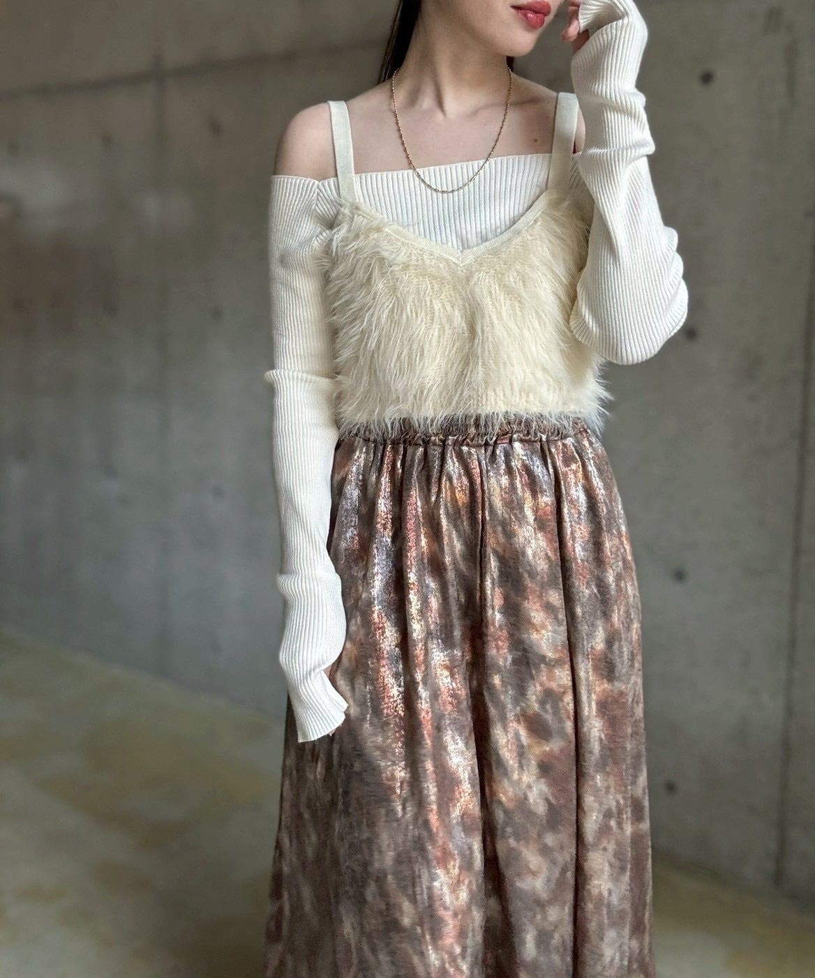 トレンドライクなオフショルデザインはデコルテ部分をスッキリと綺麗に見せてくれます♪