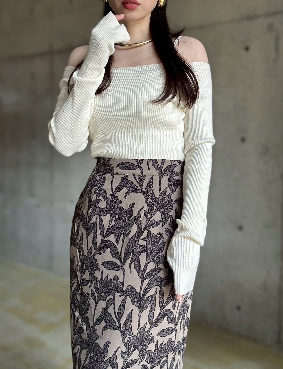 パッと着るだけで女性らしいスタイリングが叶うオフショルニットトップス✨
