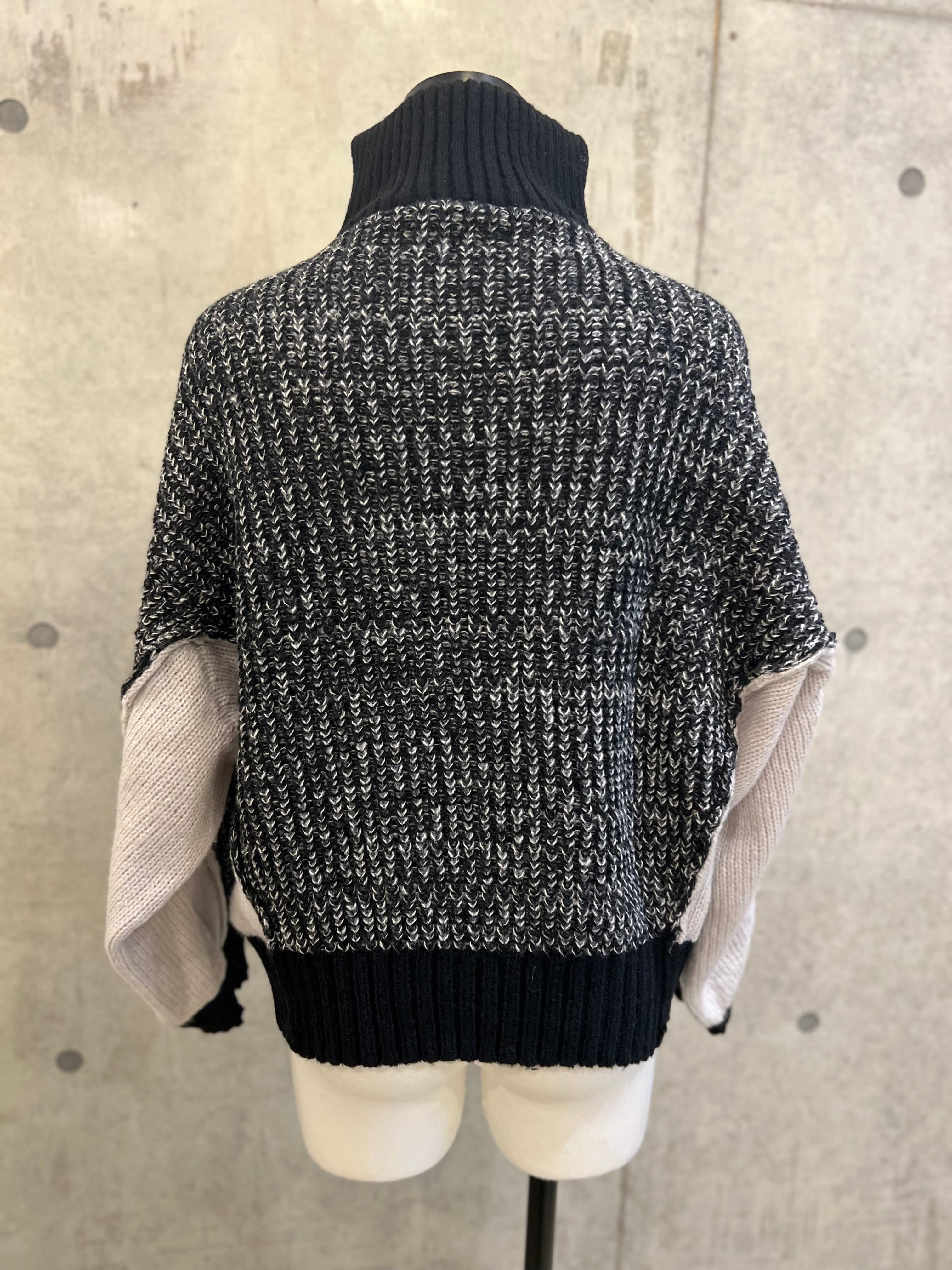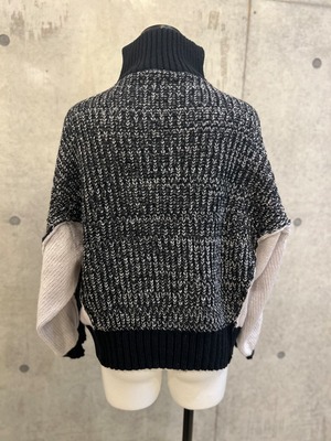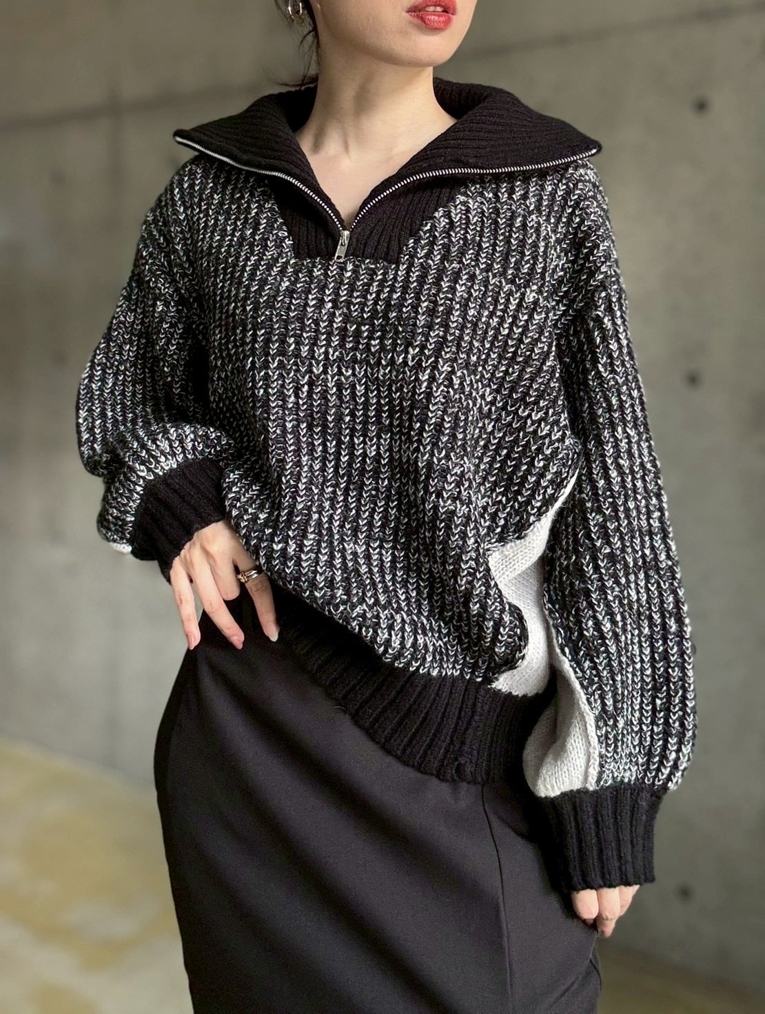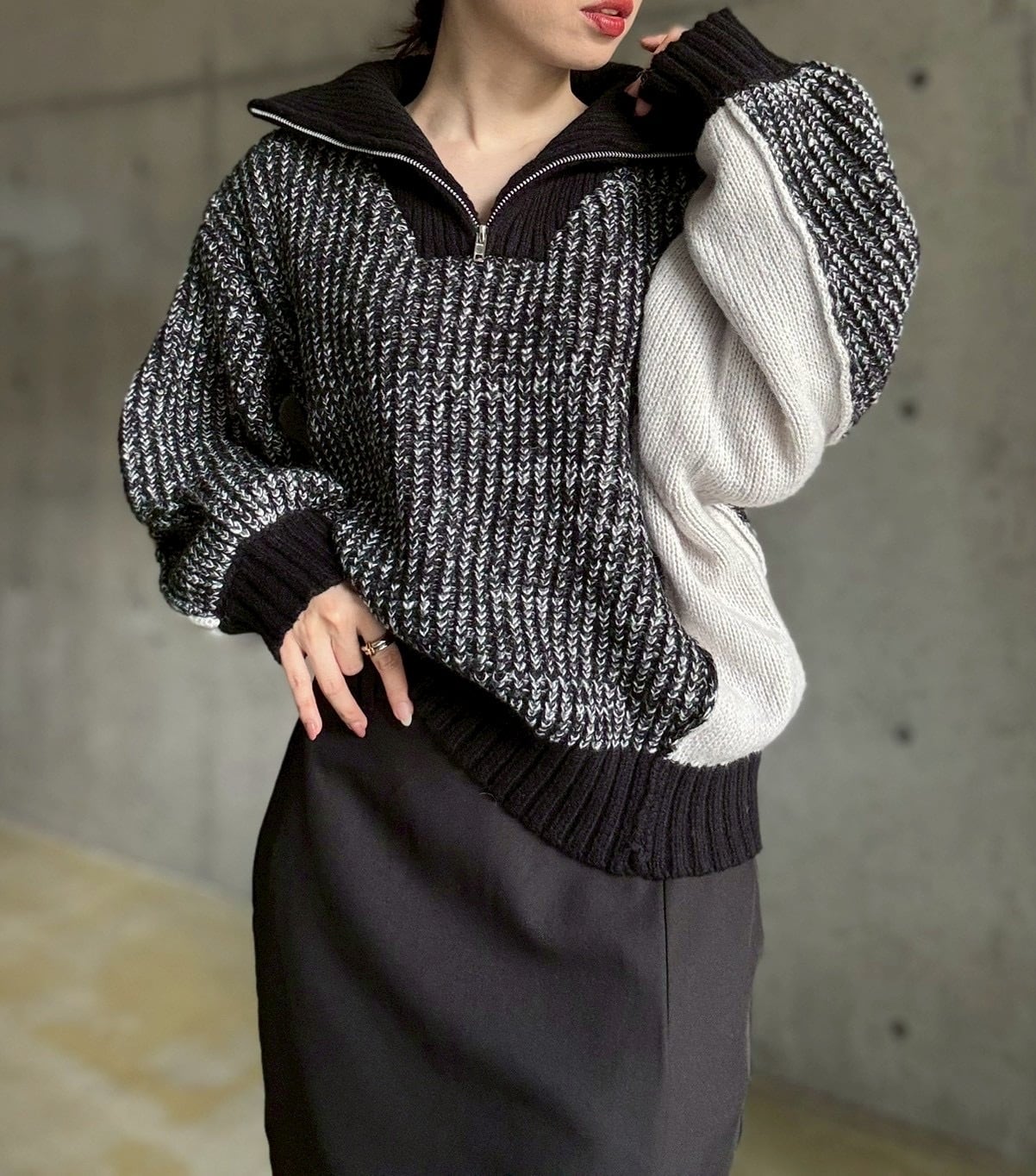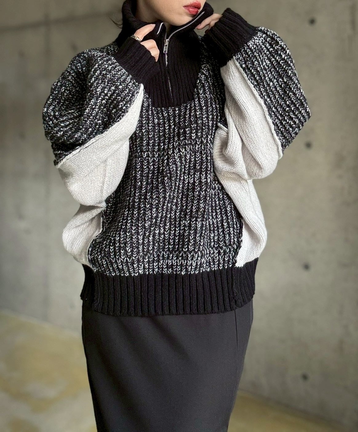 【10/15 21:00】ハーフジップ切替MIXニットプルオーバー【ブラック】