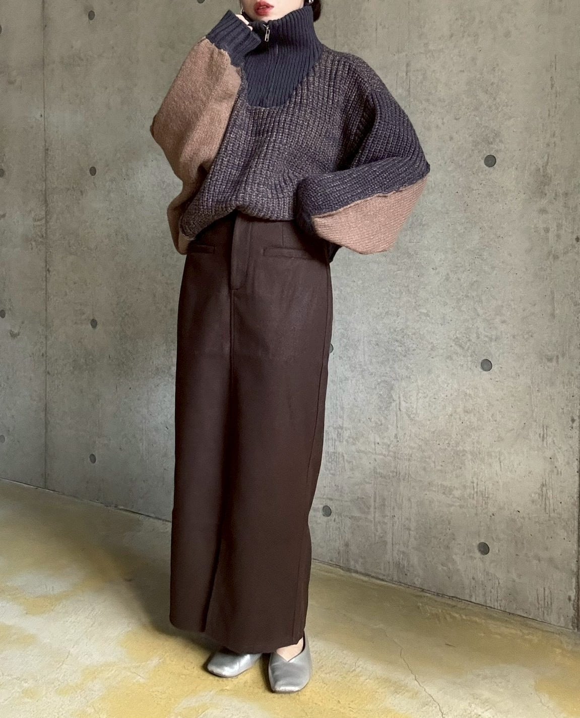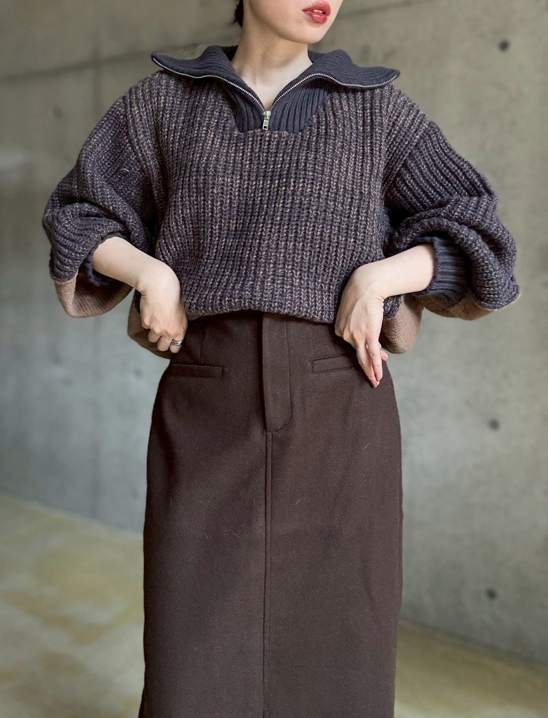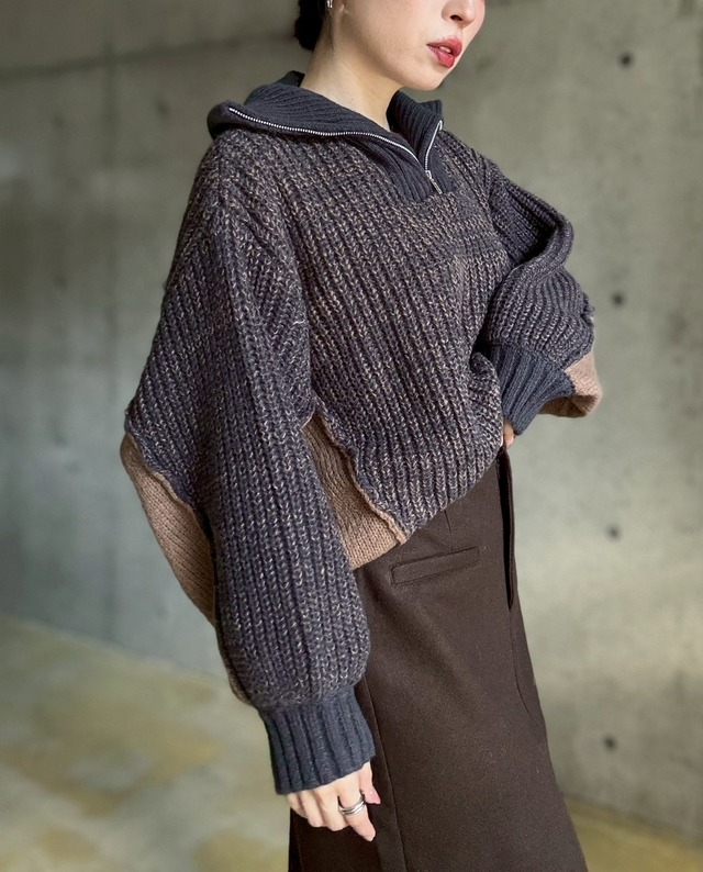【10/15 21:00〜】ハーフジップ切替MIXニットプルオーバー【ブラウン】
