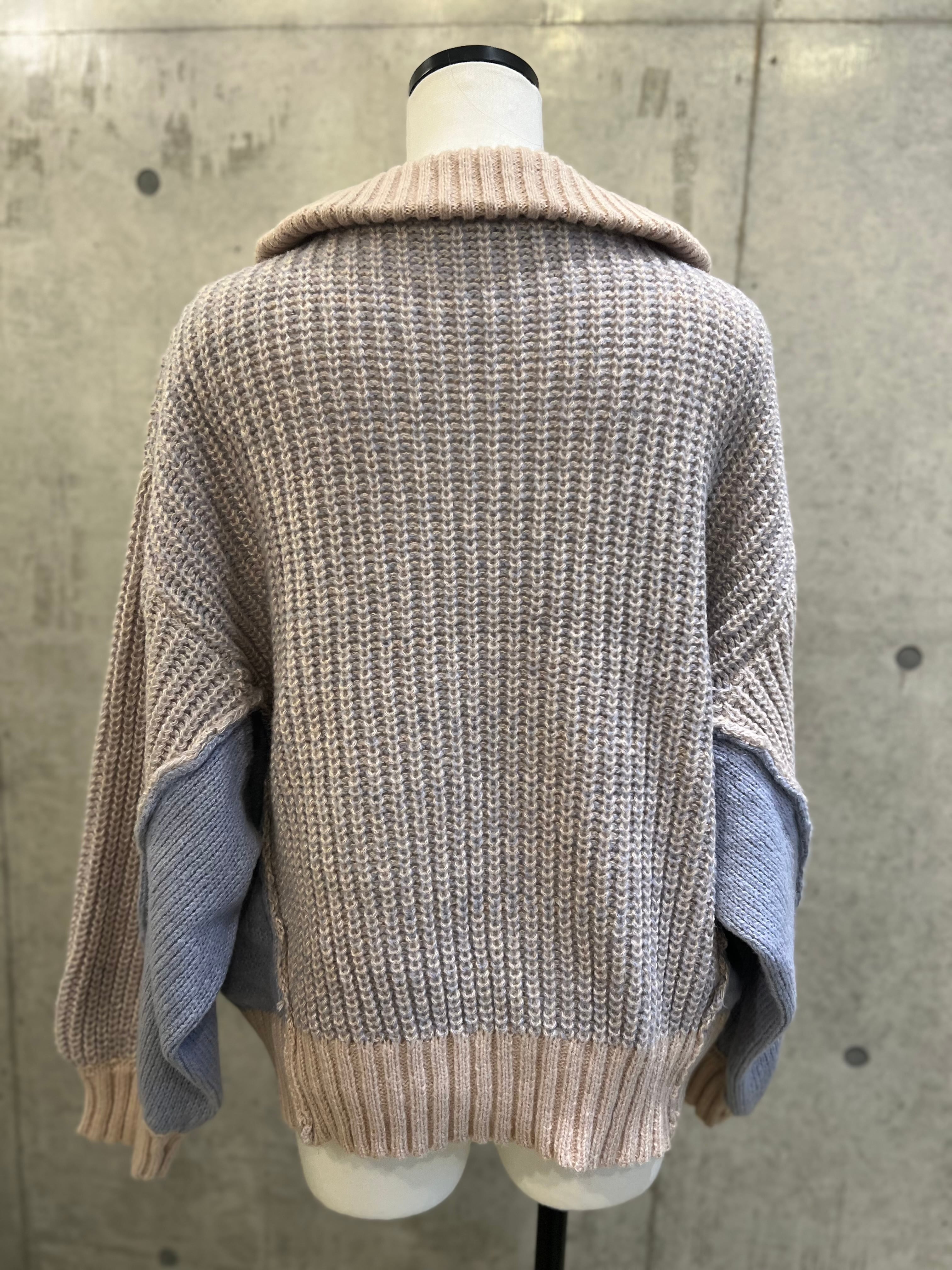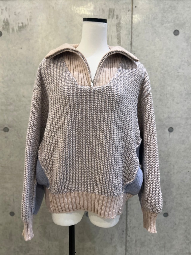 【10/15 21:00〜】ハーフジップ切替MIXニットプルオーバー【ベージュ】