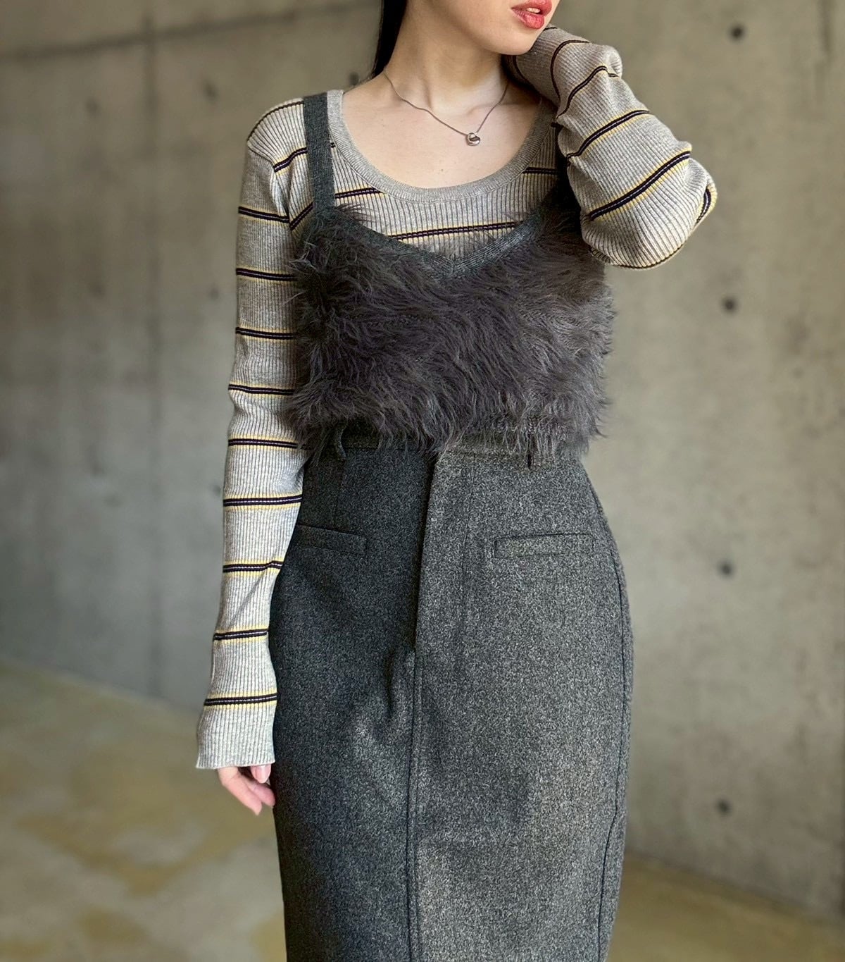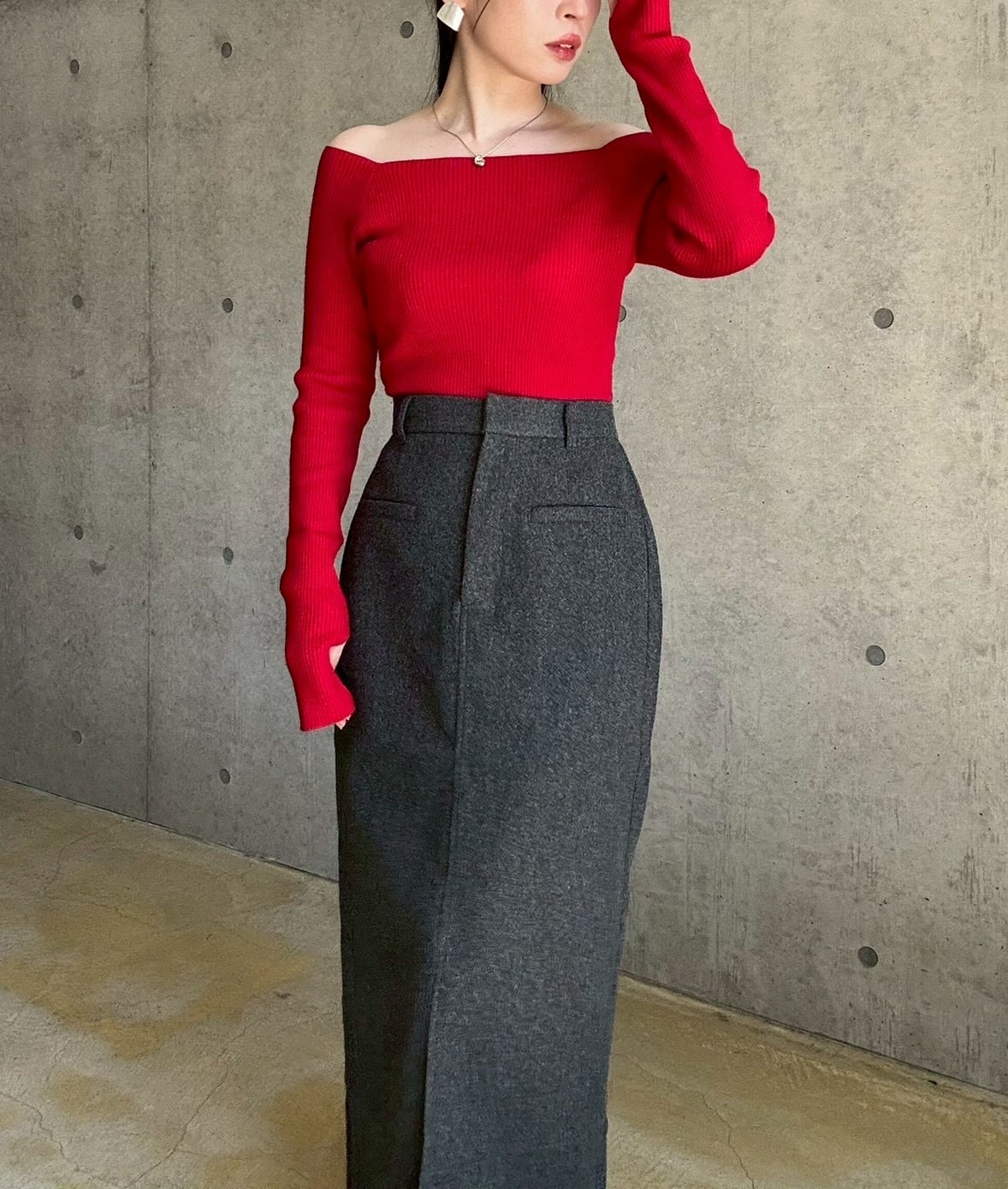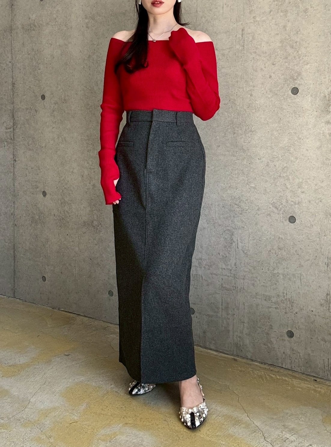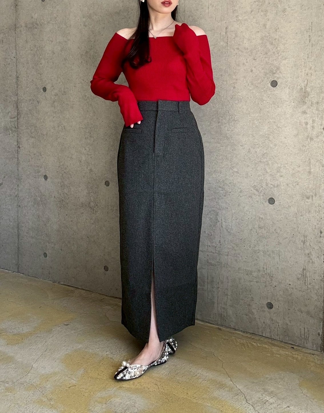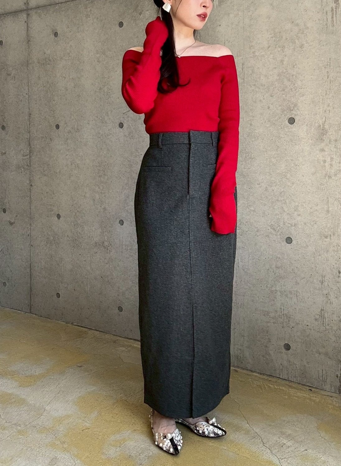 【10/22 21:00〜】フェイクウールタイトスカート【チャコール】