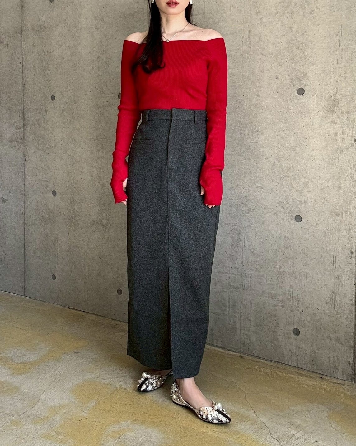 楽ちんなのにキレイ見え♪フェイクウールナロースカート✨