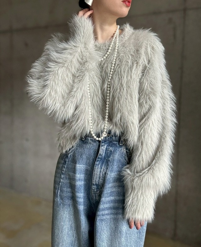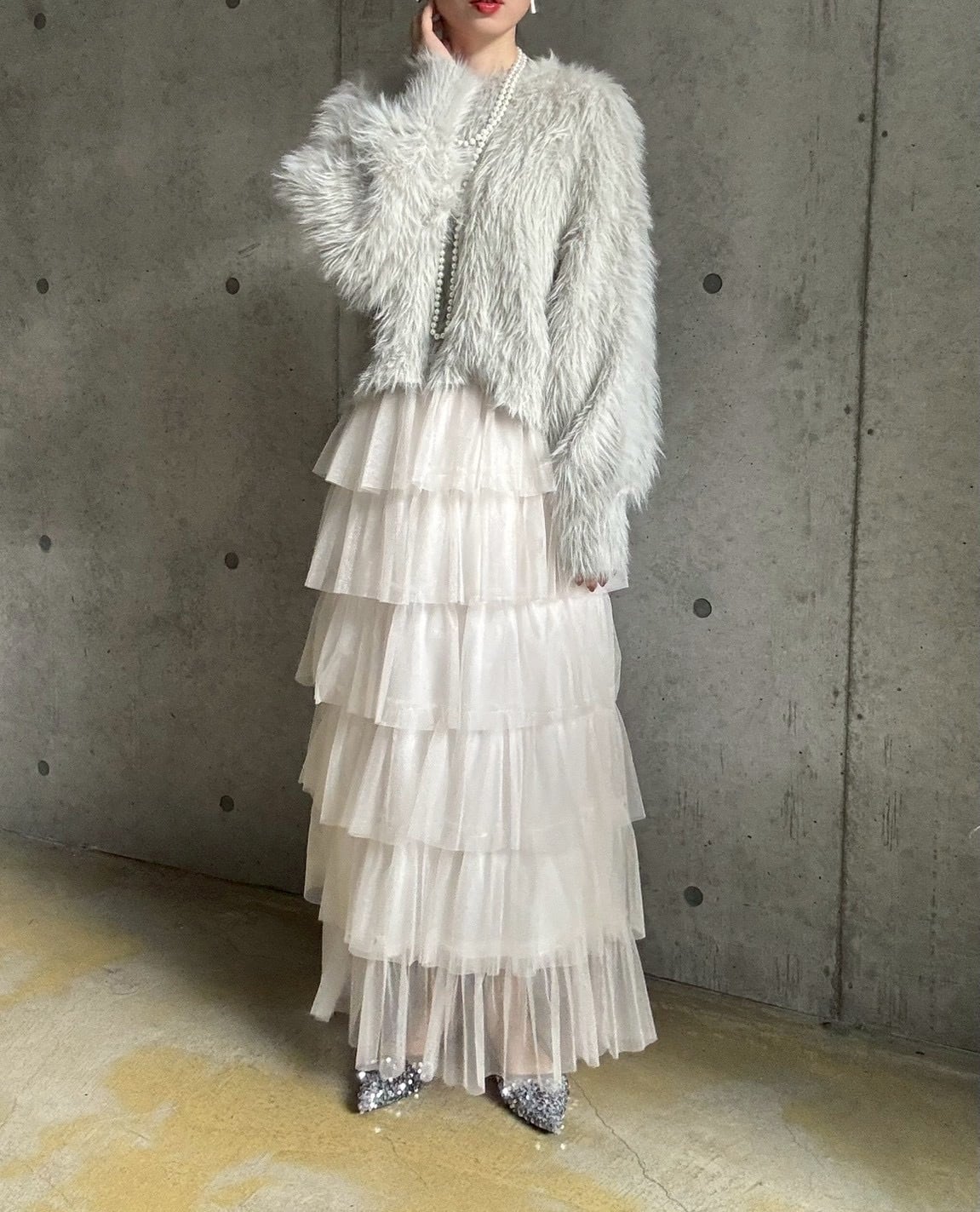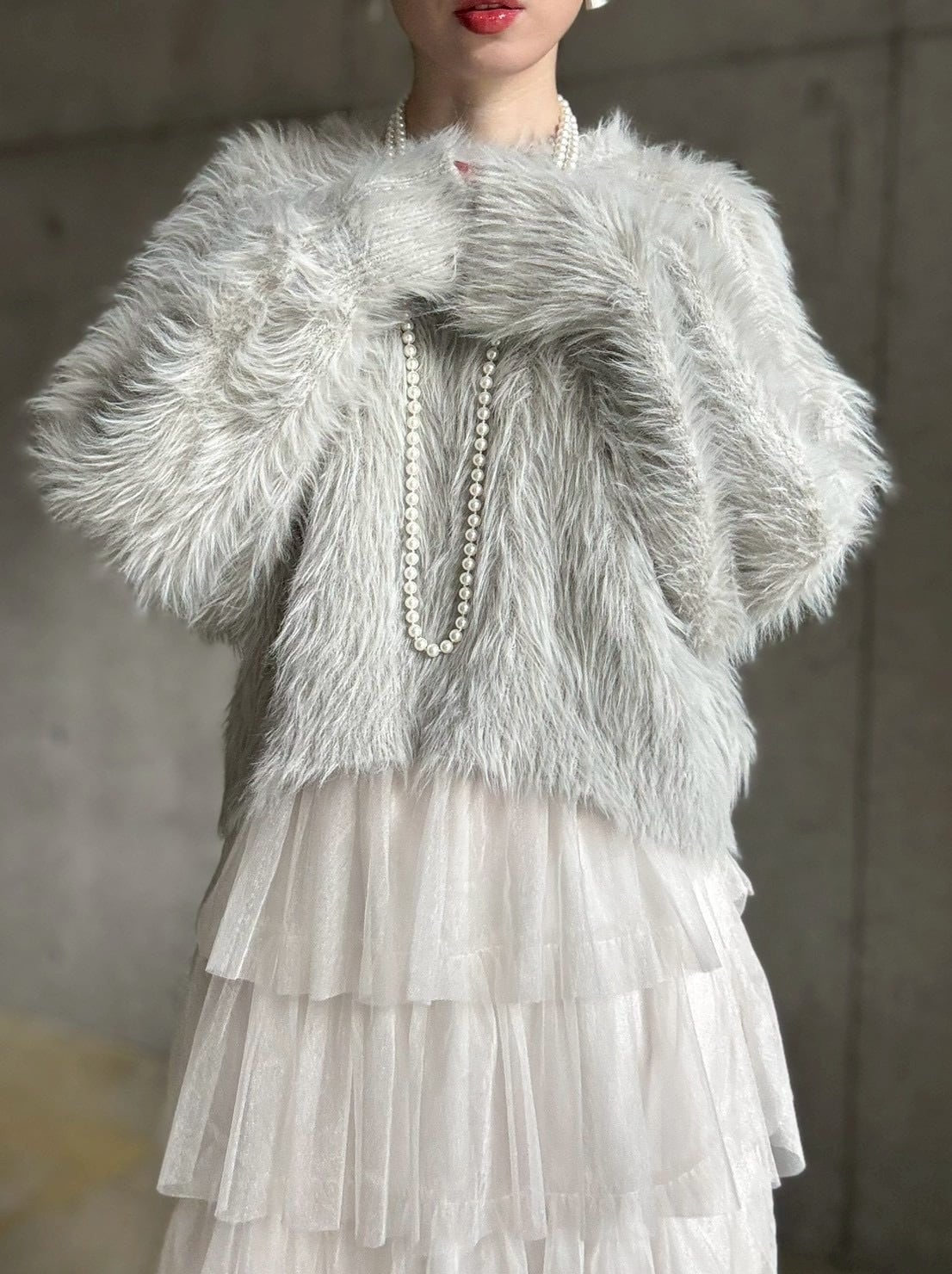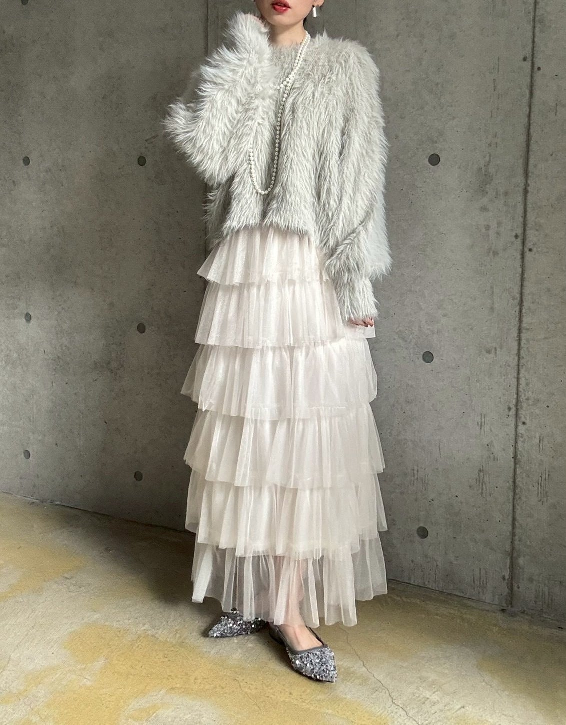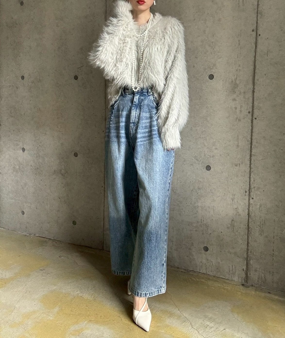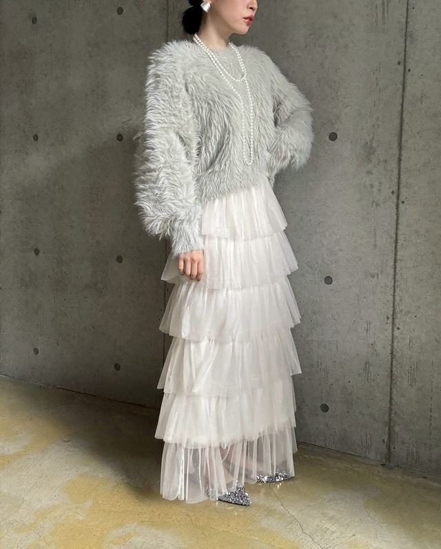繊細なフェザーニットの毛並みが着こなしに華やかさをプラス♪