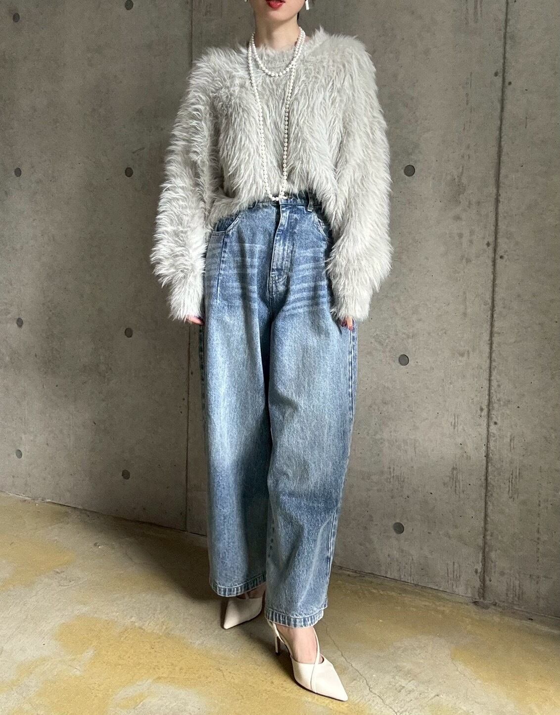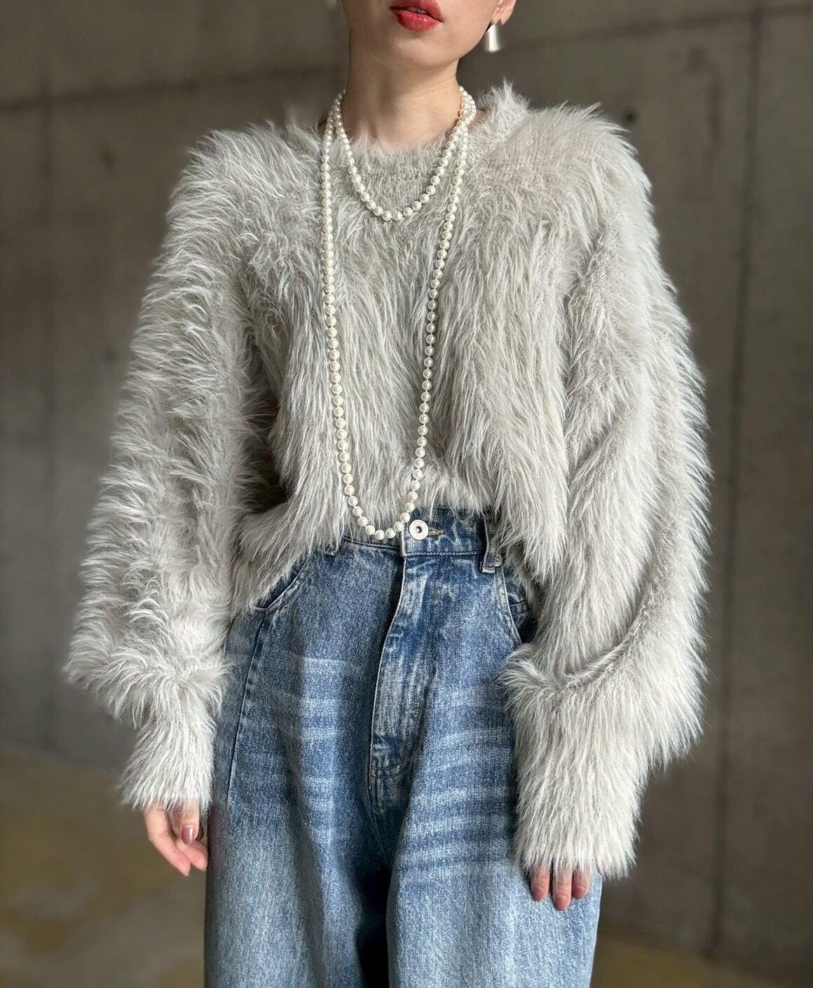 ふわっと毛足の長いフェザーニットがポイントのニットプルオーバー✨
