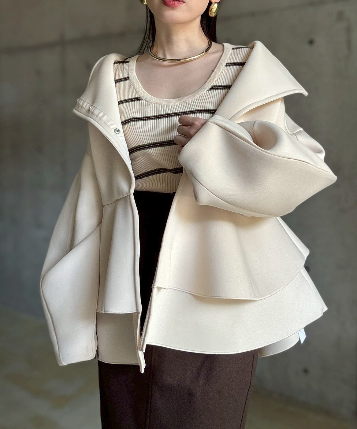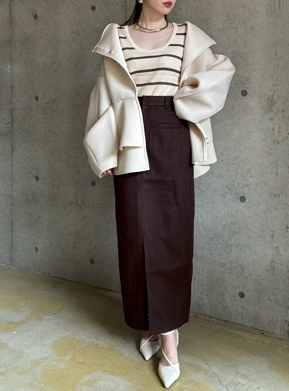 スッキリシルエットなので、カーデやジャケット、コートのインナーとしてはもちろん、ビスチェなどをオンしたスタイリングもオススメです✨