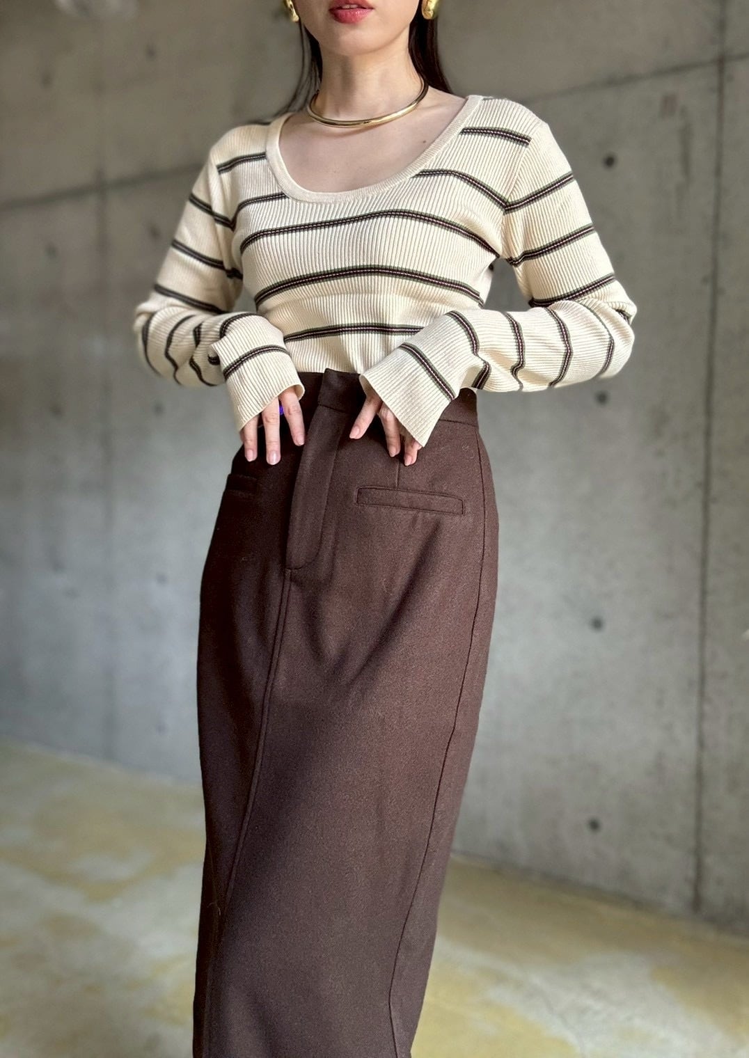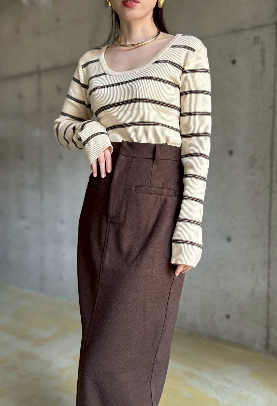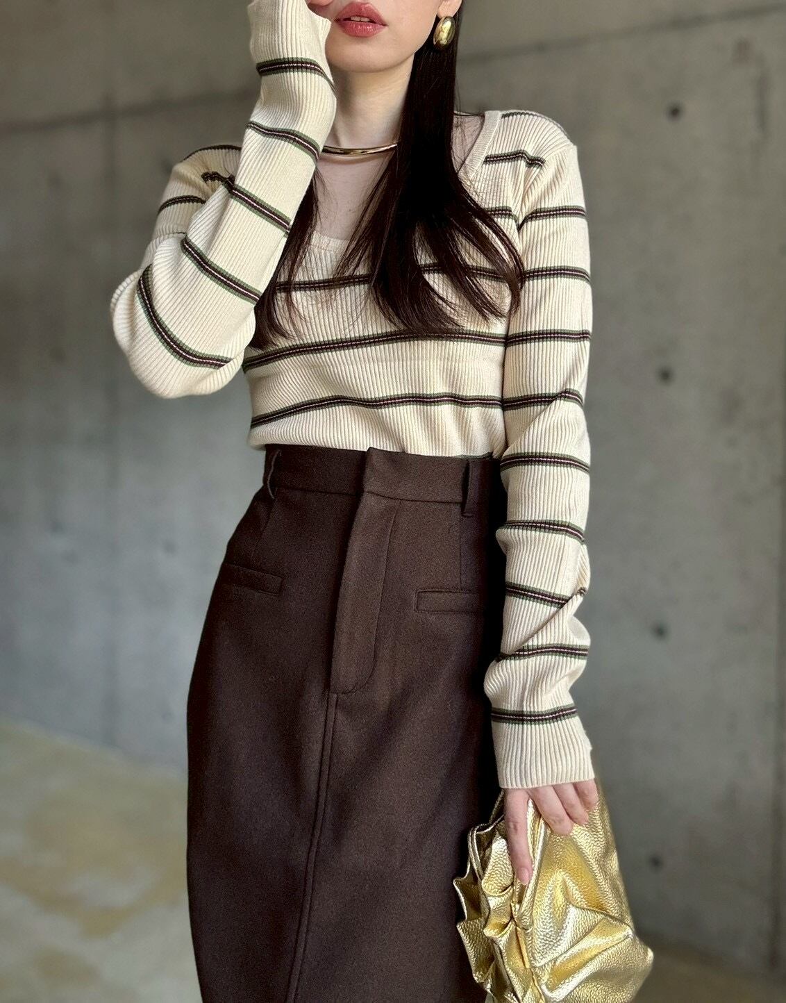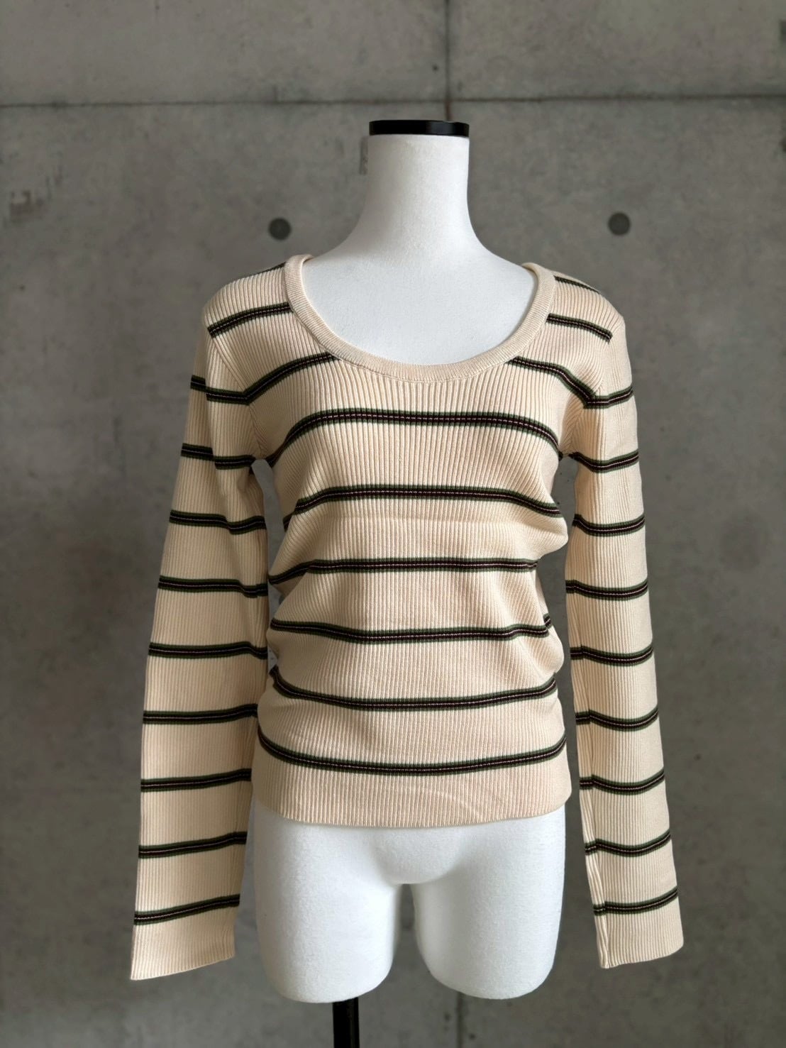 【10/22 21:00〜】2WAYボーダーリブニットtops【アイボリー】