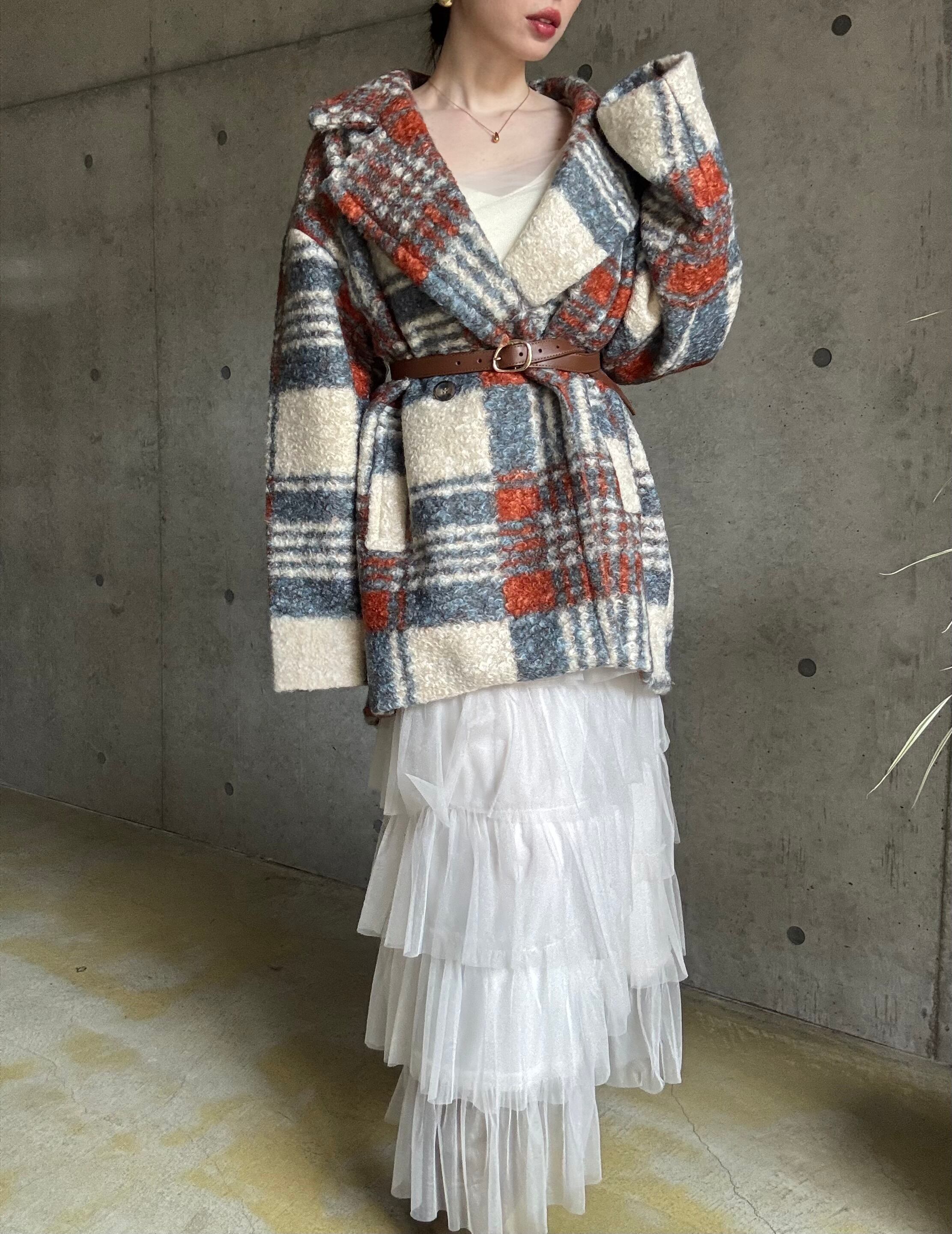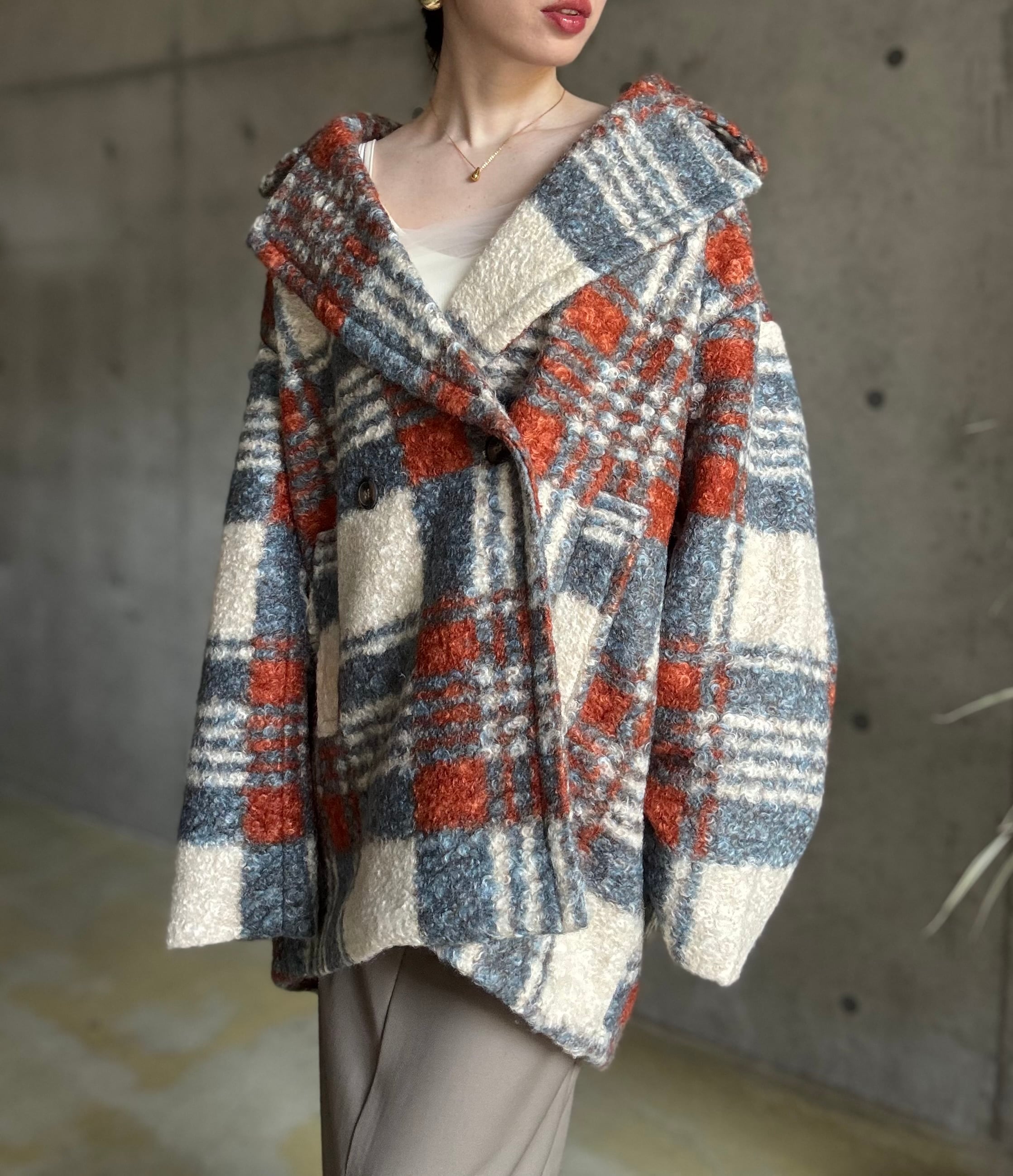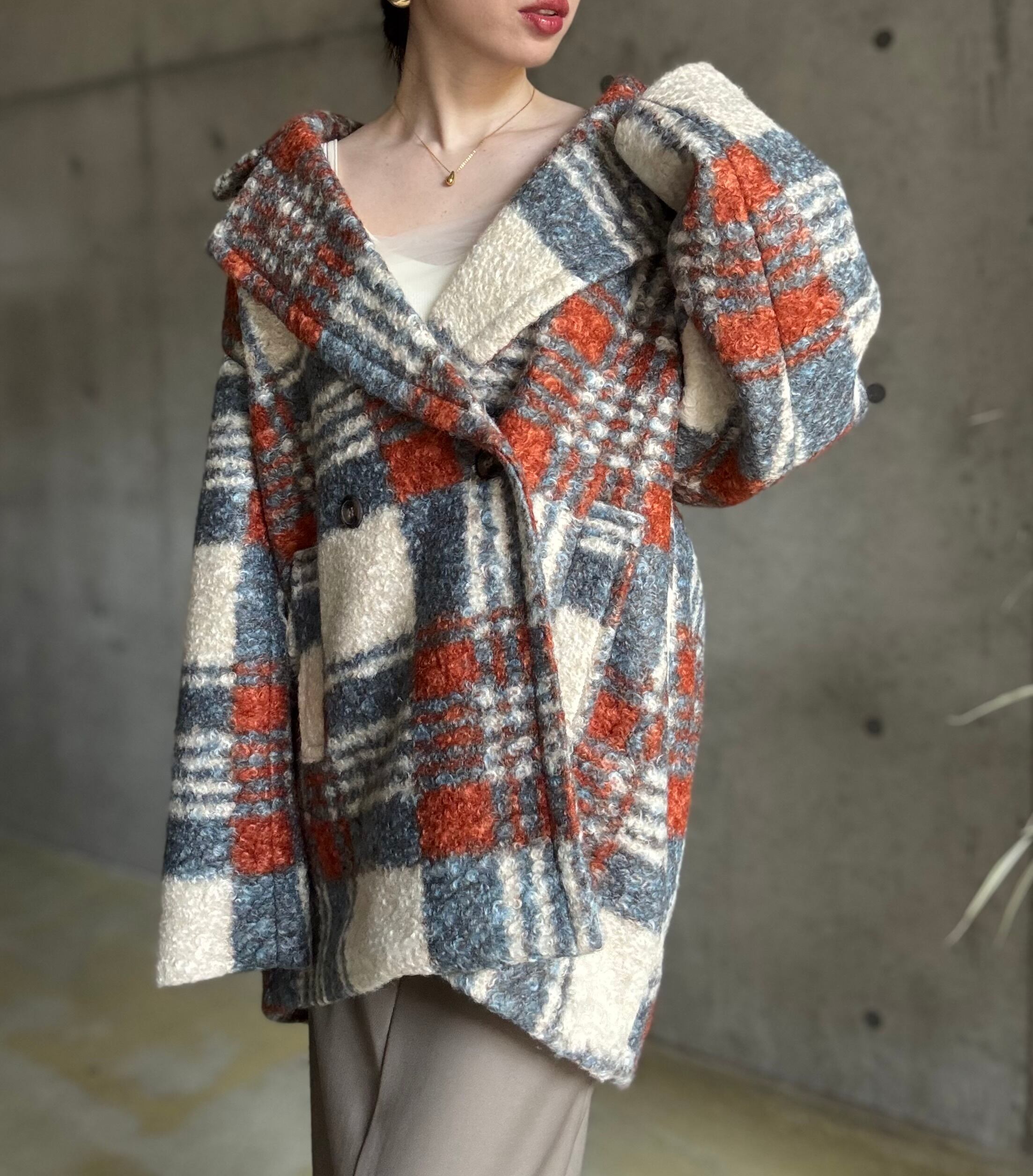ビックシルエット&チェック柄が大人可愛い♪リングボアコート✨