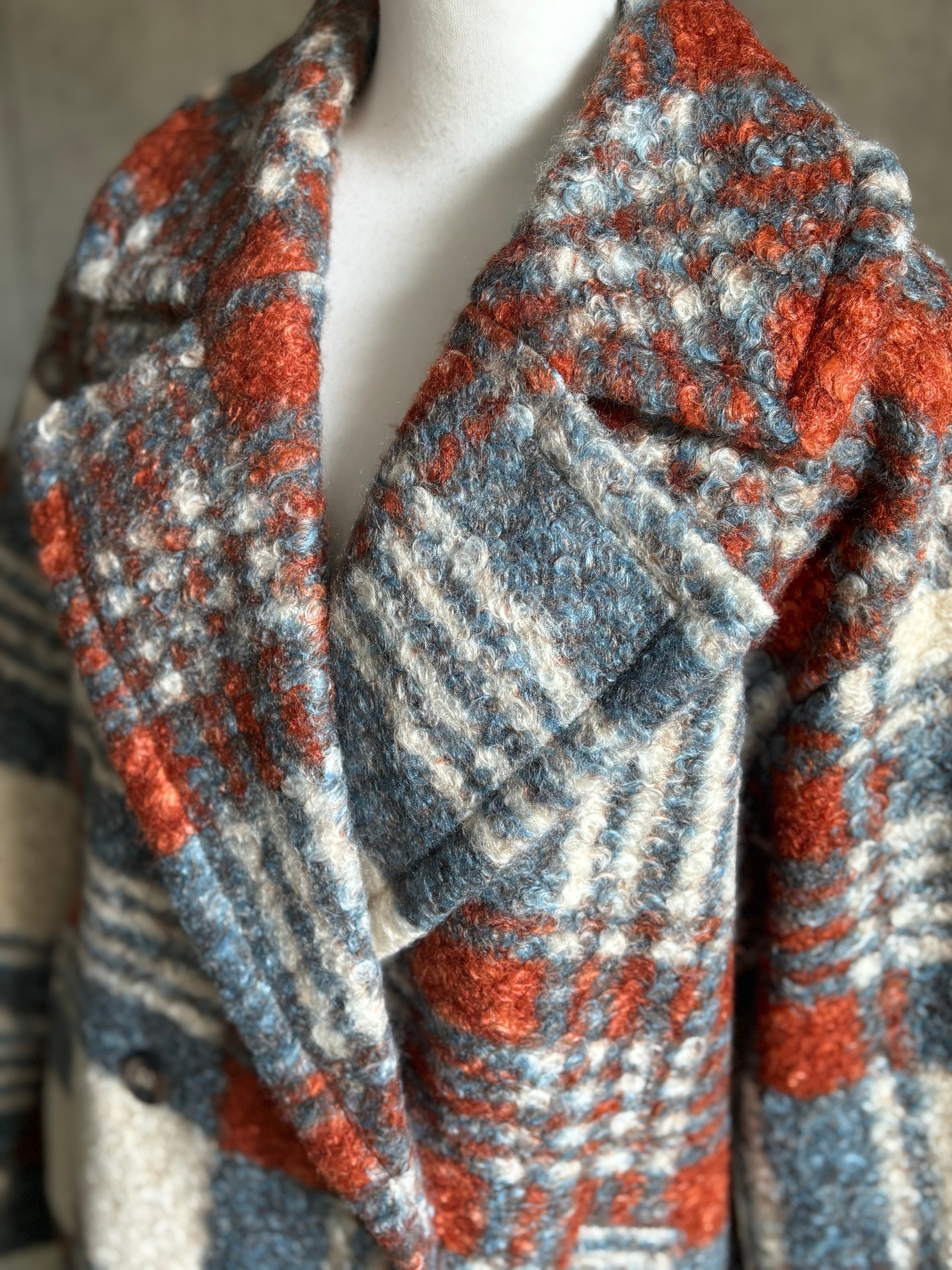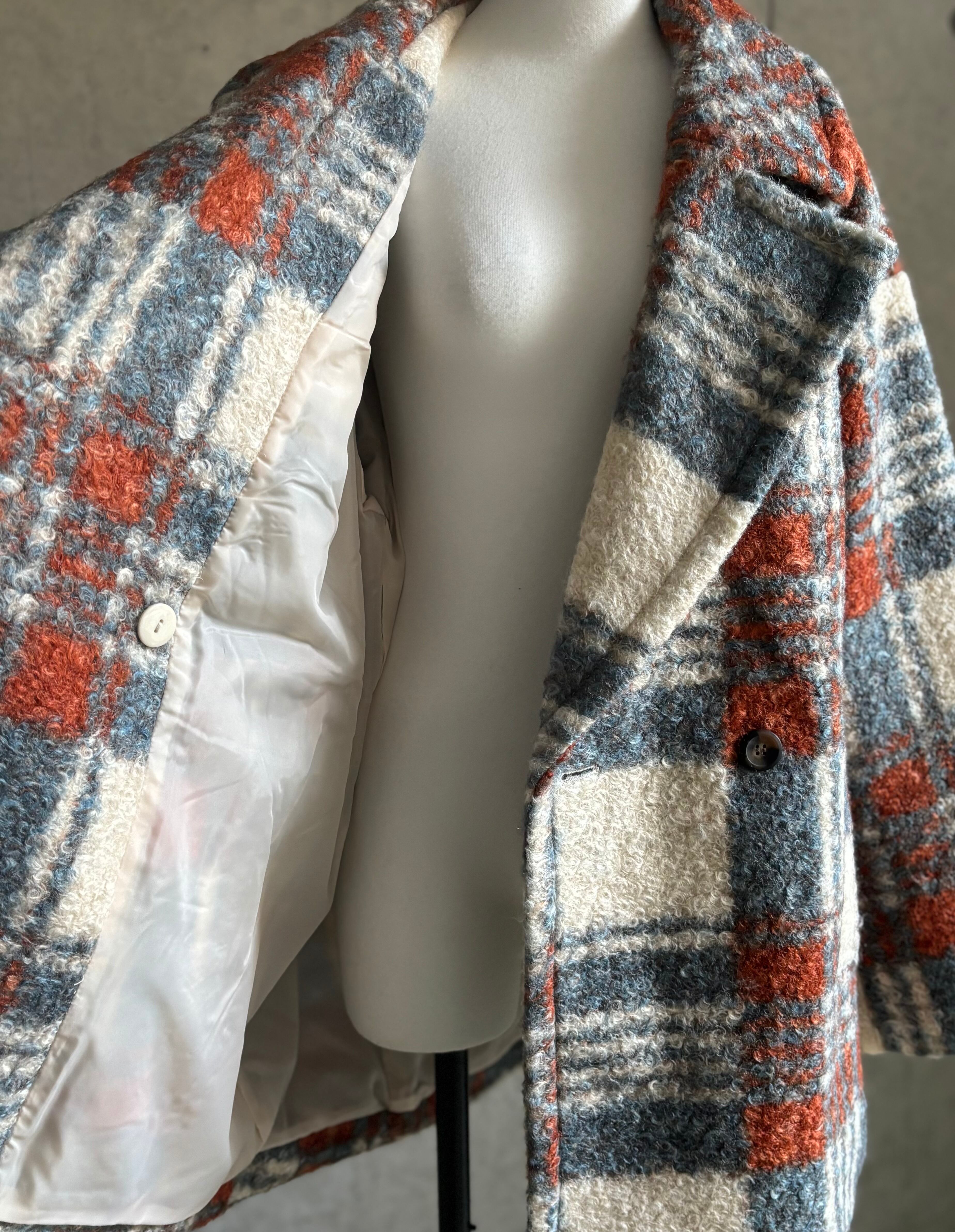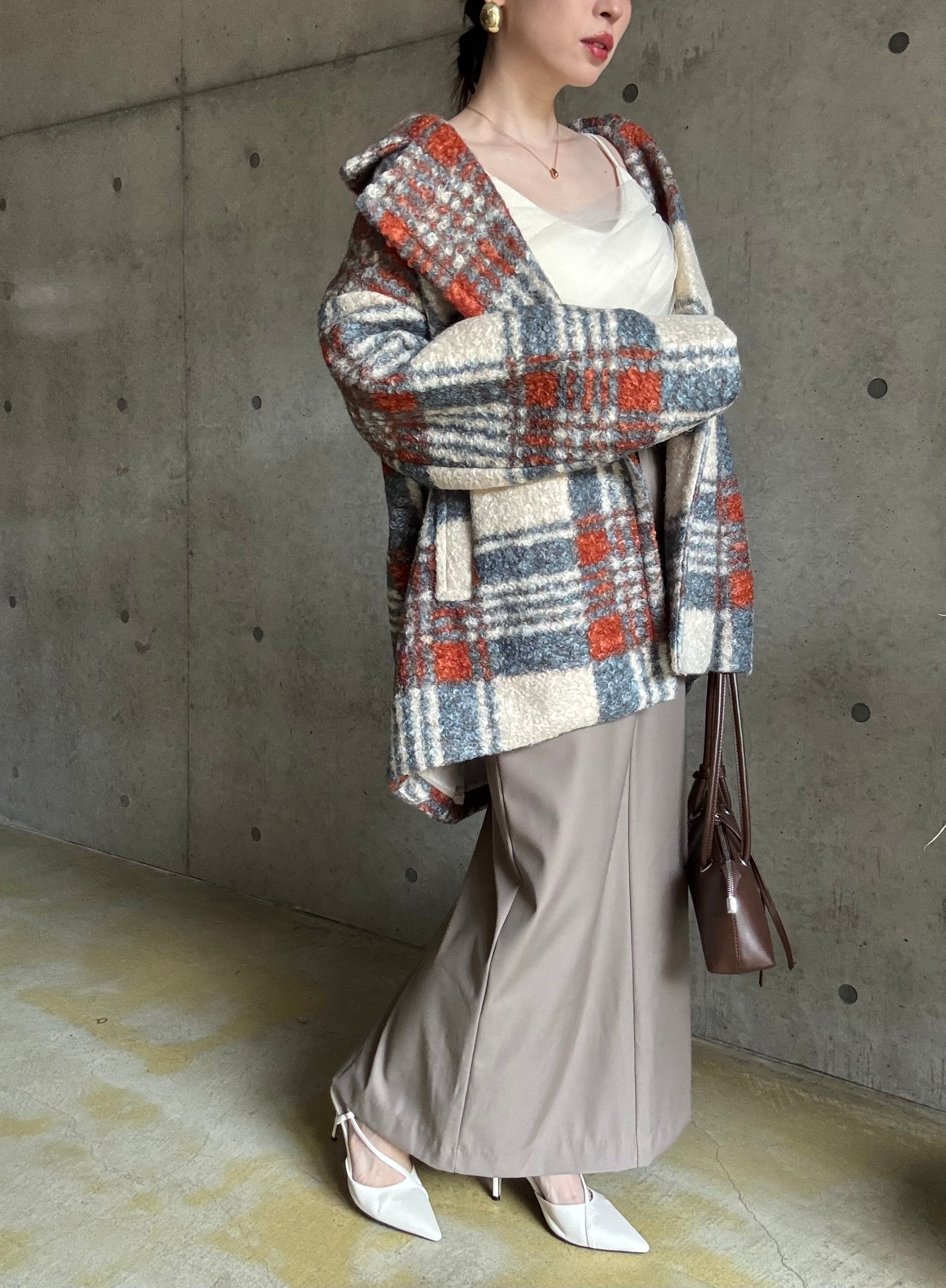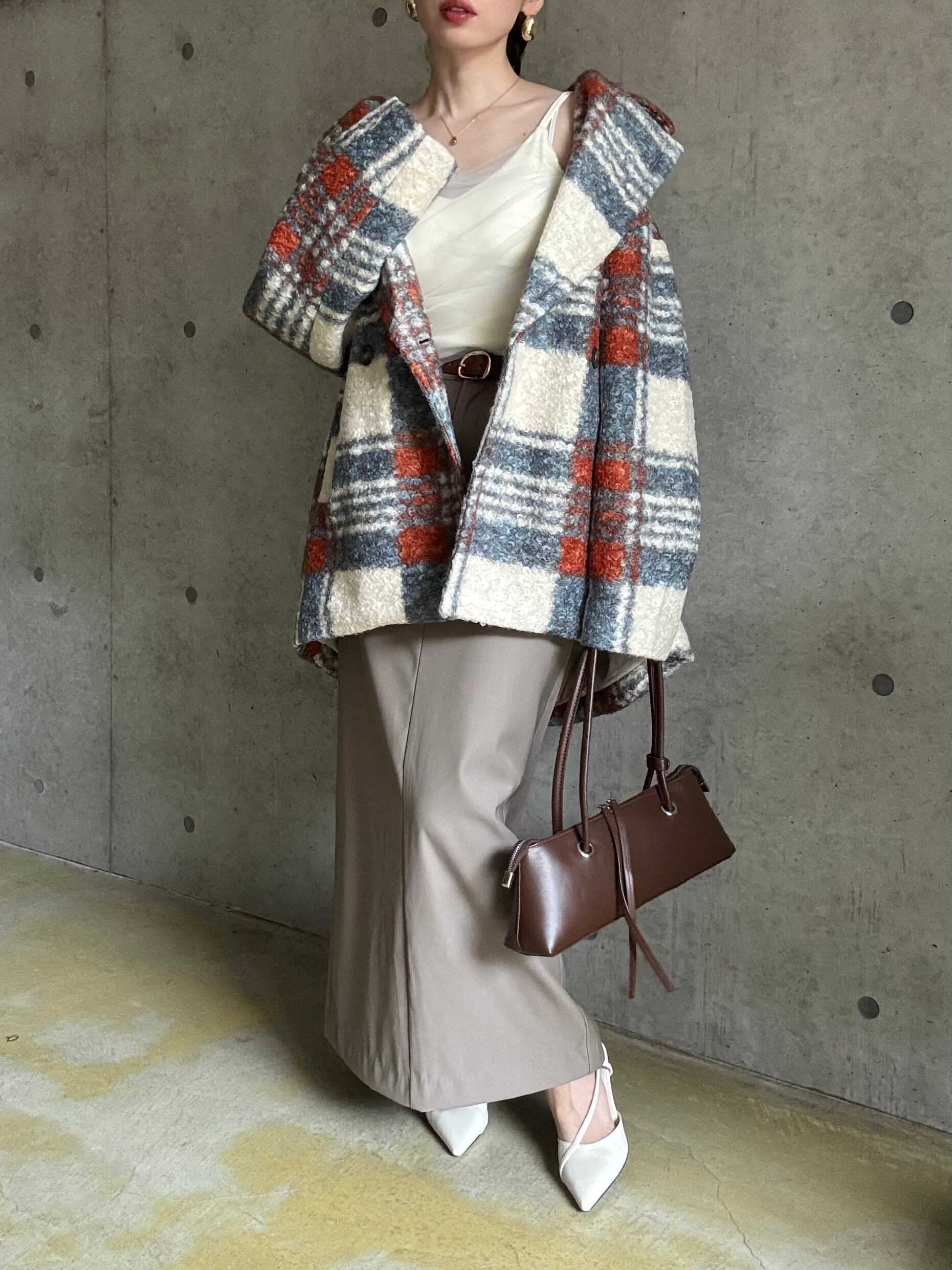 肉厚の先染めチェック柄のリングボア生地使用し、軽量なのに暖かく、回りと差がつくデザインがポイントの一着✨