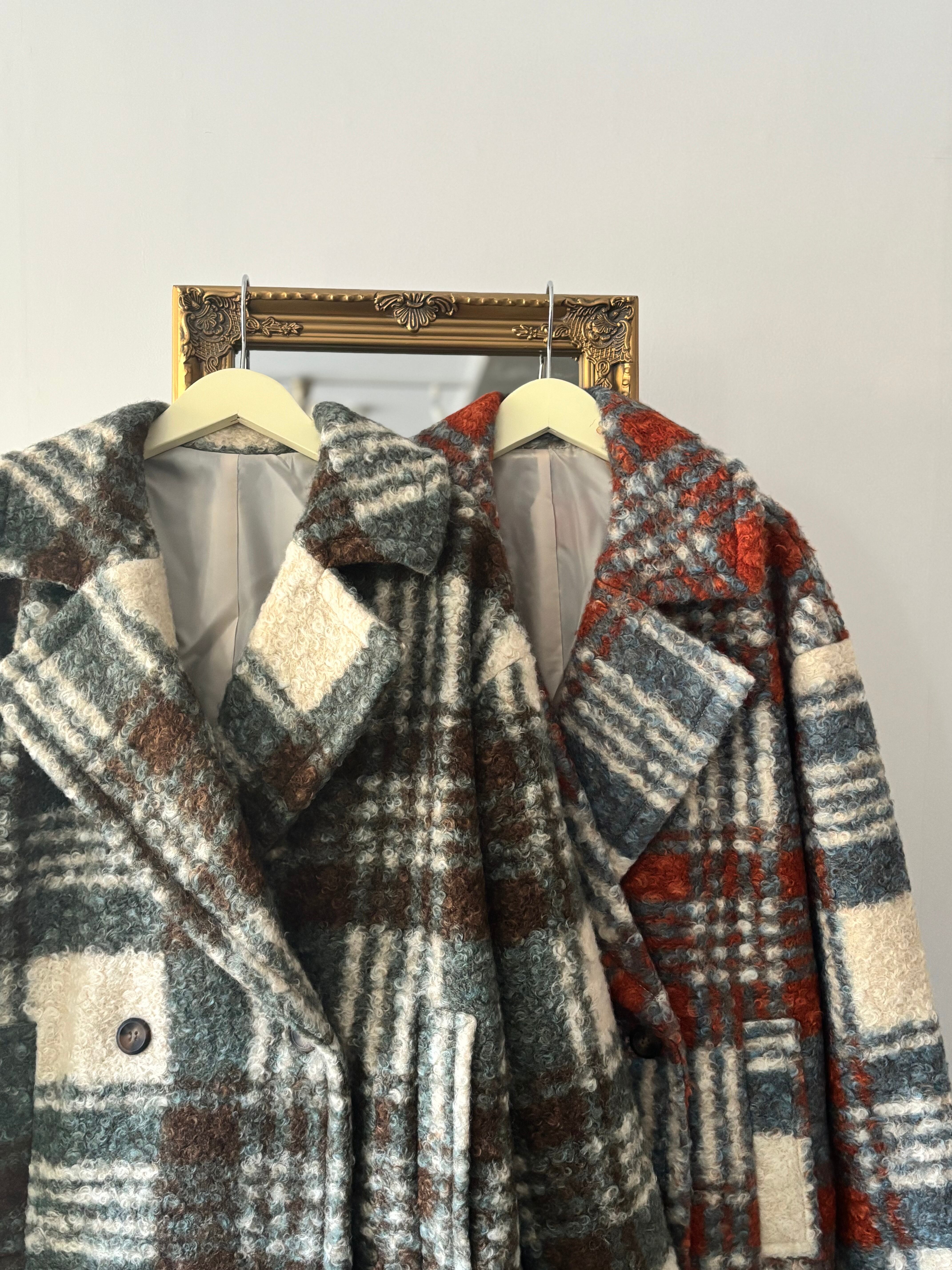 【即納】リングボアチェックオーバーコート【オレンジ】