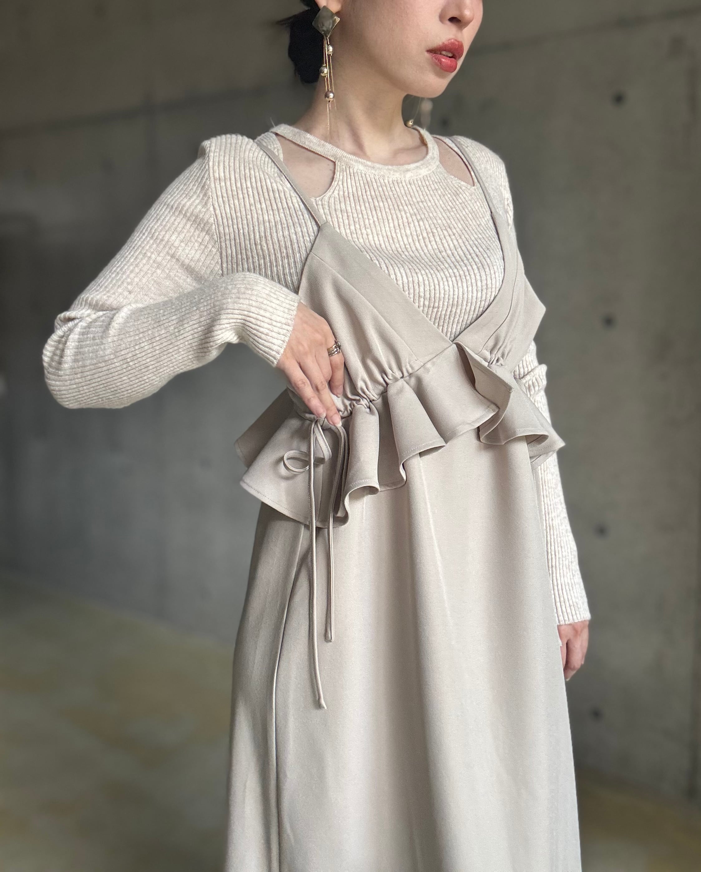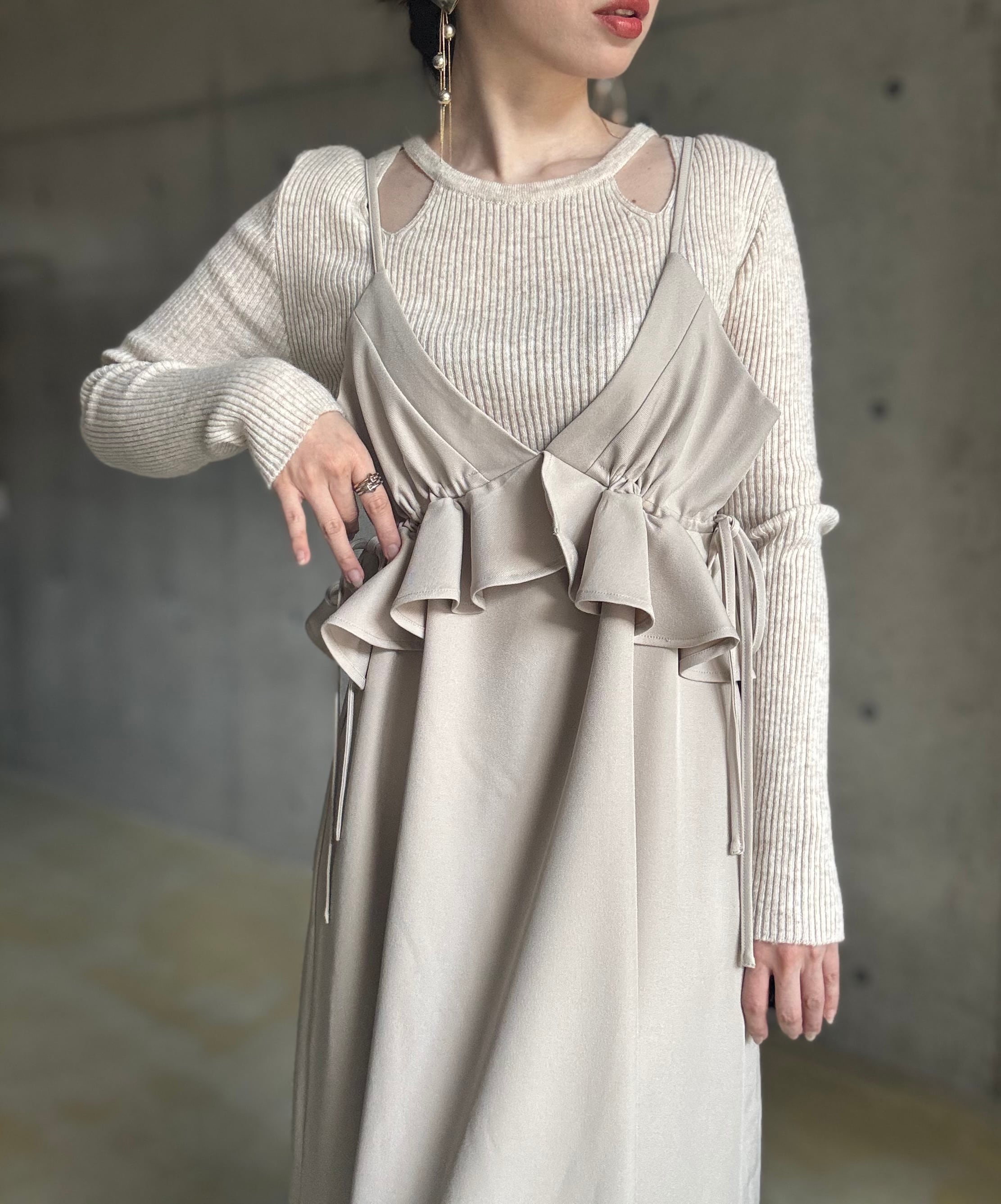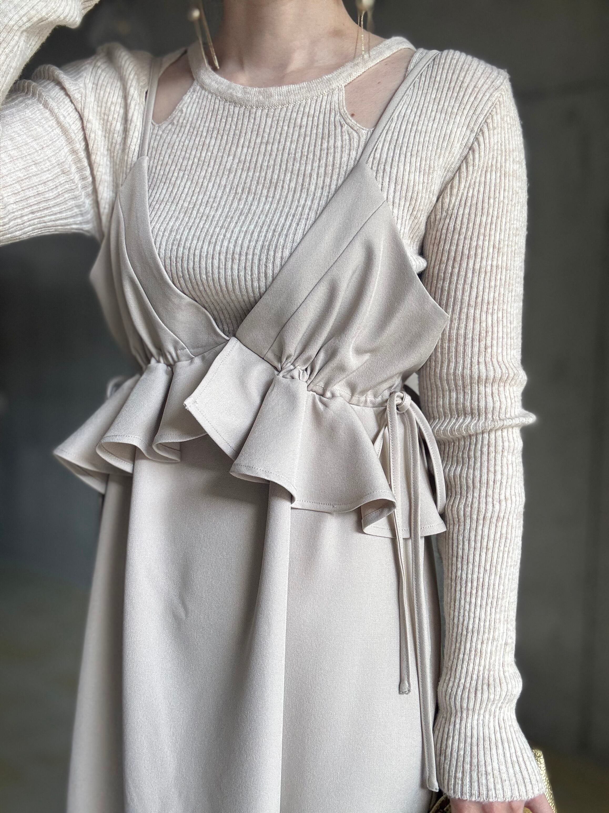 ペプラムリボン紐キャミワンピース【ライトベージュ】