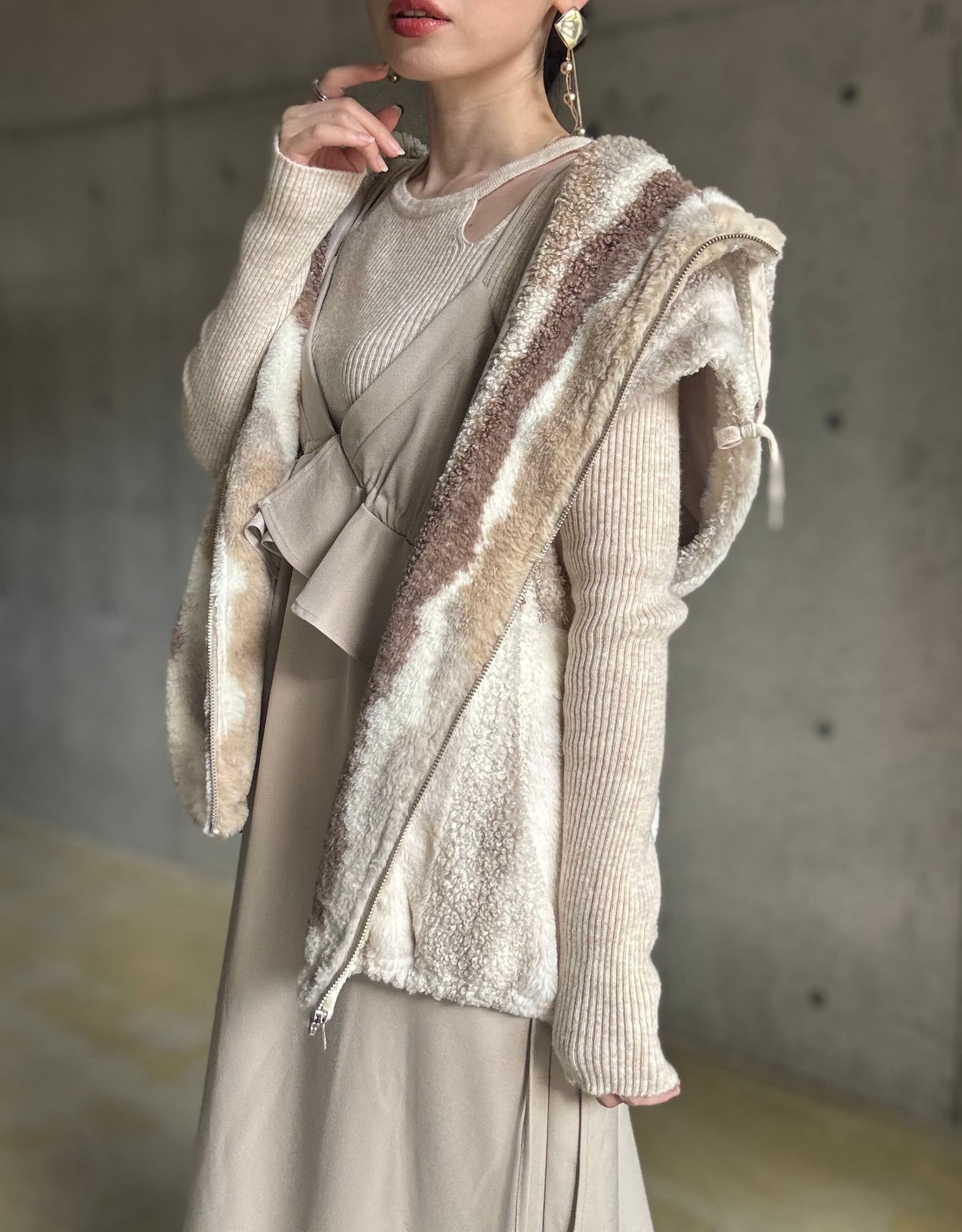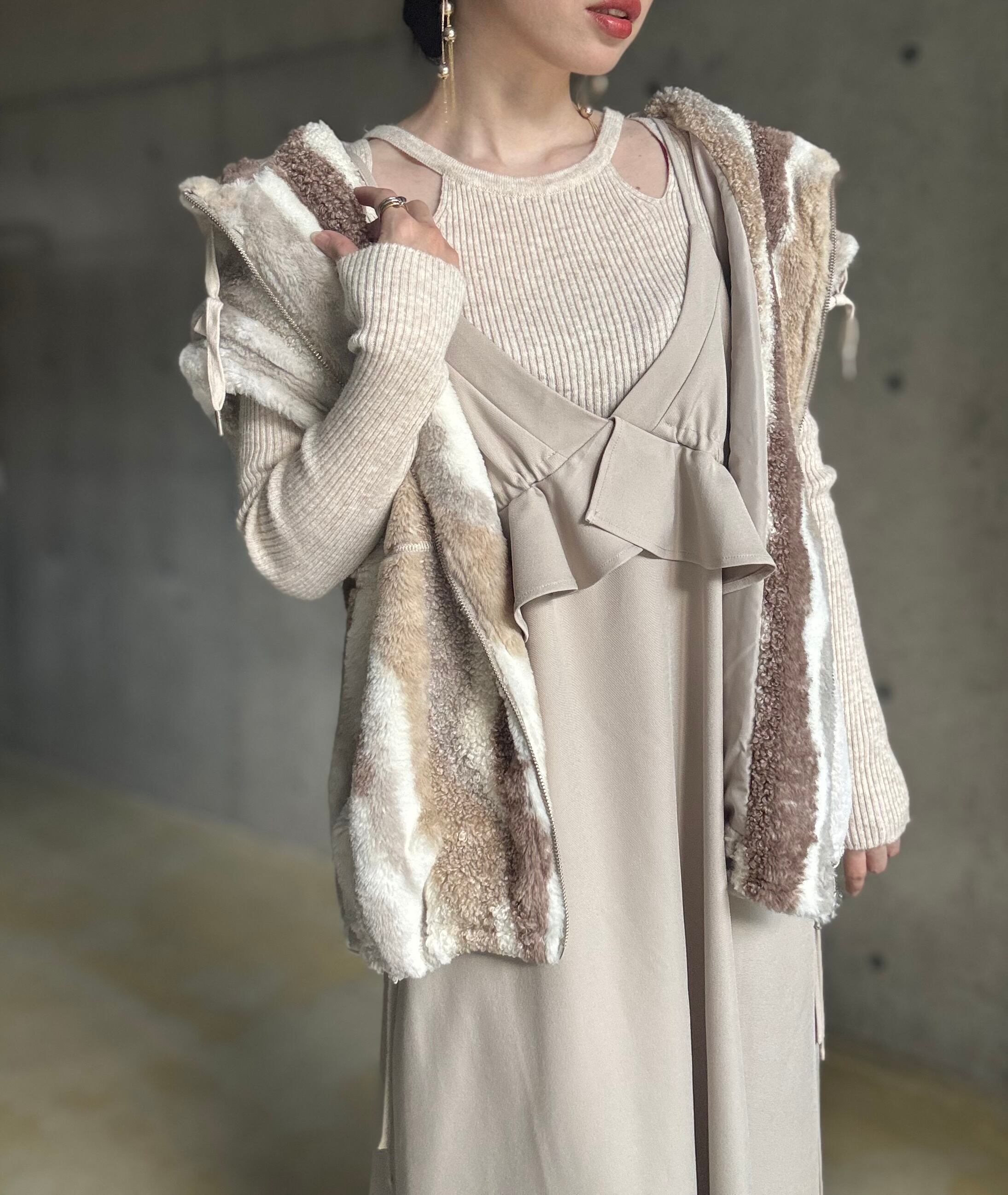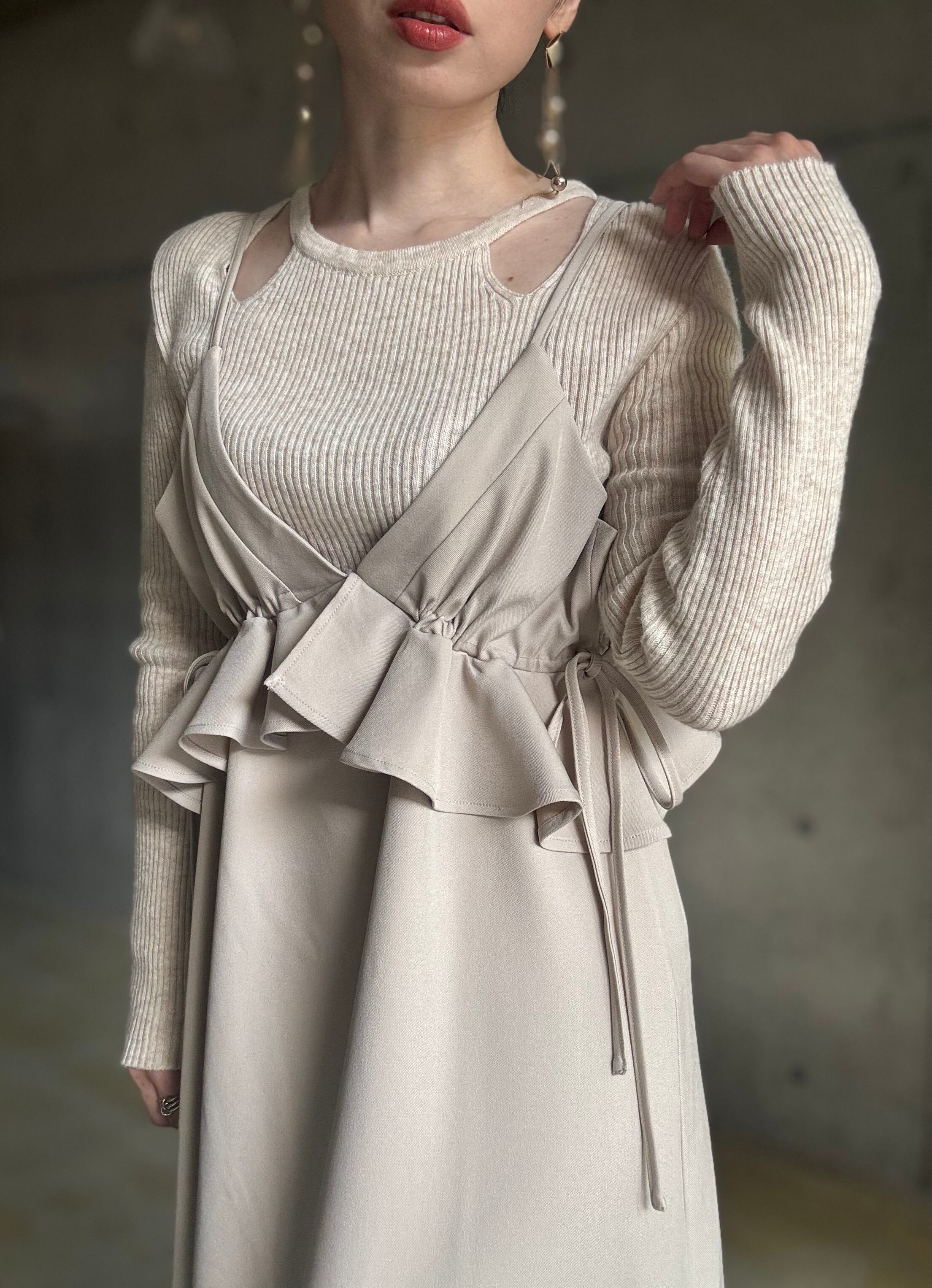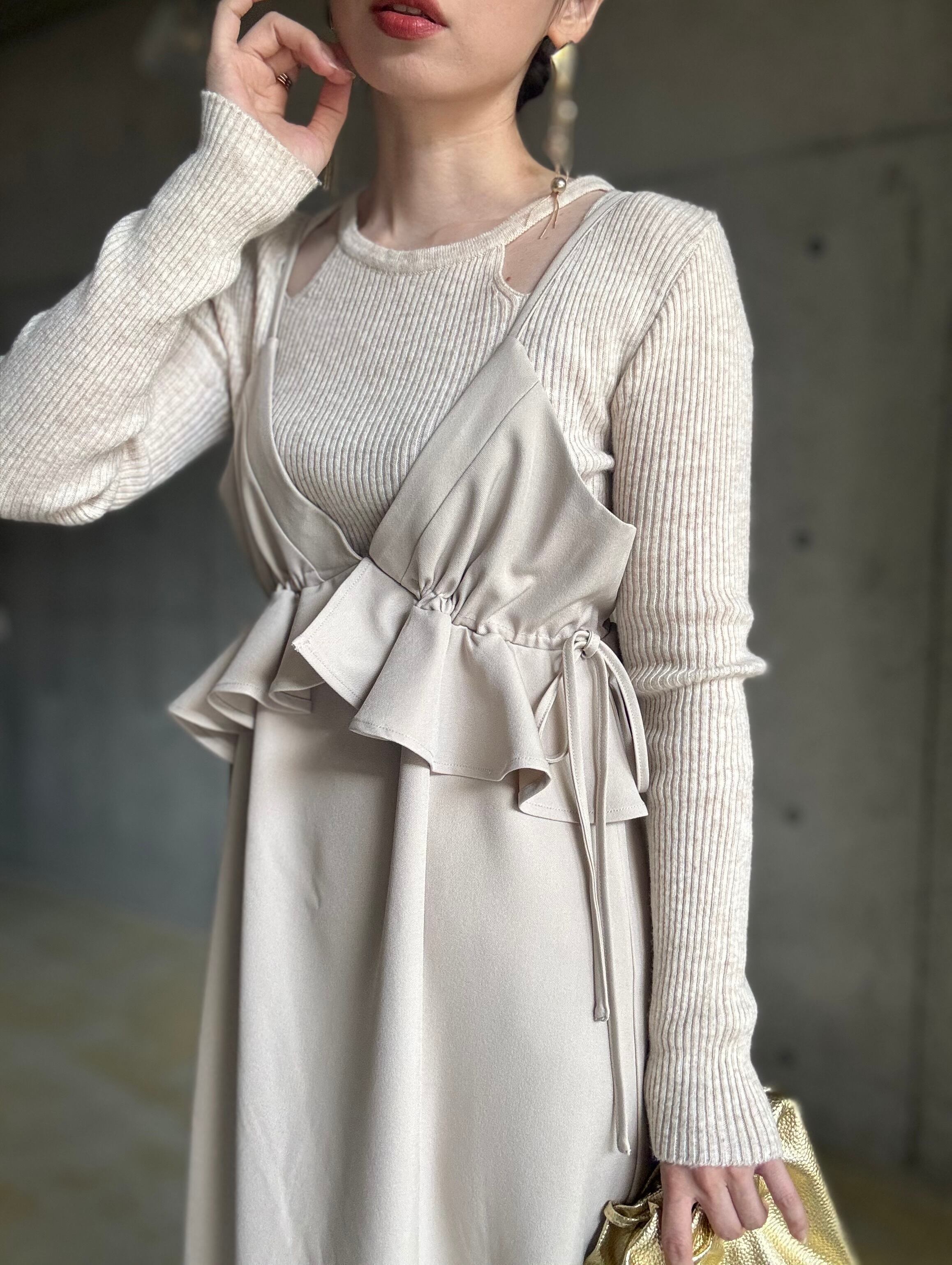 ペプラムリボン紐キャミワンピース【ライトベージュ】