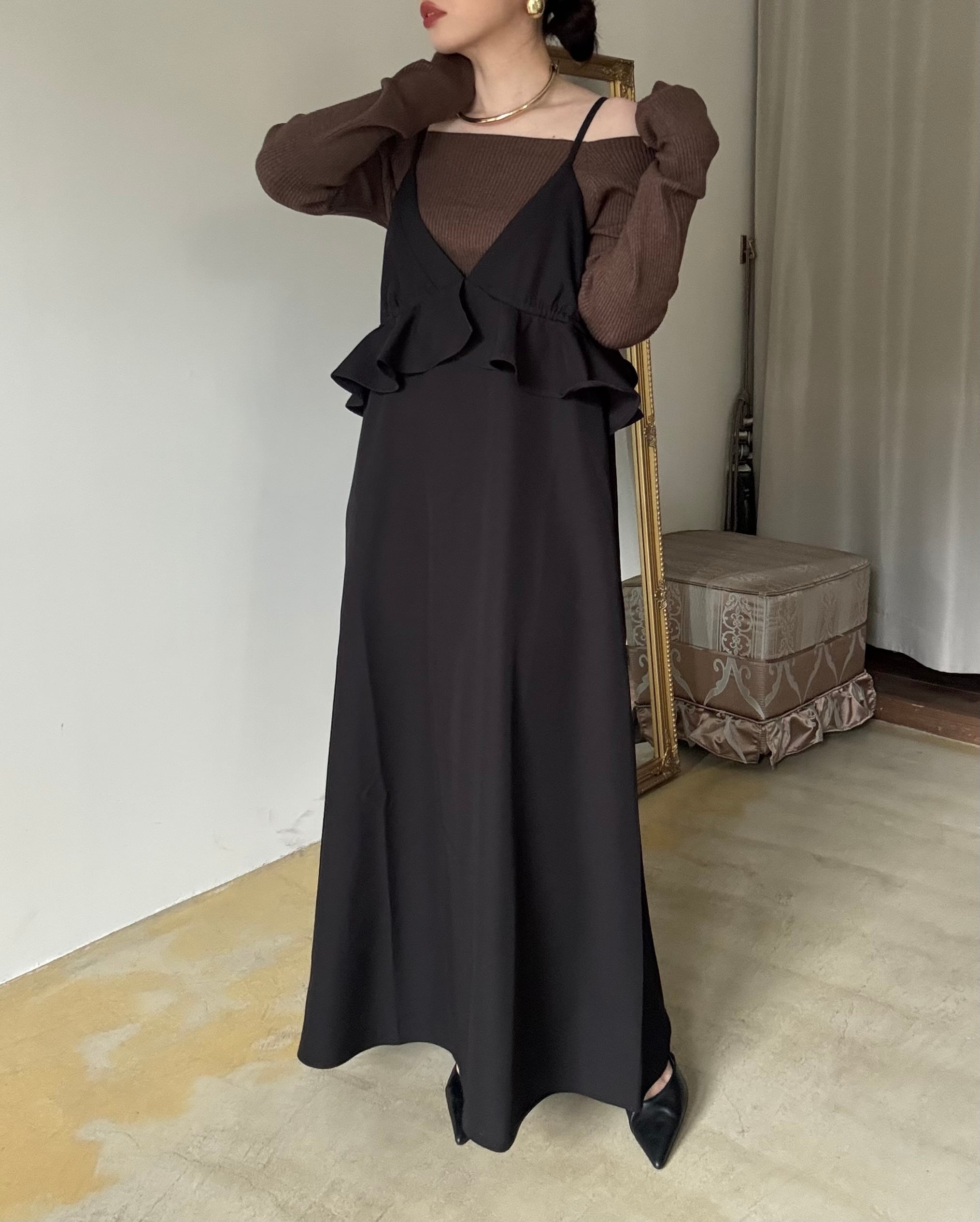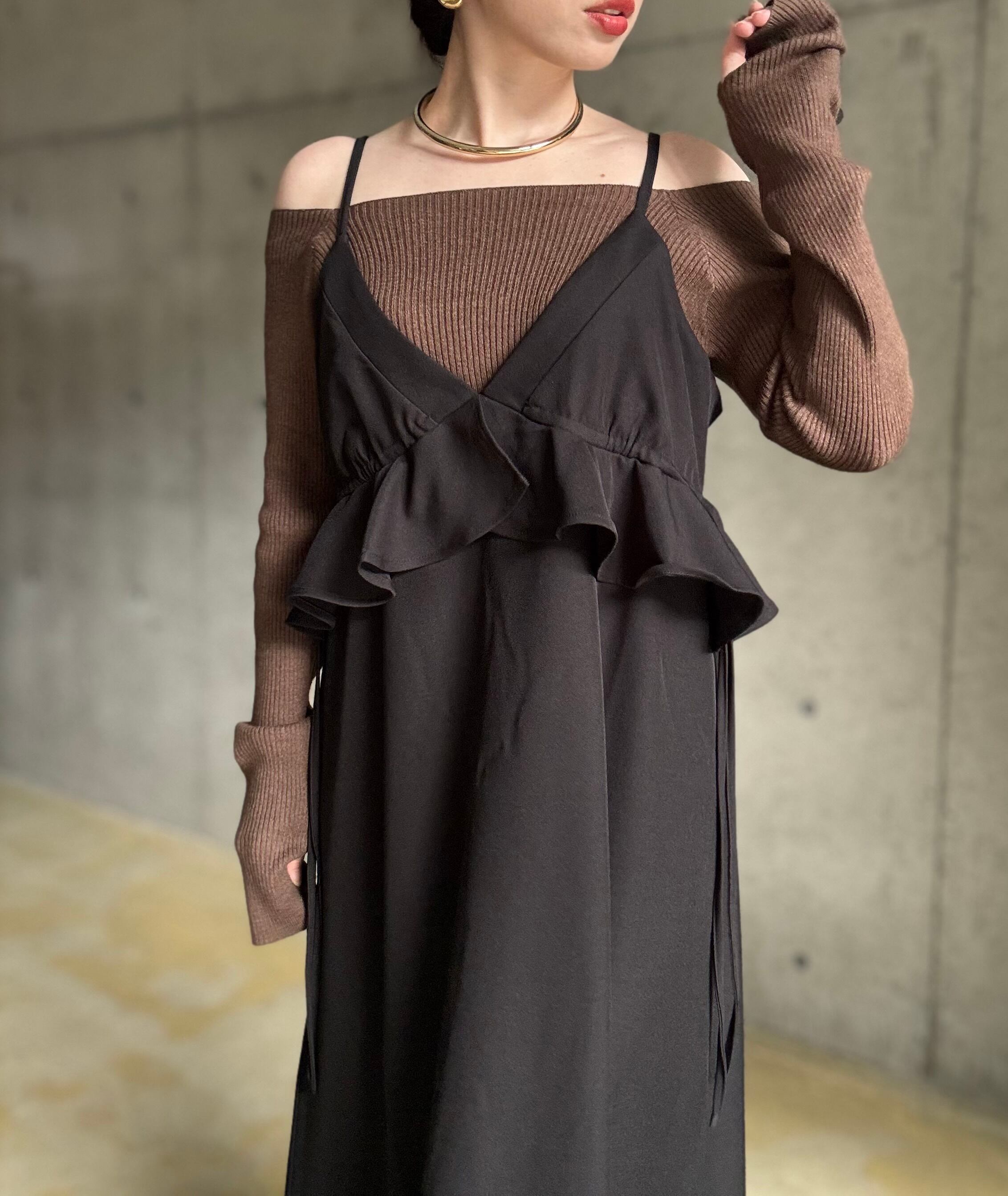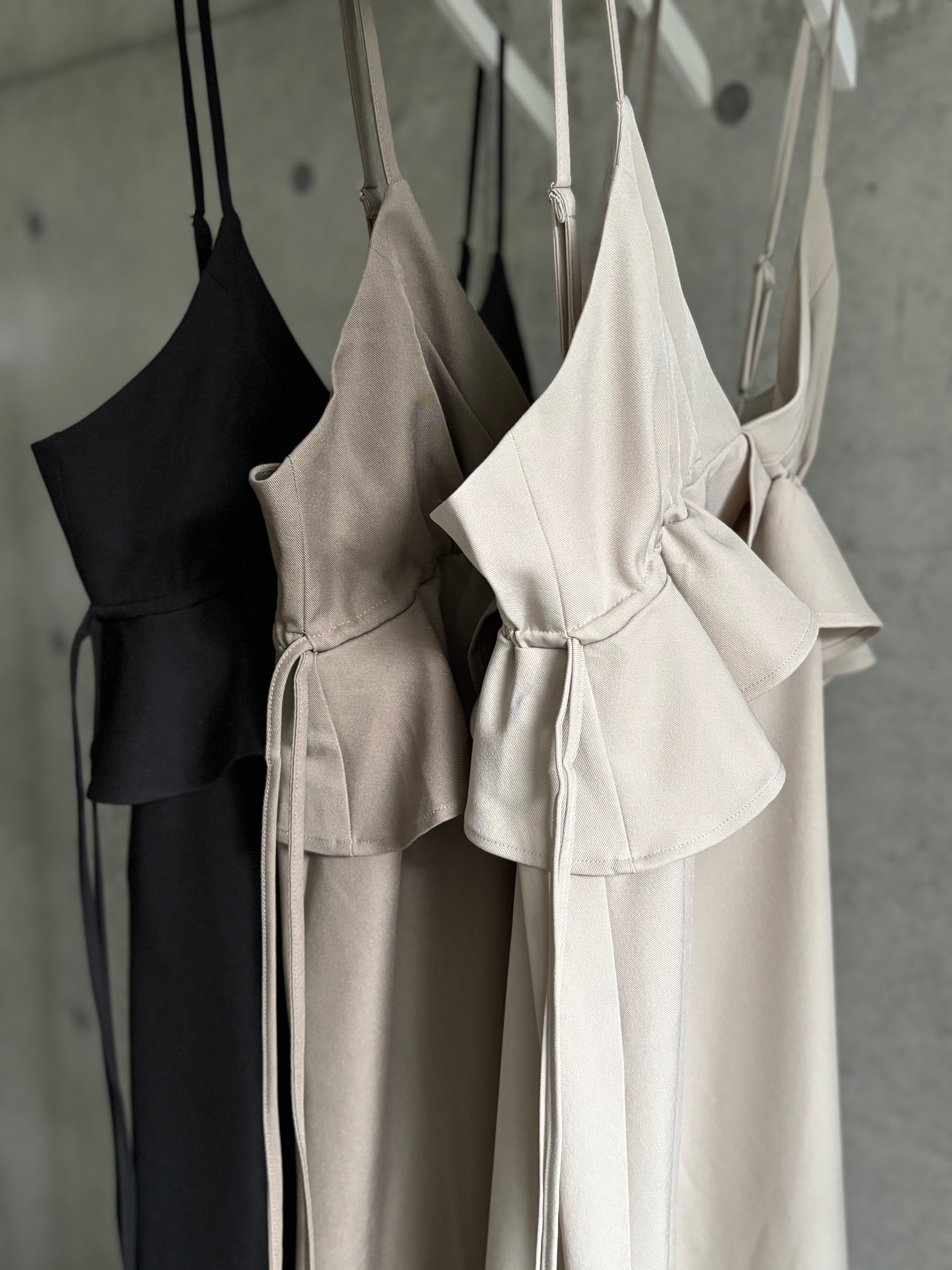 ウエストのフリル&リボン紐がポイントのペプラムキャミワンピース✨