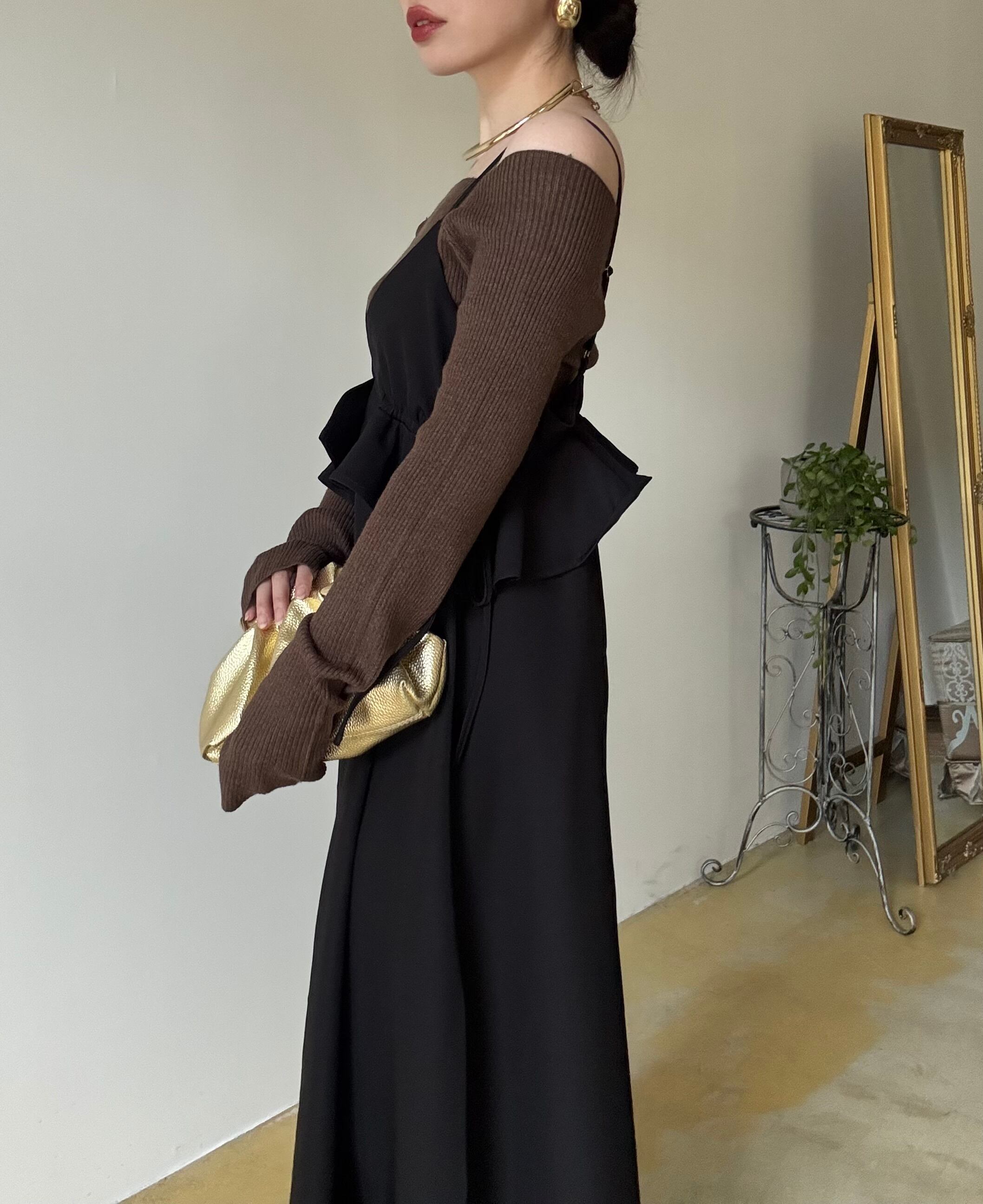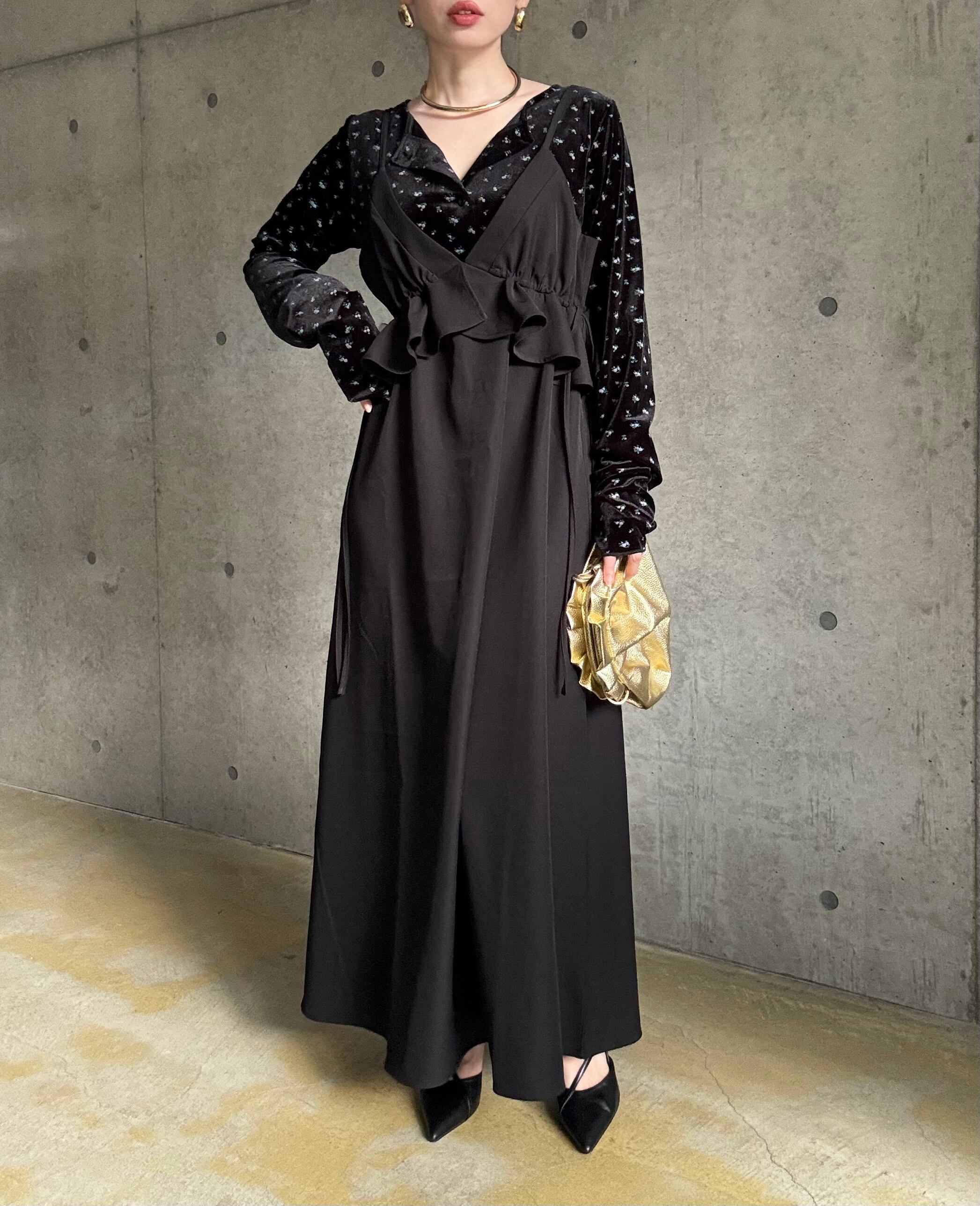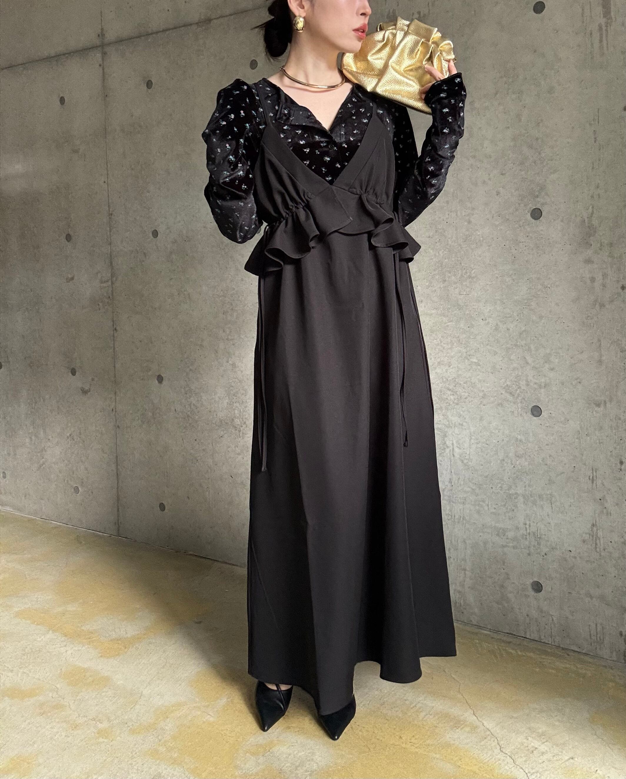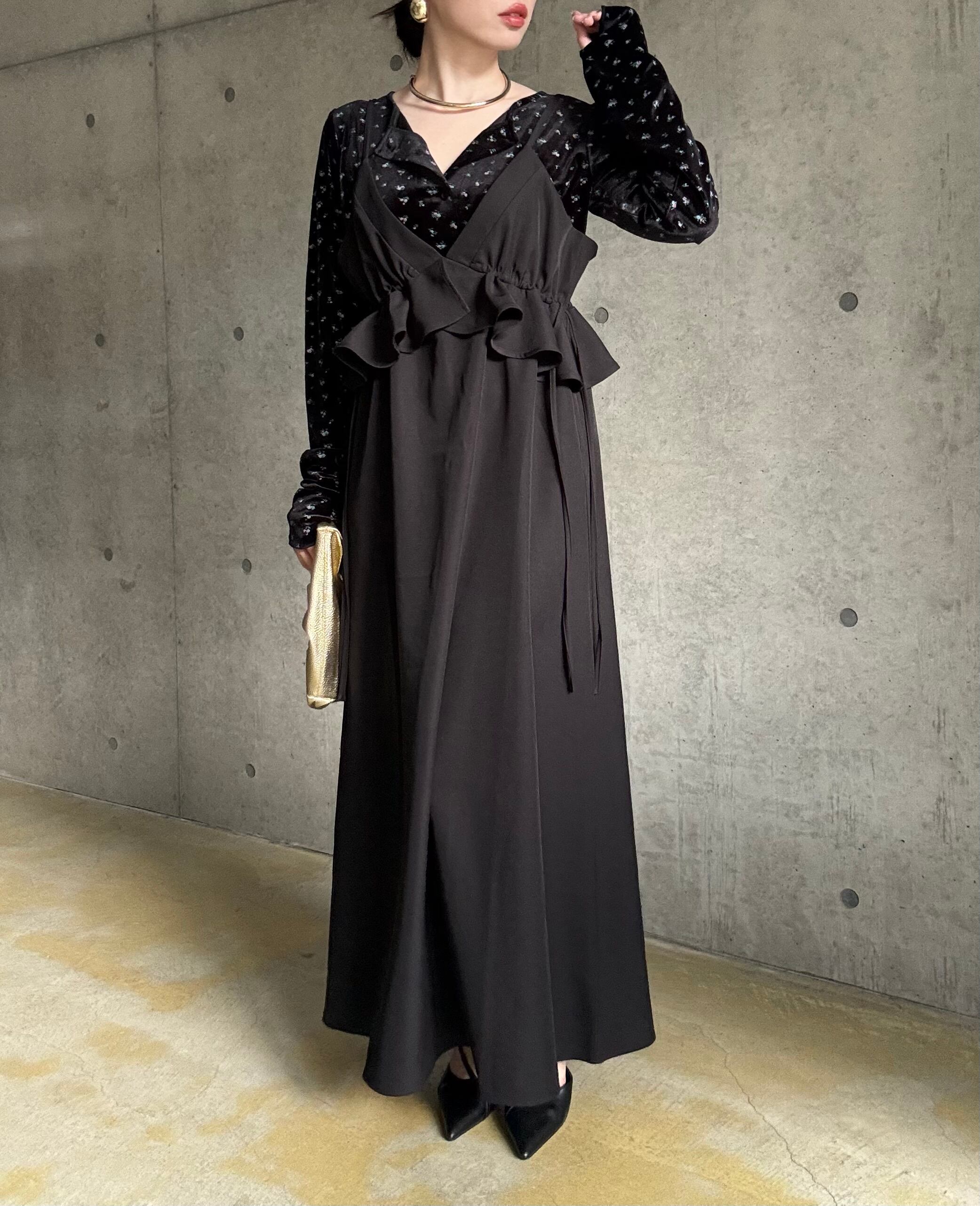ウエストのフリル&リボン紐がポイントのペプラムキャミワンピース✨