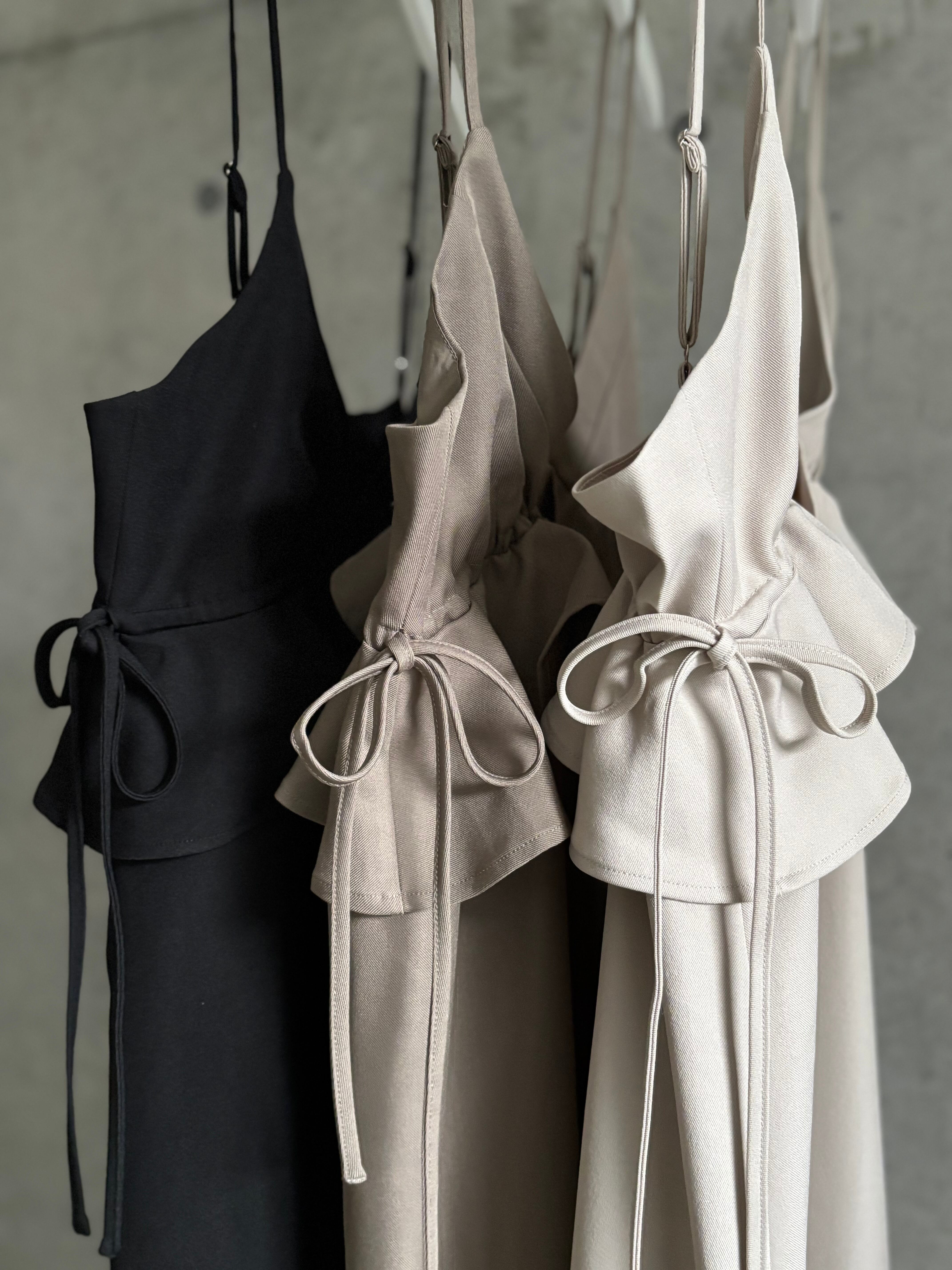 【即納】ペプラムリボン紐キャミワンピース【ブラック】