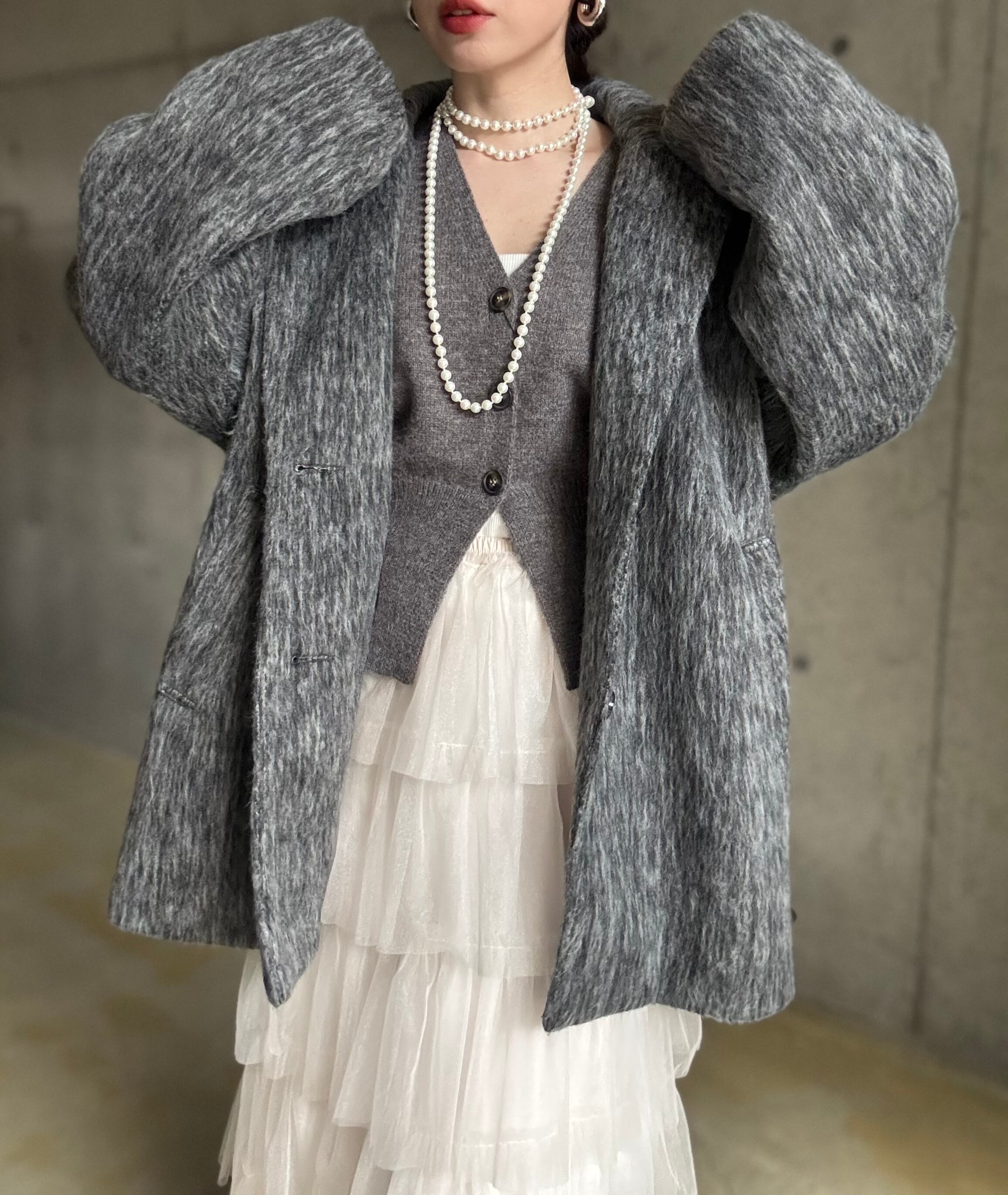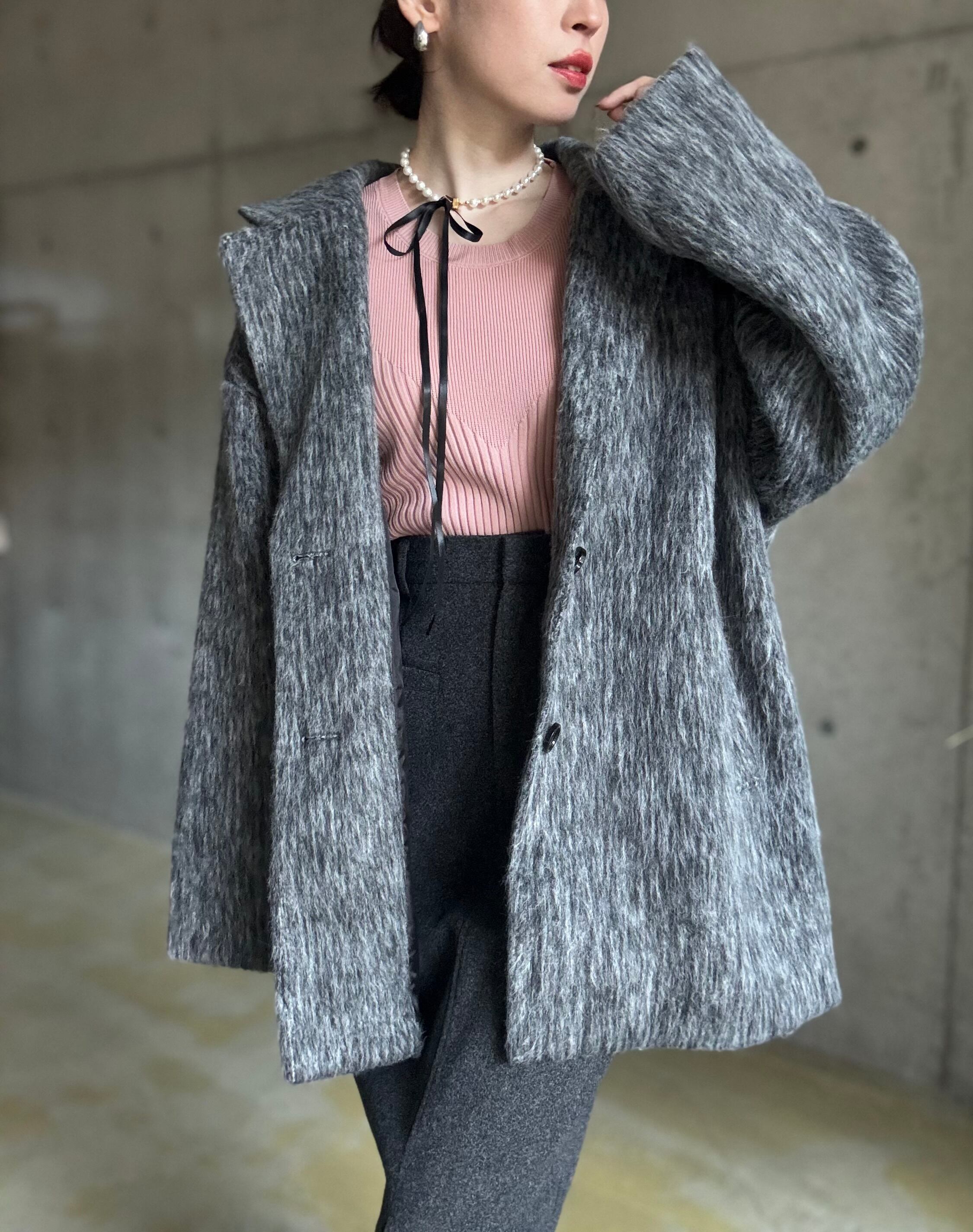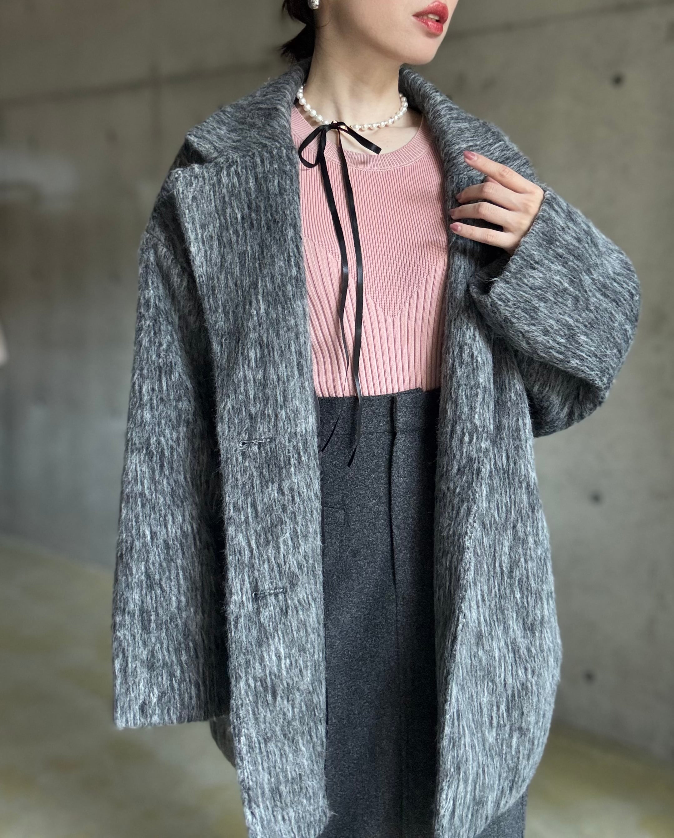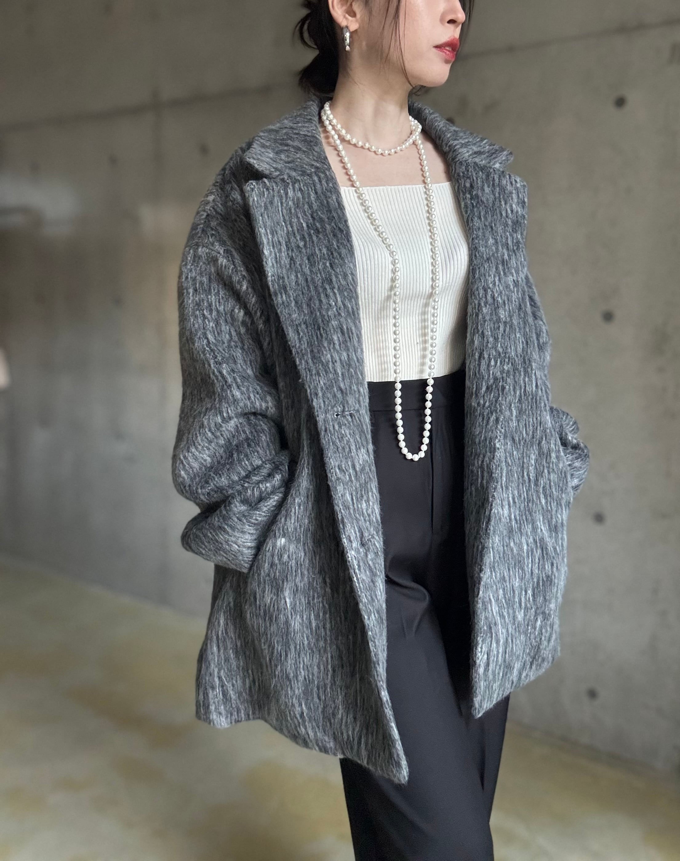 ふんわりと柔らかなシャギー素材を使用した、上品で存在感のあるミドル丈テーラーコート✨