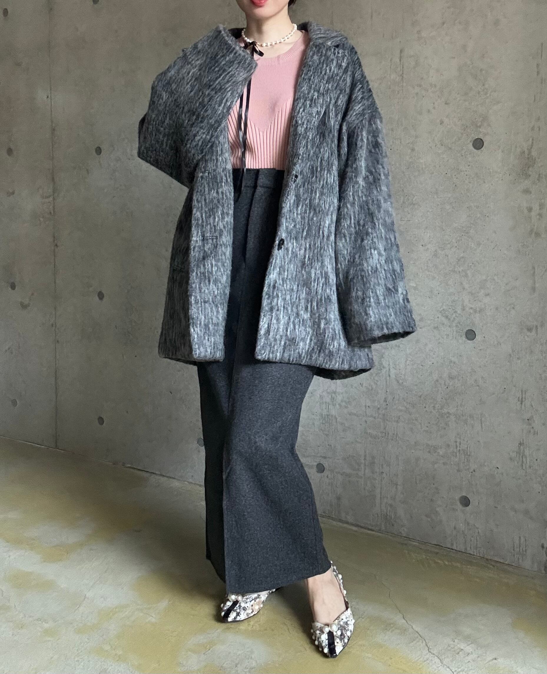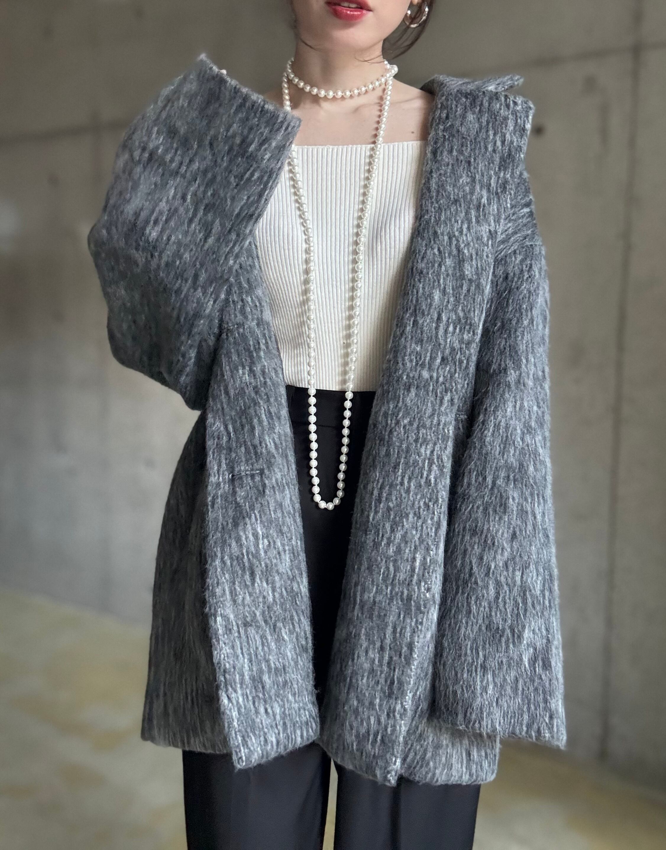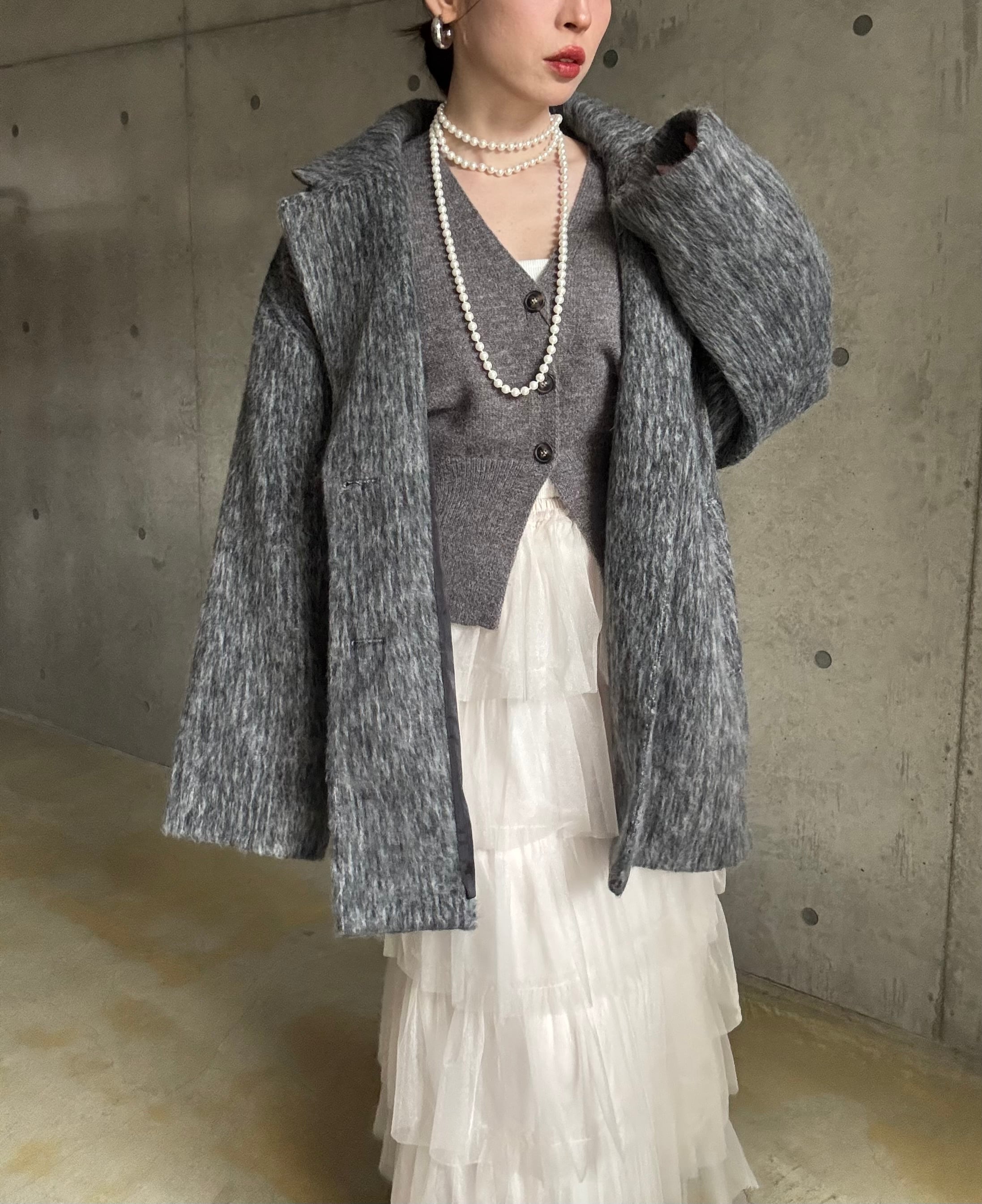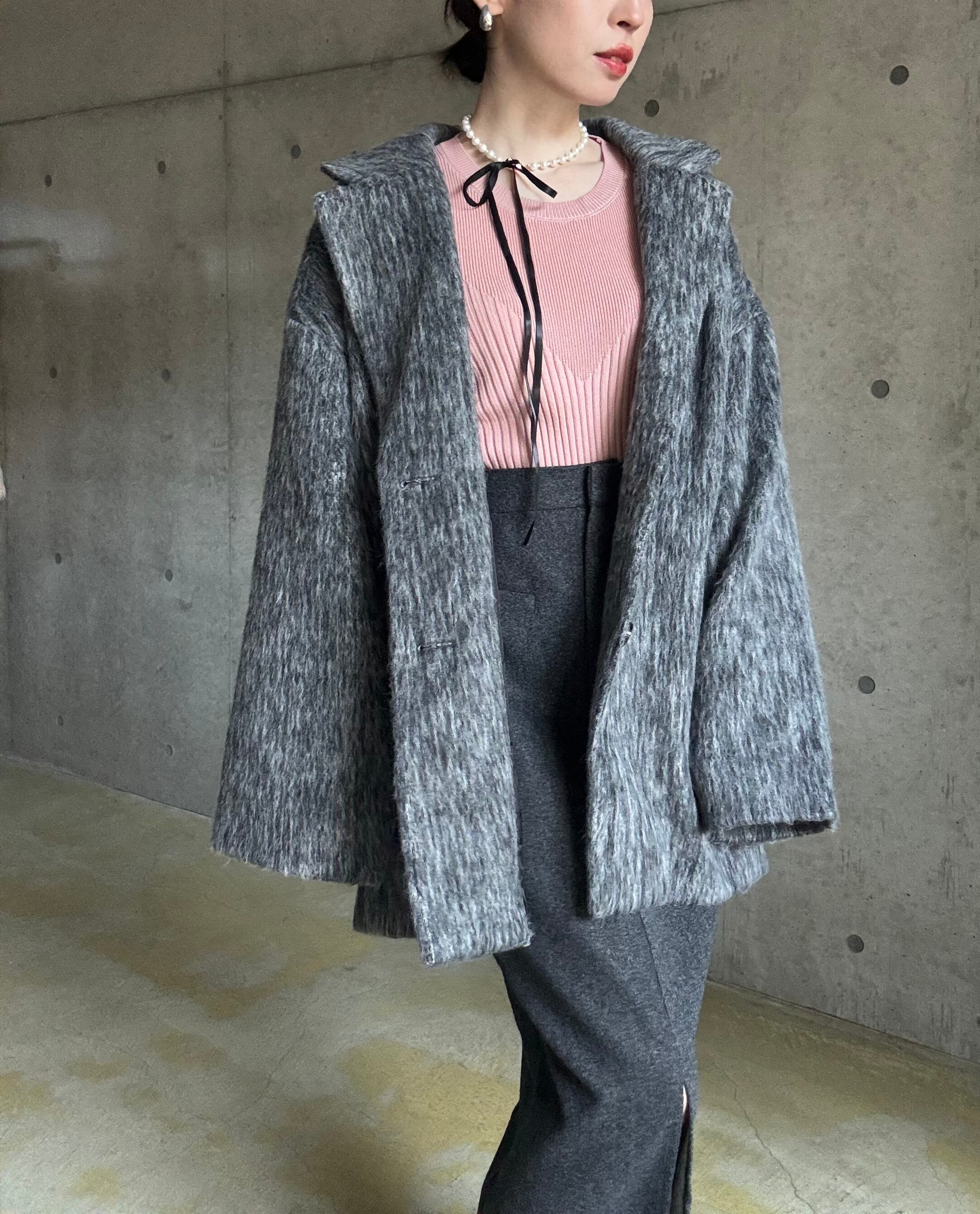ふんわりと柔らかなシャギー素材を使用した、上品で存在感のあるミドル丈テーラーコート✨
