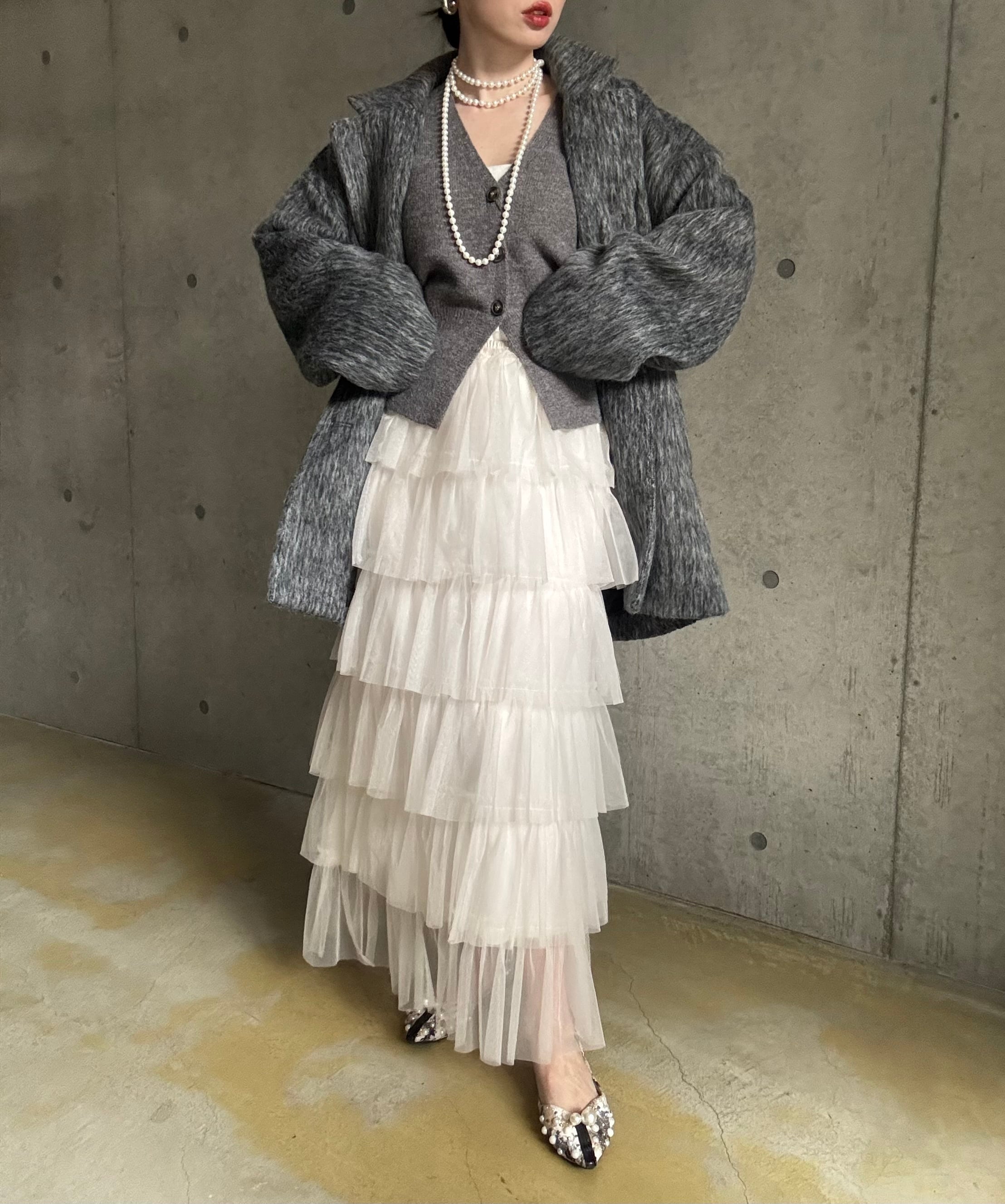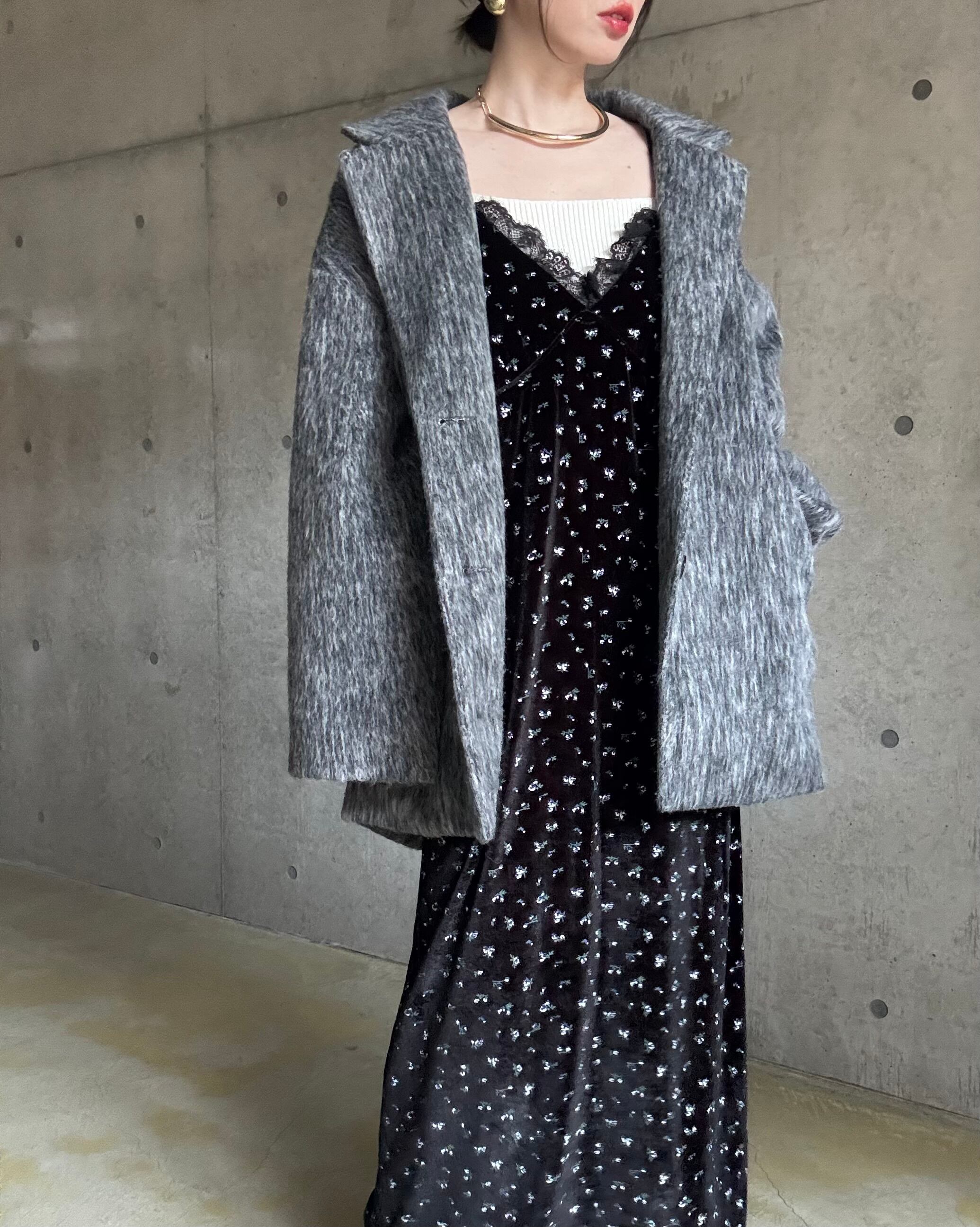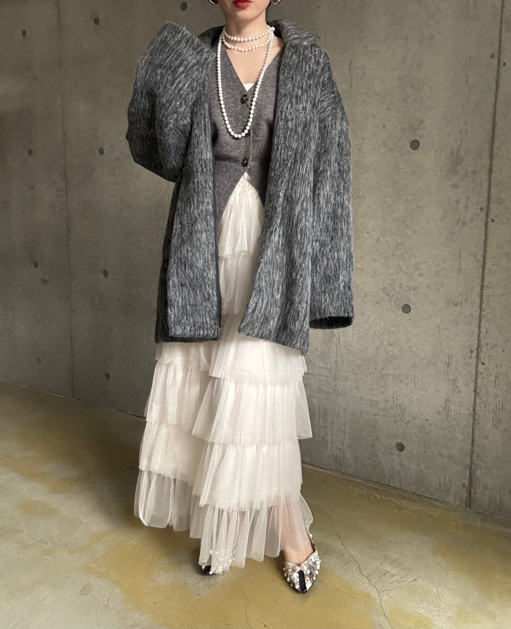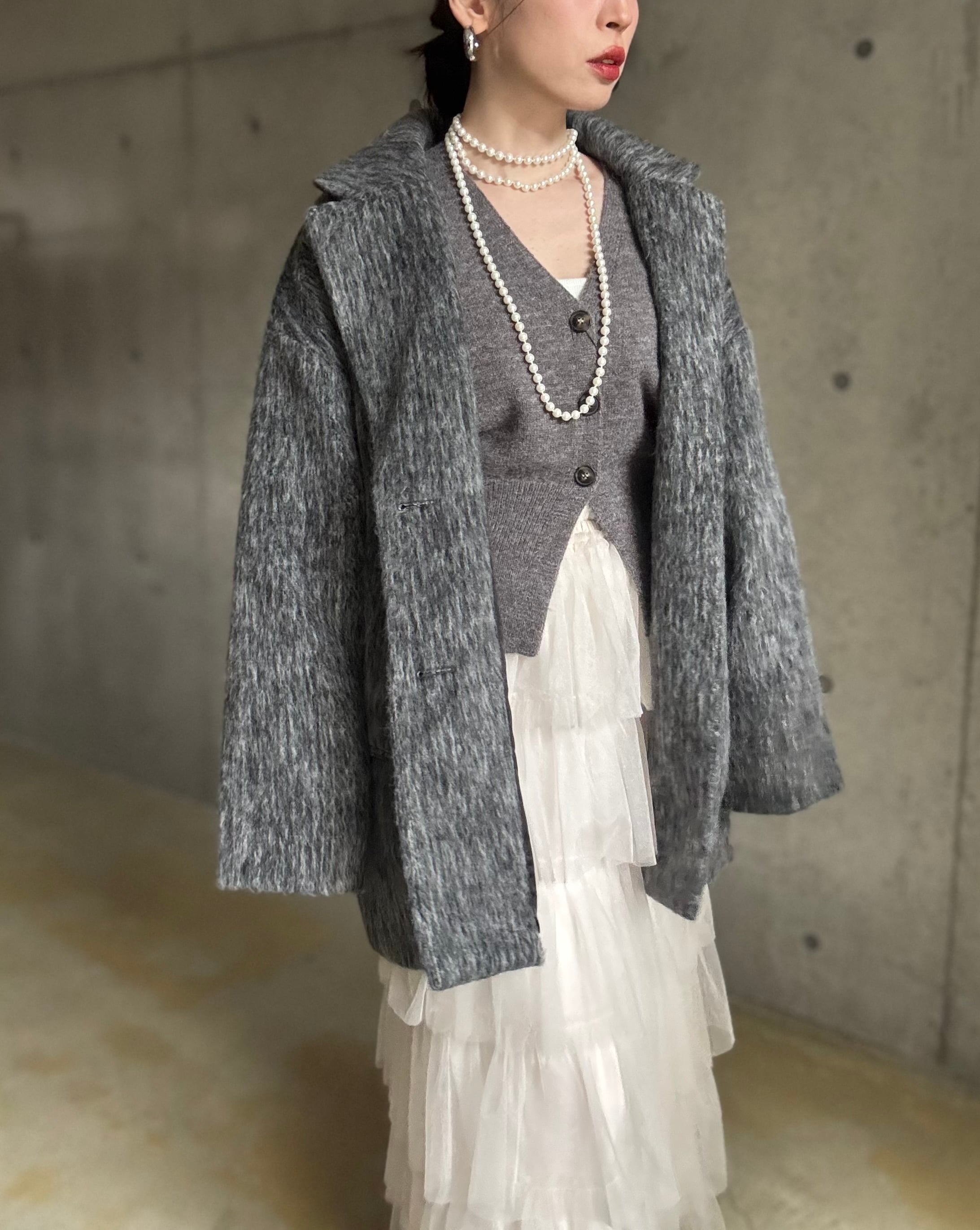 ふんわりと柔らかなシャギー素材を使用した、上品で存在感のあるミドル丈テーラーコート✨
