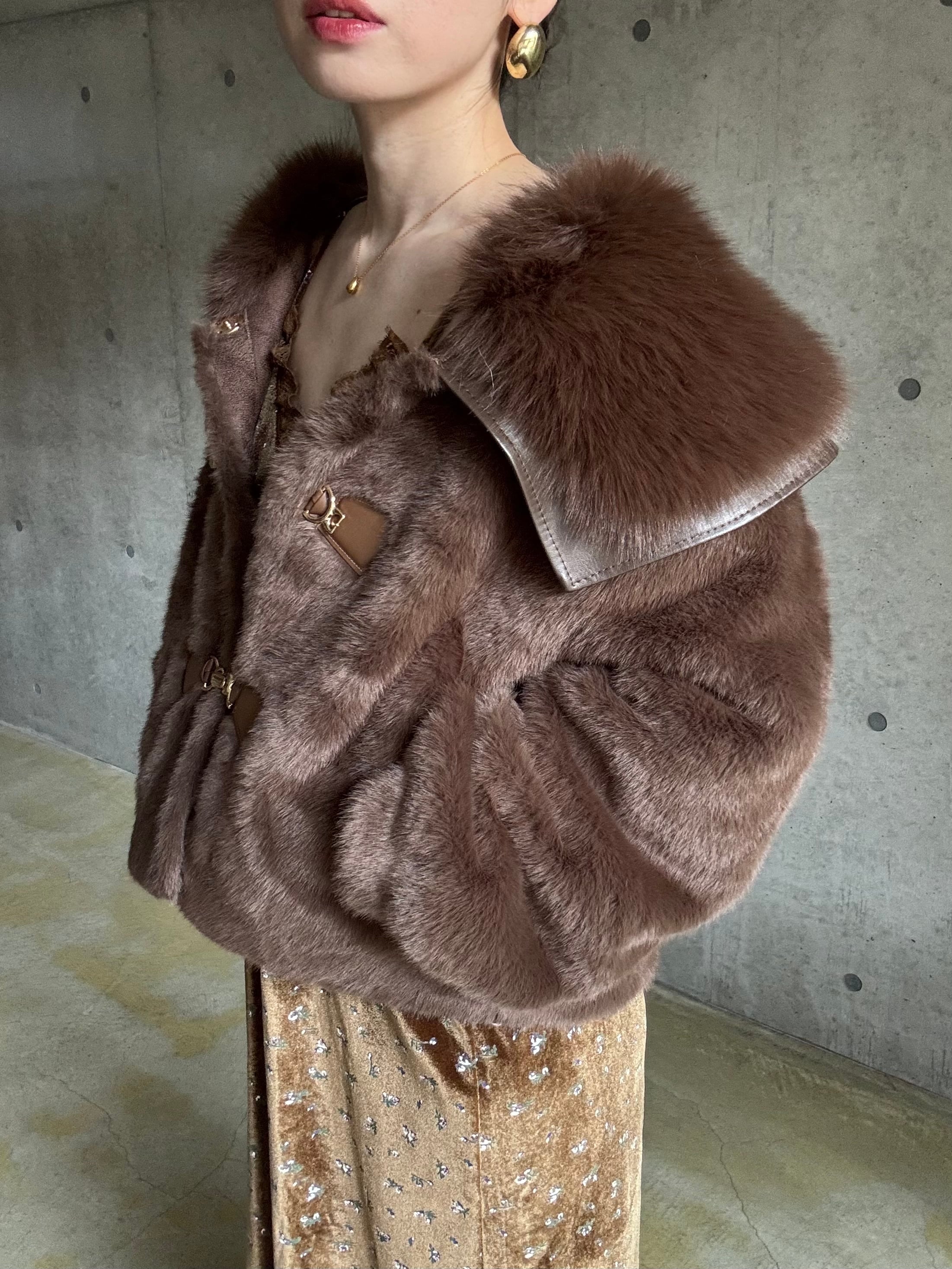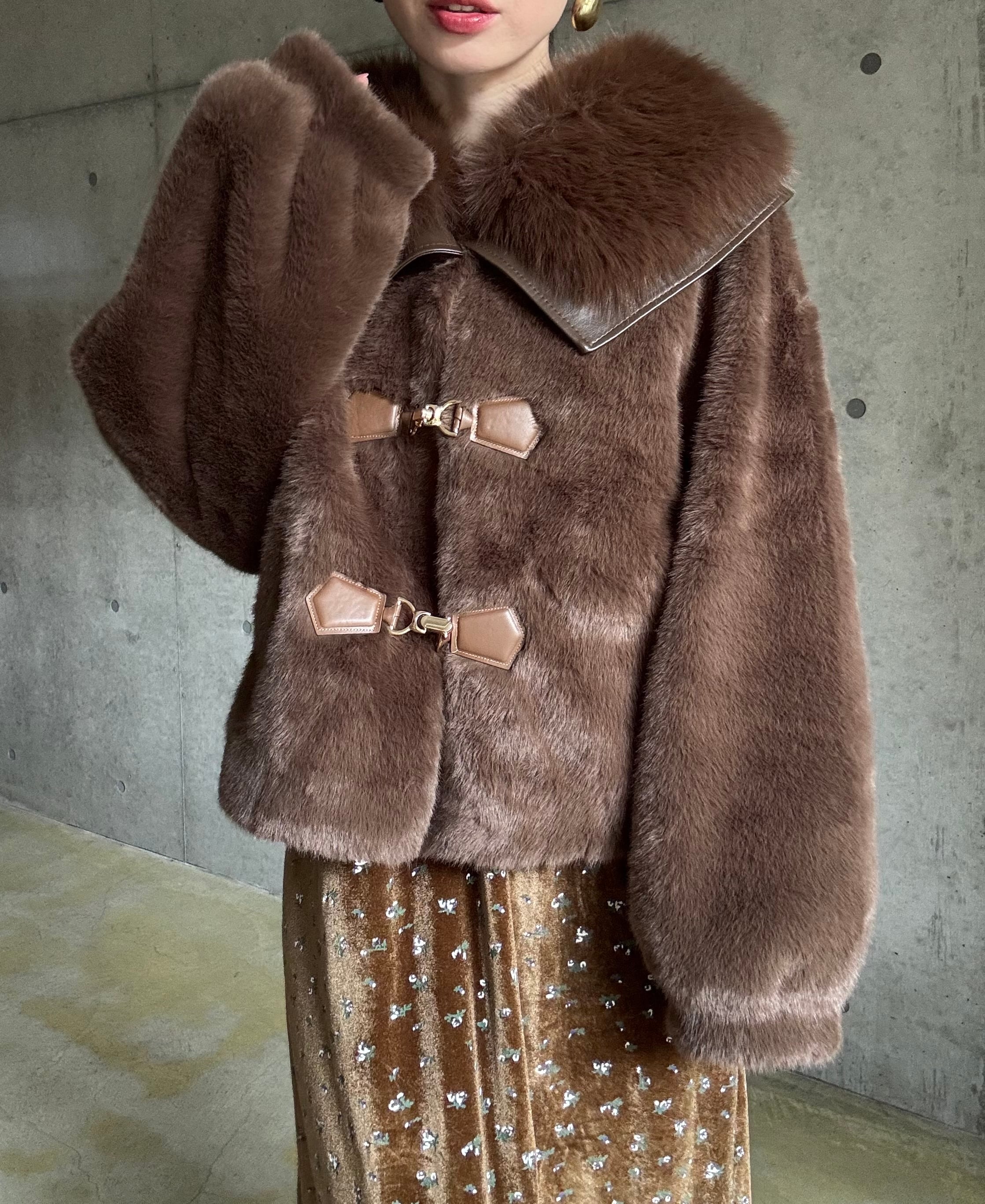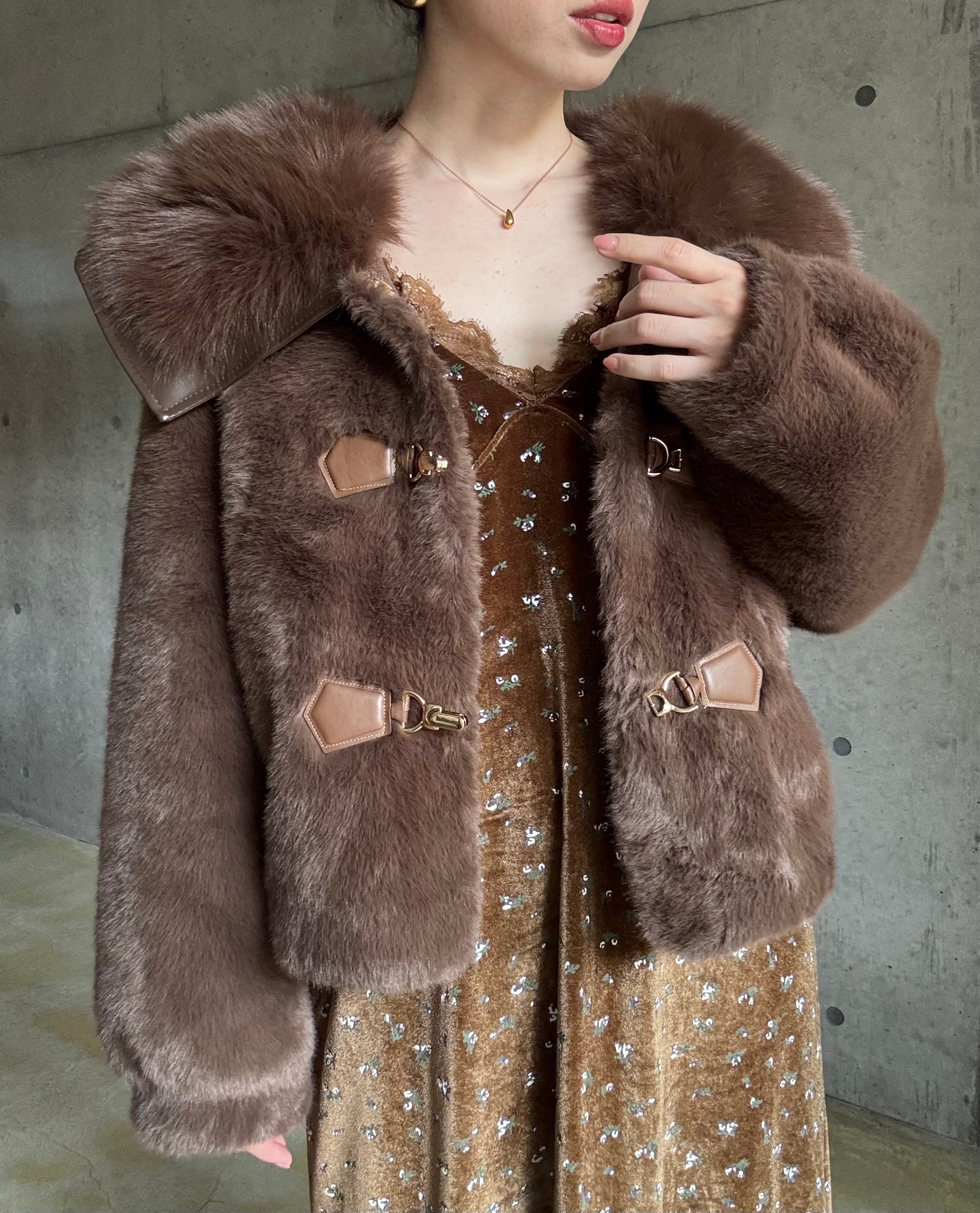 大きめな襟はフェイクレザーにファーが付いたデザインで、キュートながらも大人っぽい印象に♪