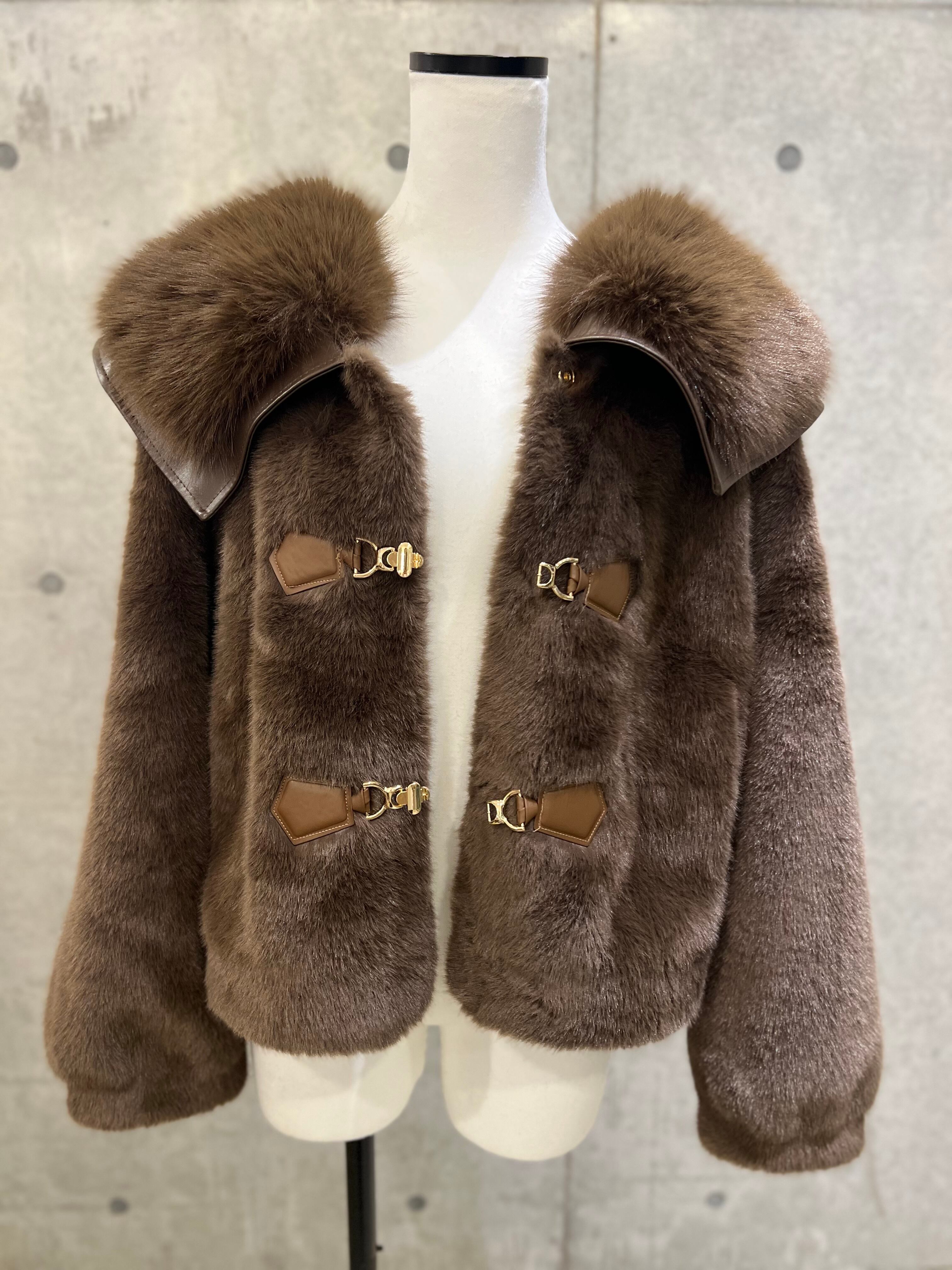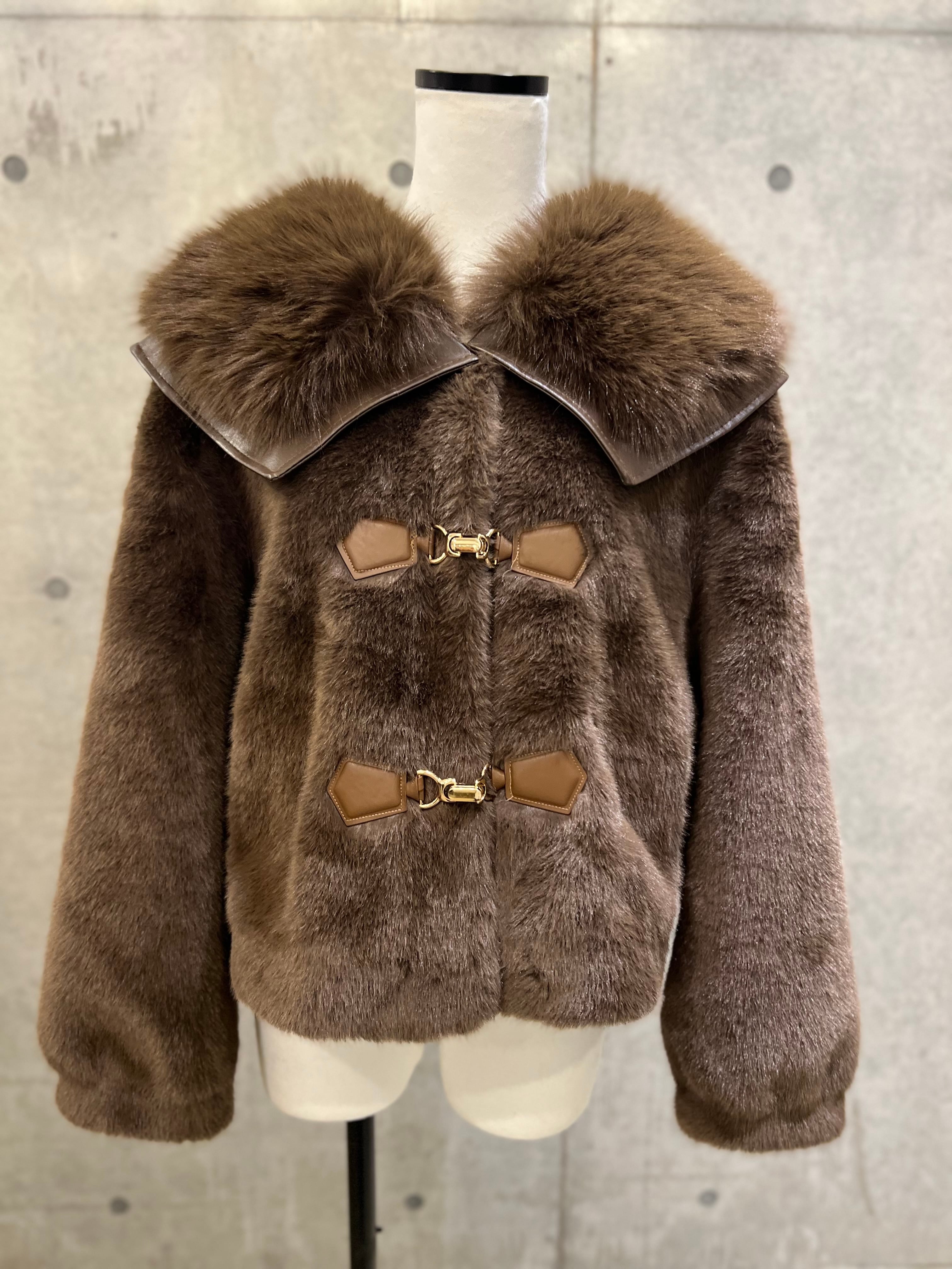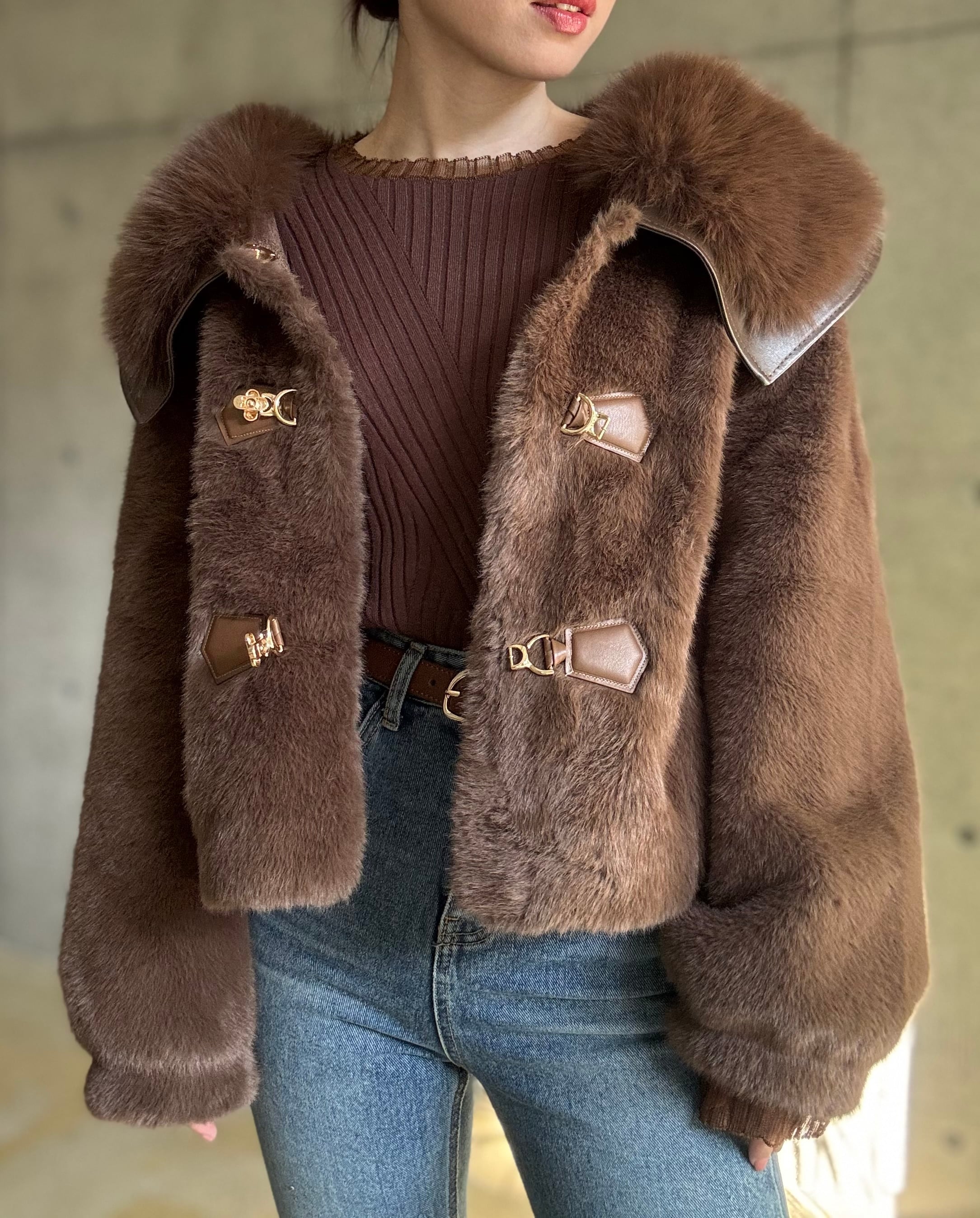 大きめな襟はフェイクレザーにファーが付いたデザインで、キュートながらも大人っぽい印象に♪