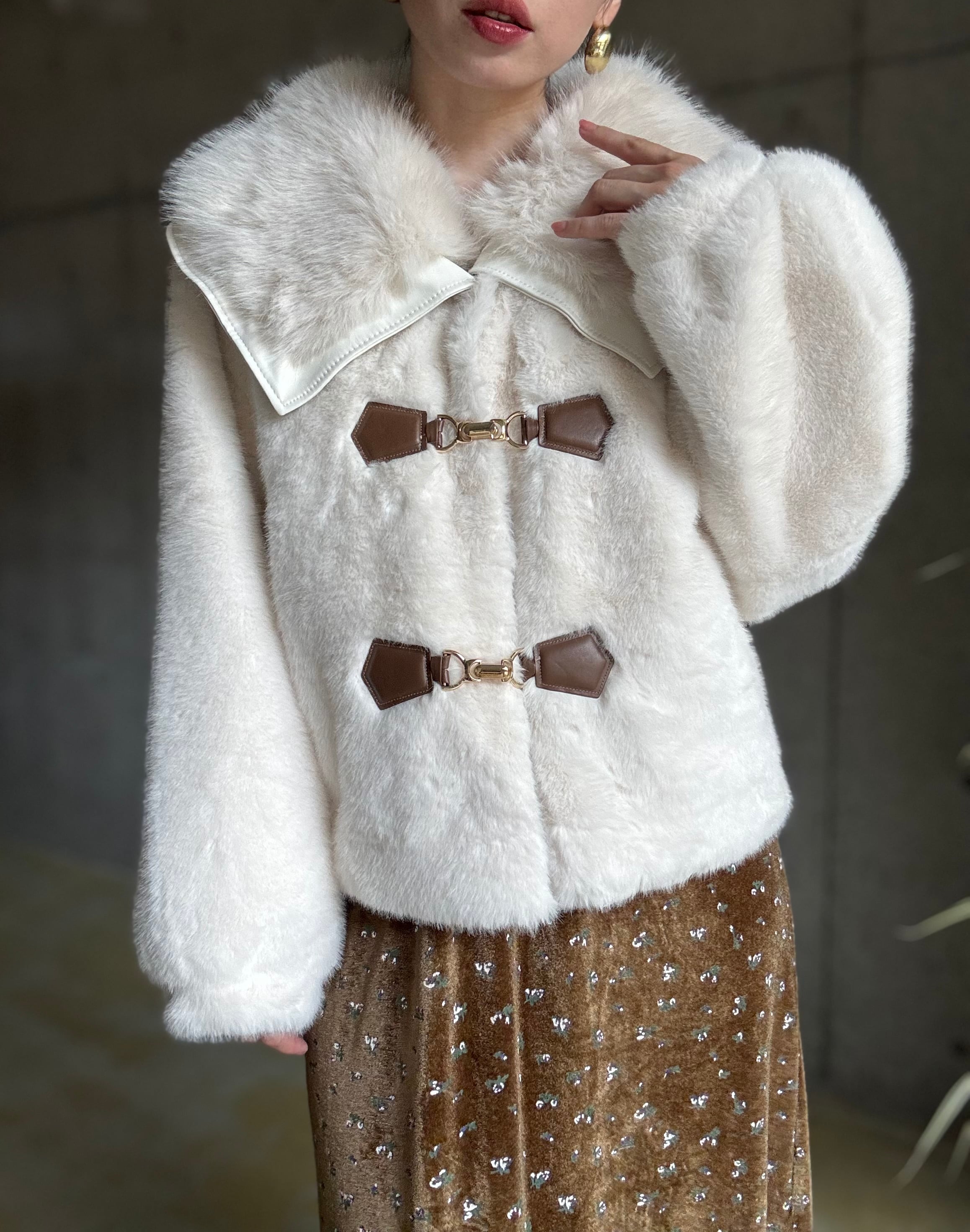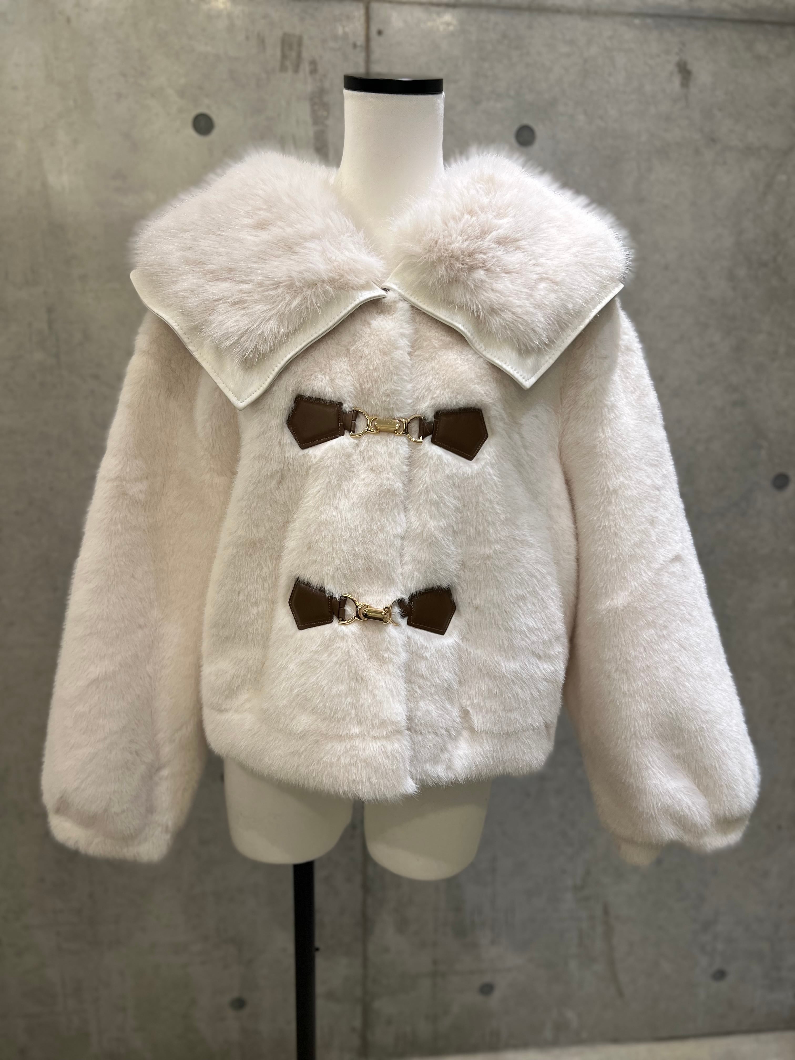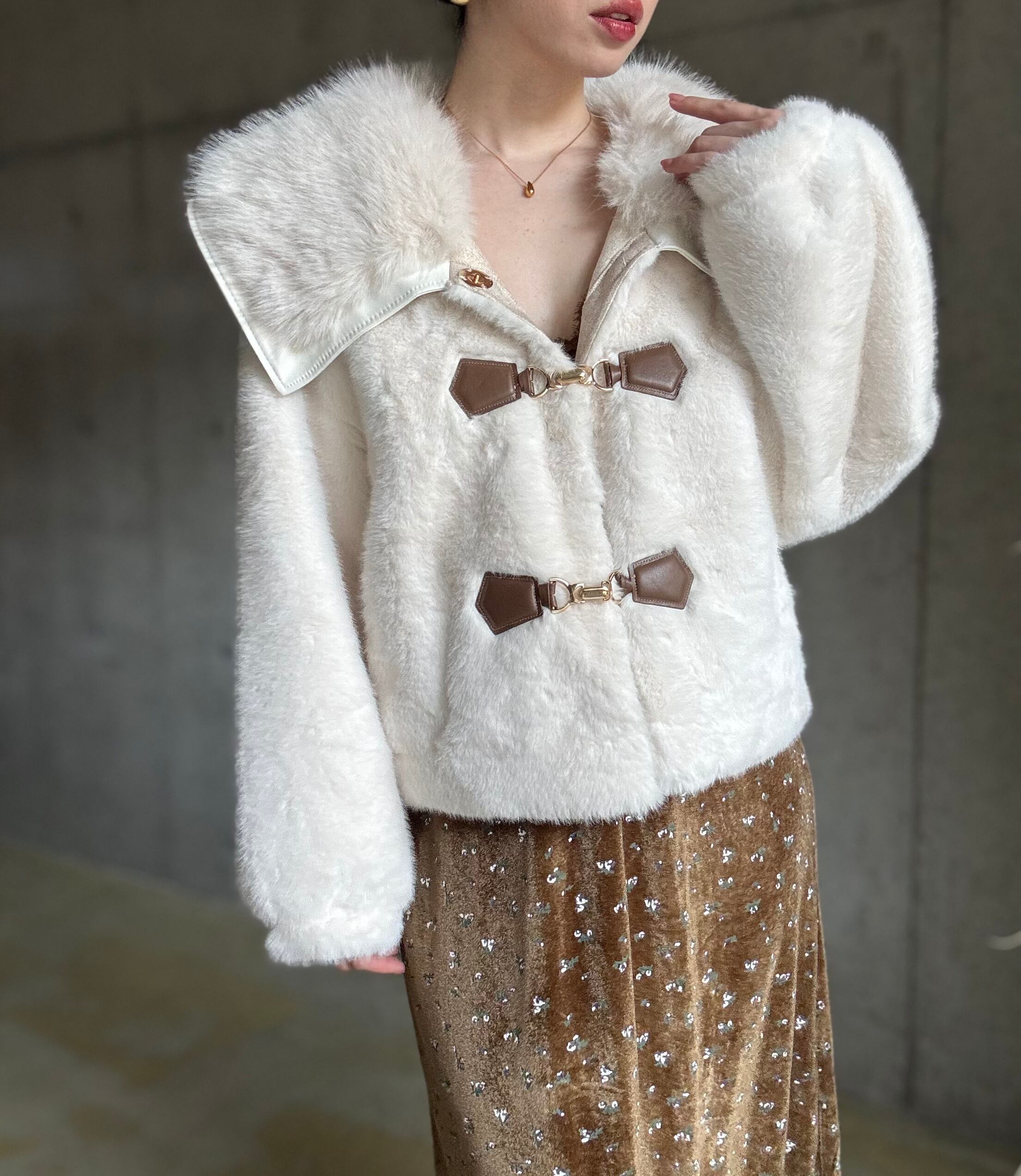 大きめな襟はフェイクレザーにファーが付いたデザインで、キュートながらも大人っぽい印象に♪