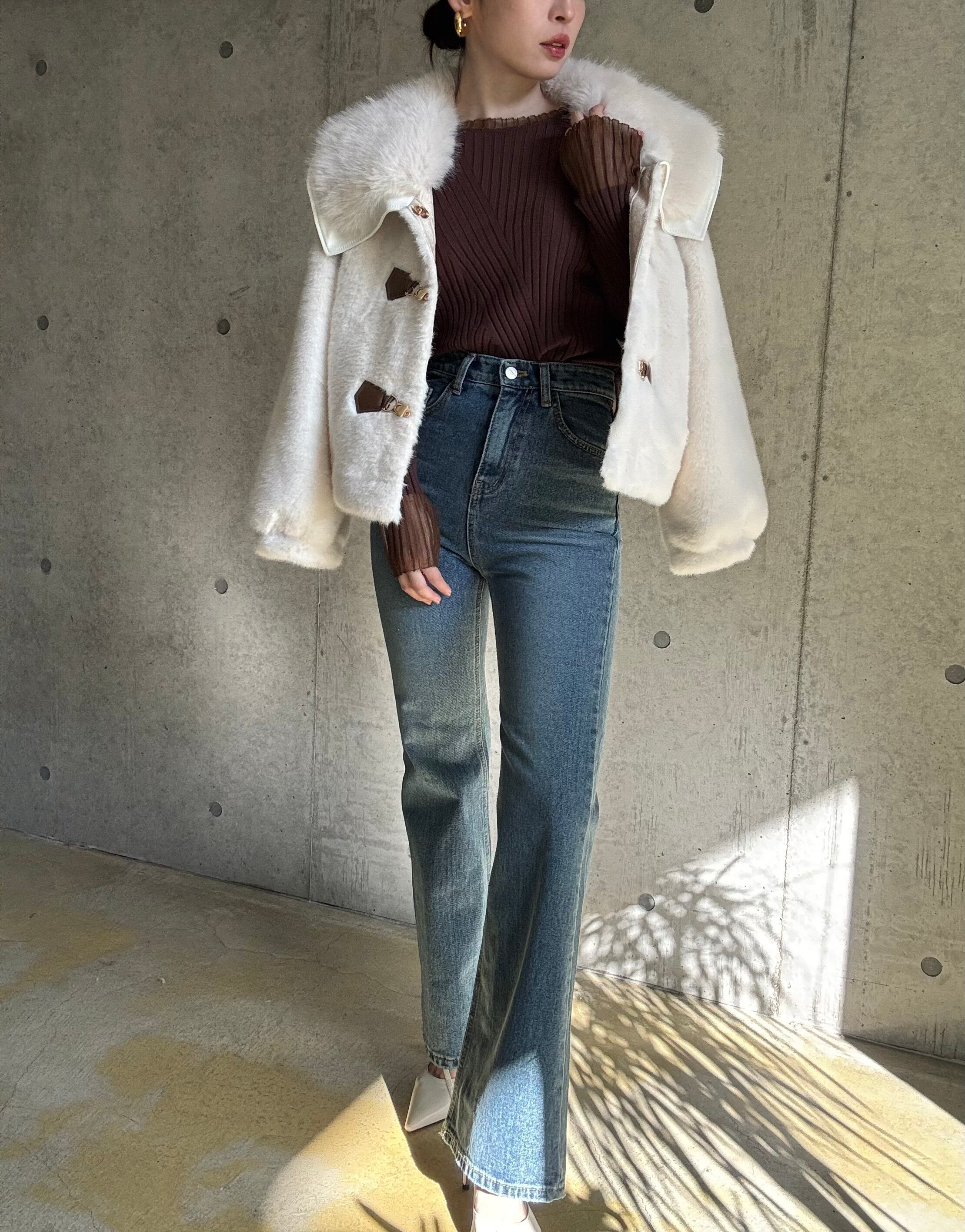 毛足の長いファーが華やかで高見えし、暖かく包んでくれる一着です✨