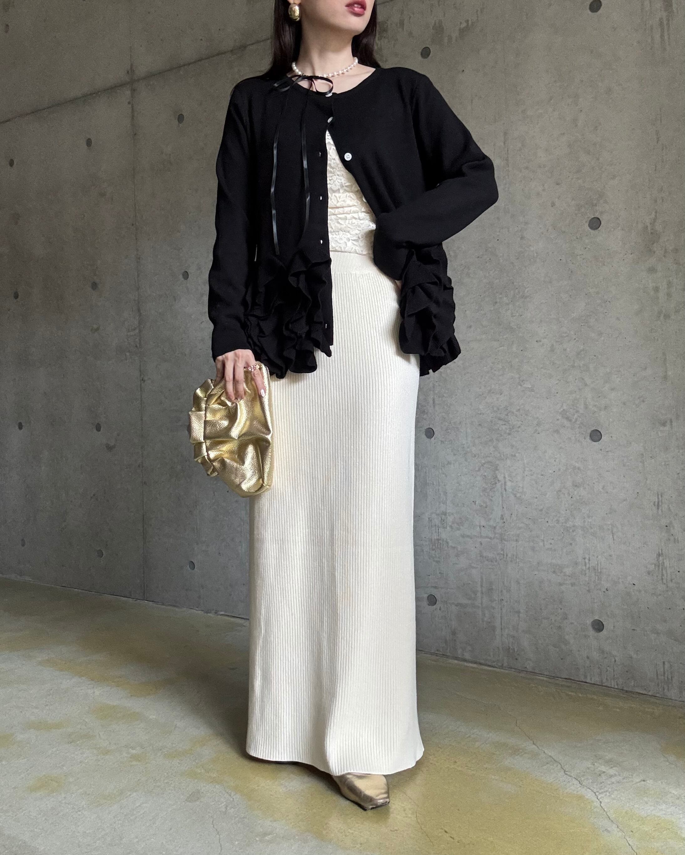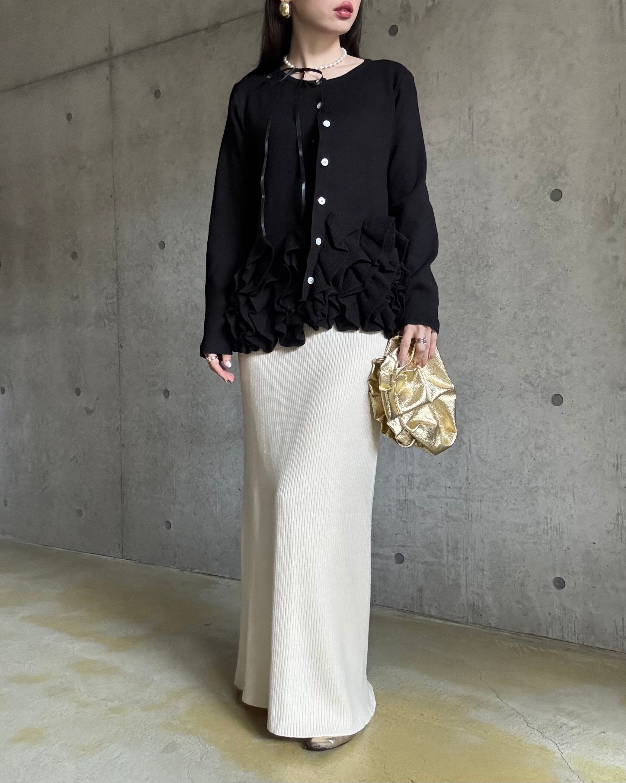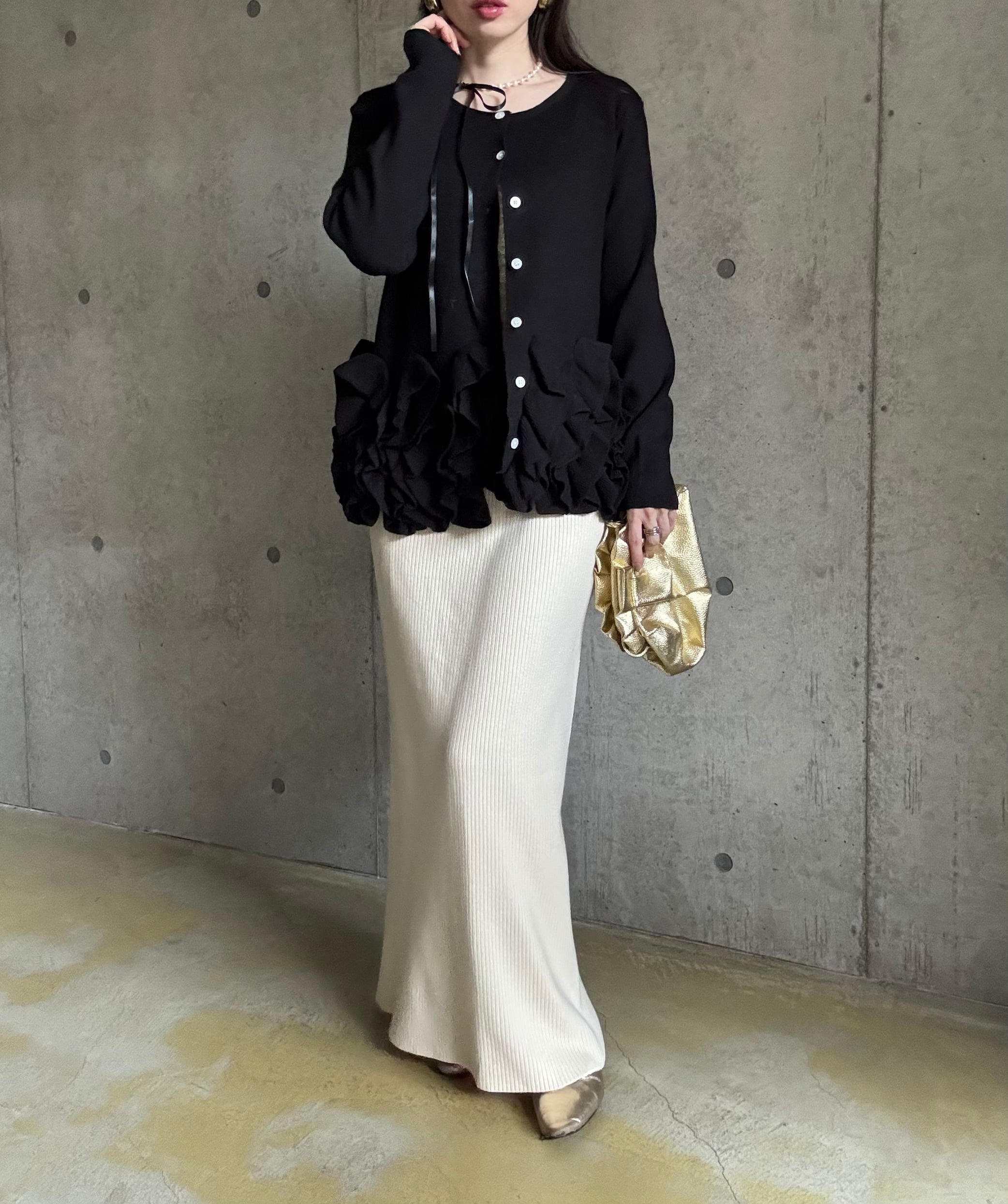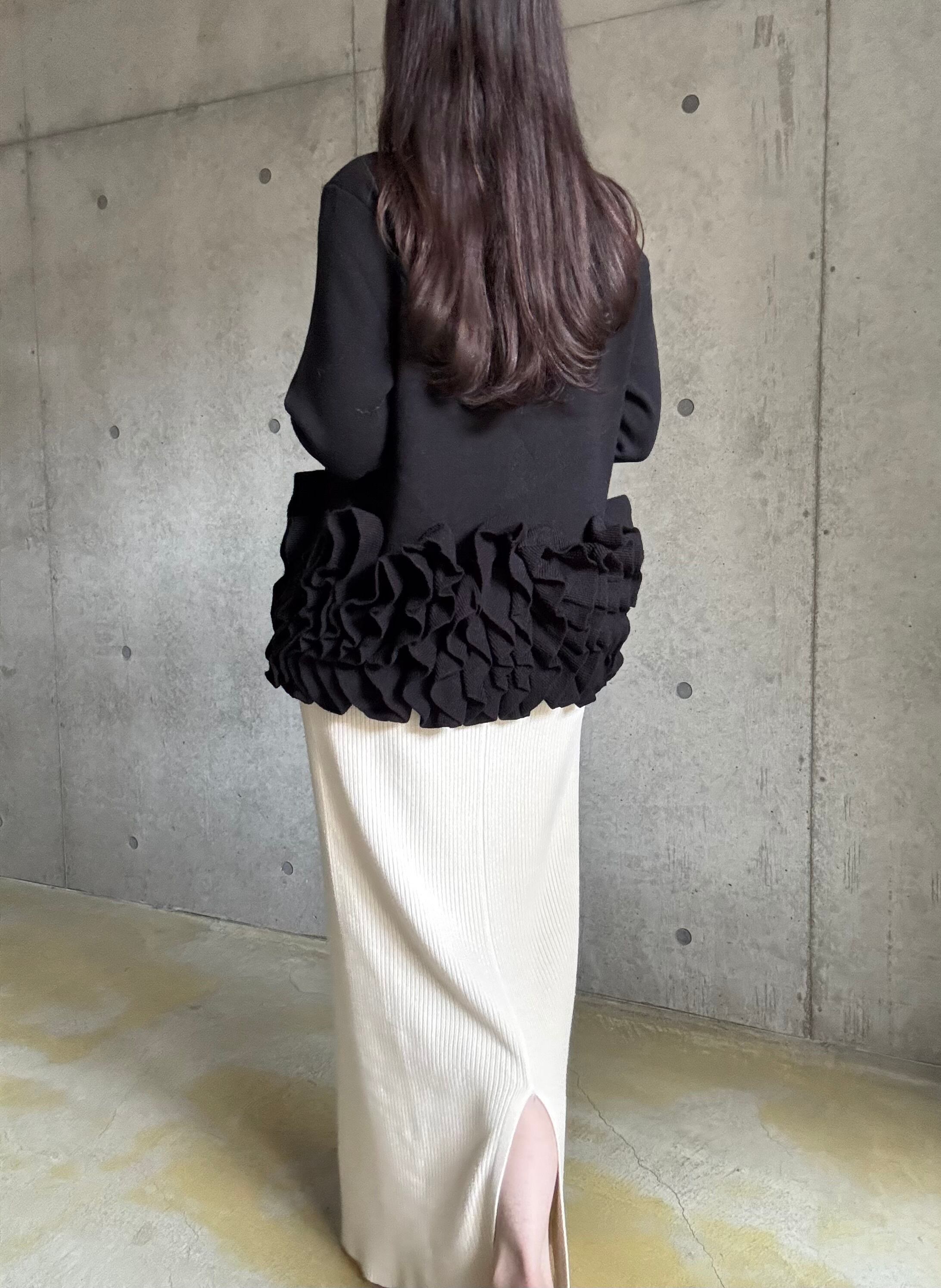 【即納】裾ボリュームフリルニットカーディガン【ブラック】