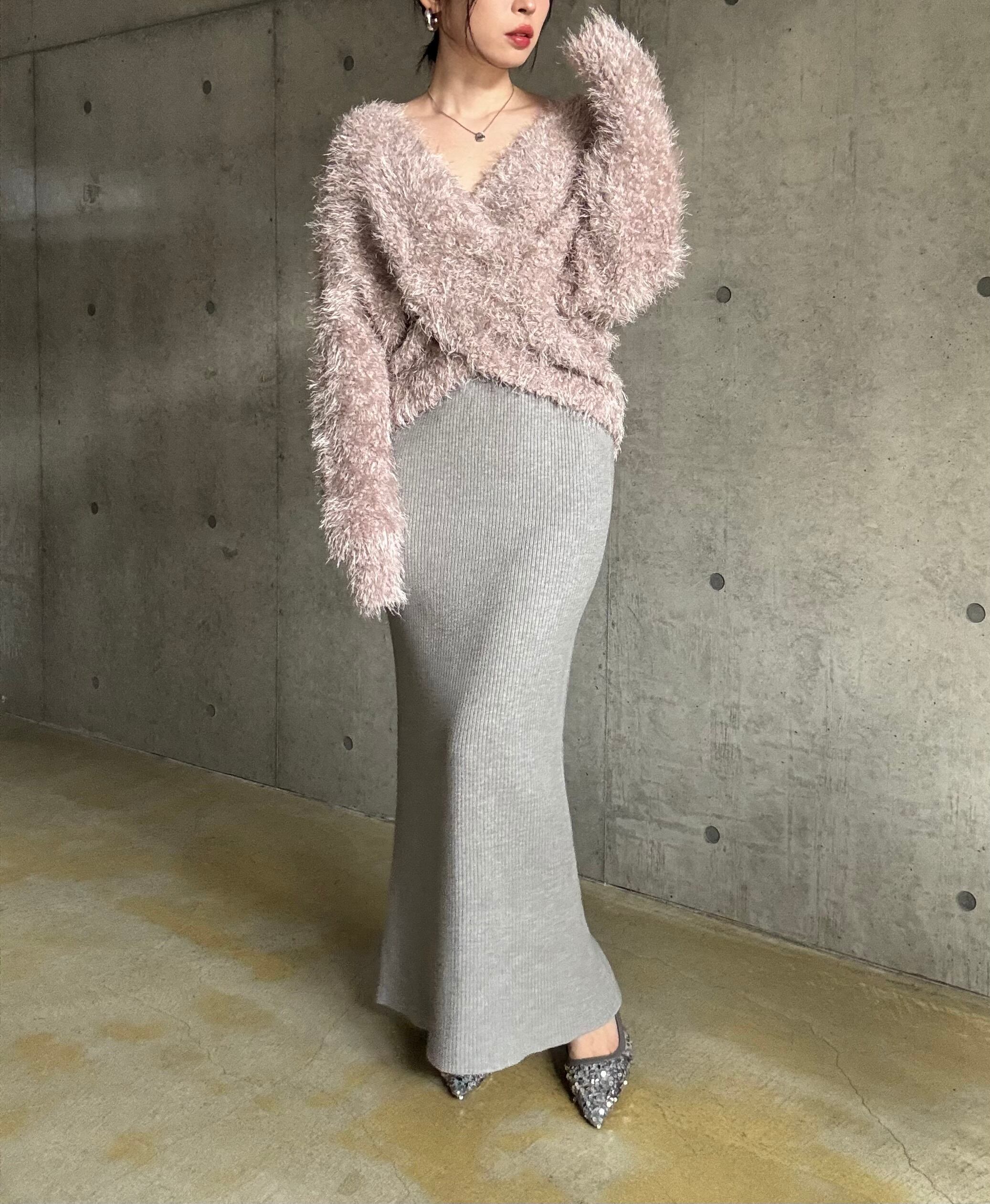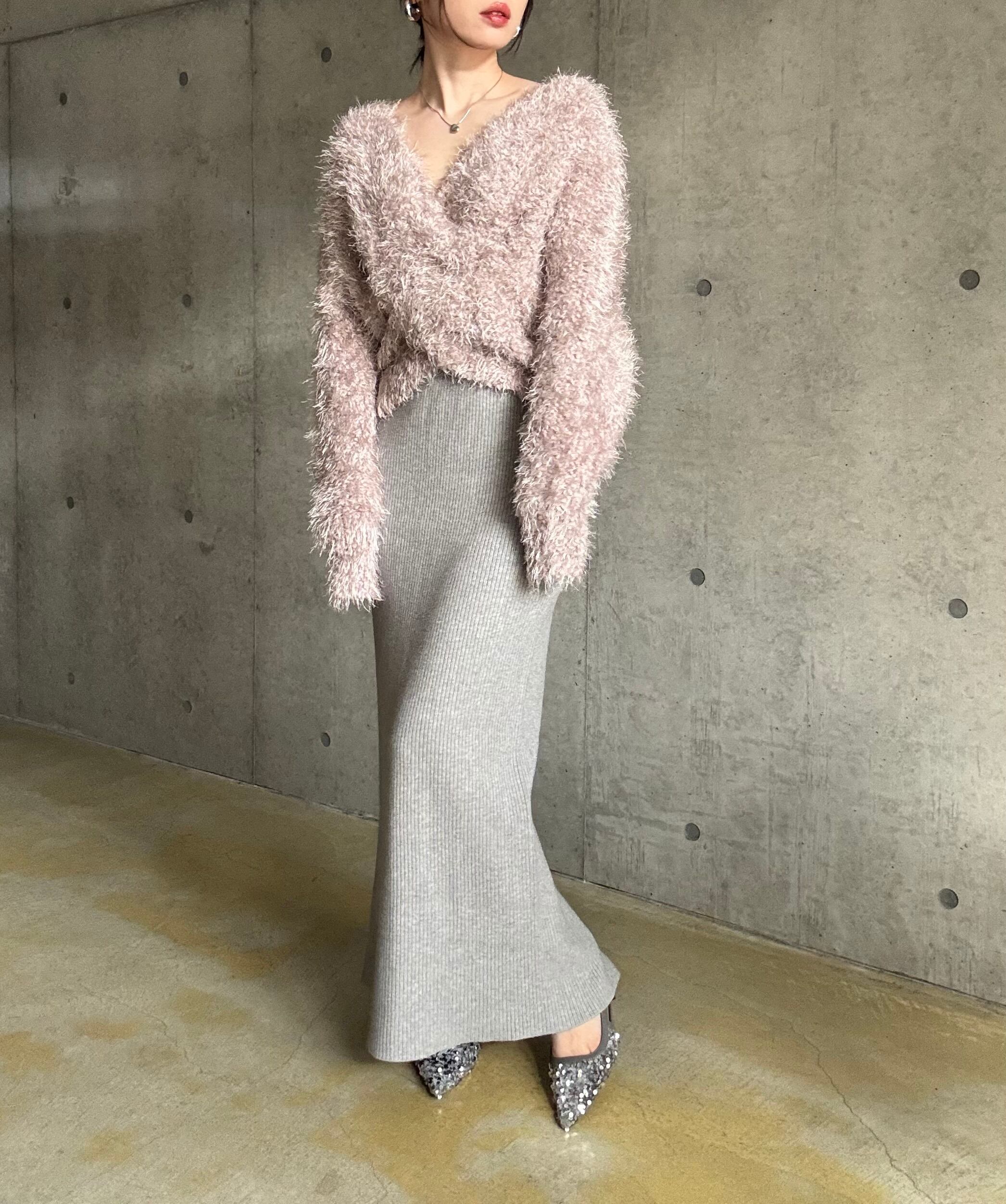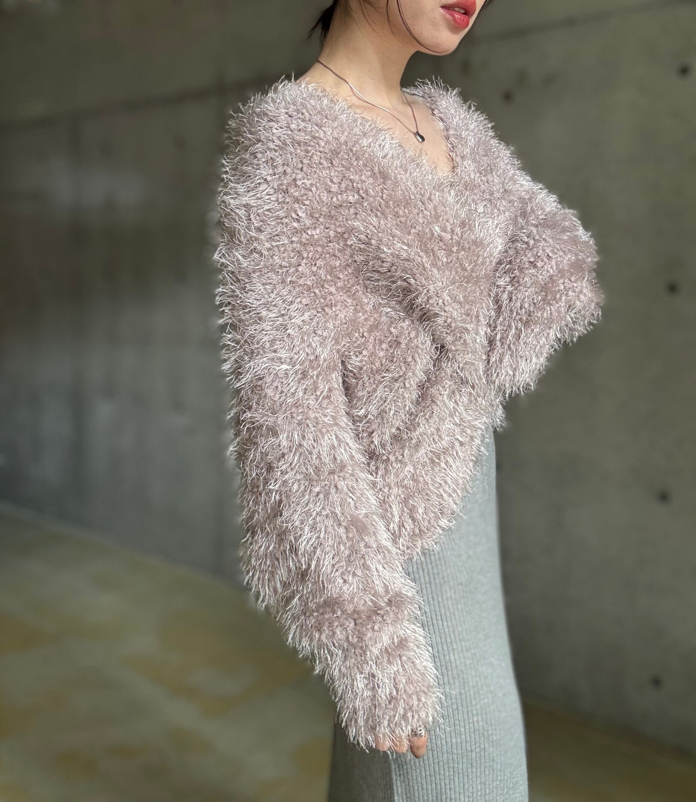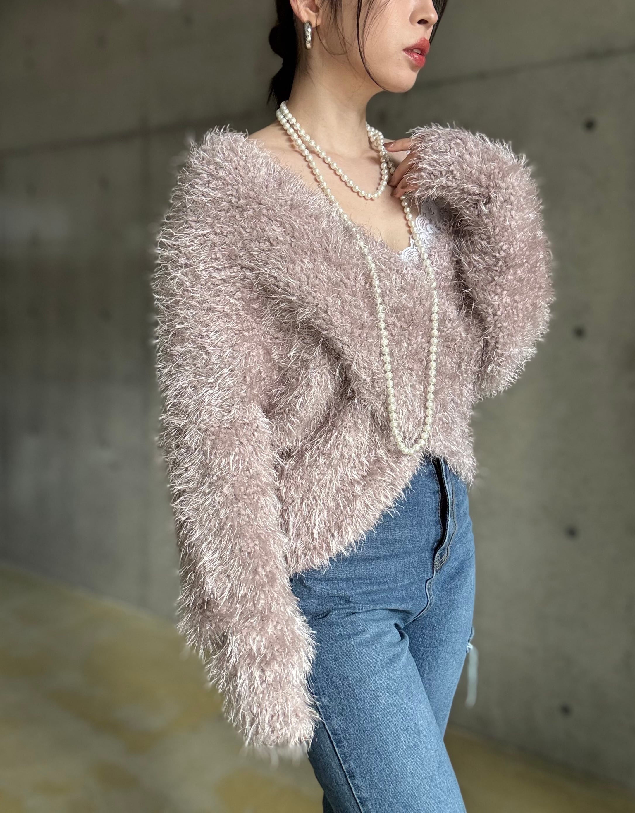 【即納】カシュクールMIXシャギーニット【ダスティピンク】