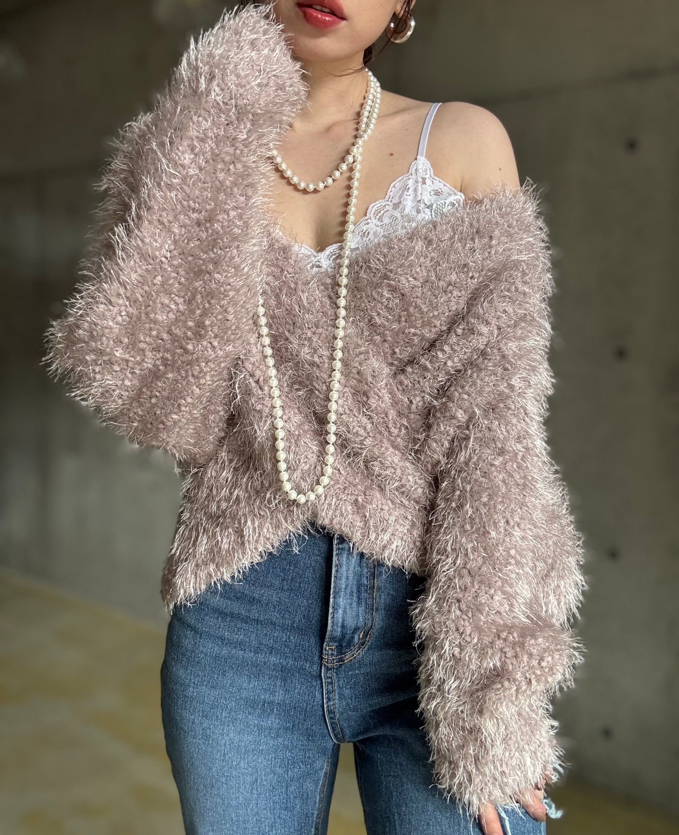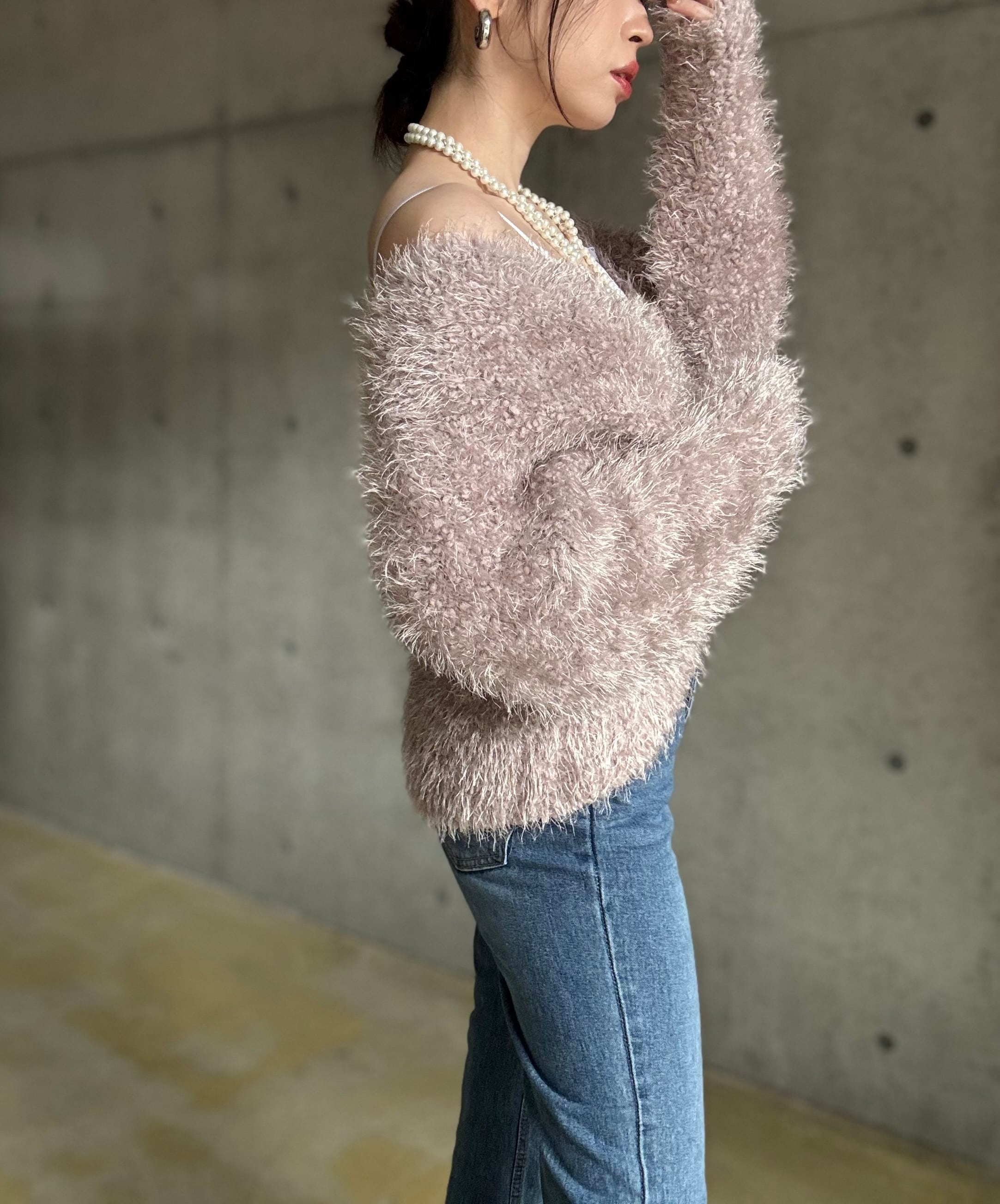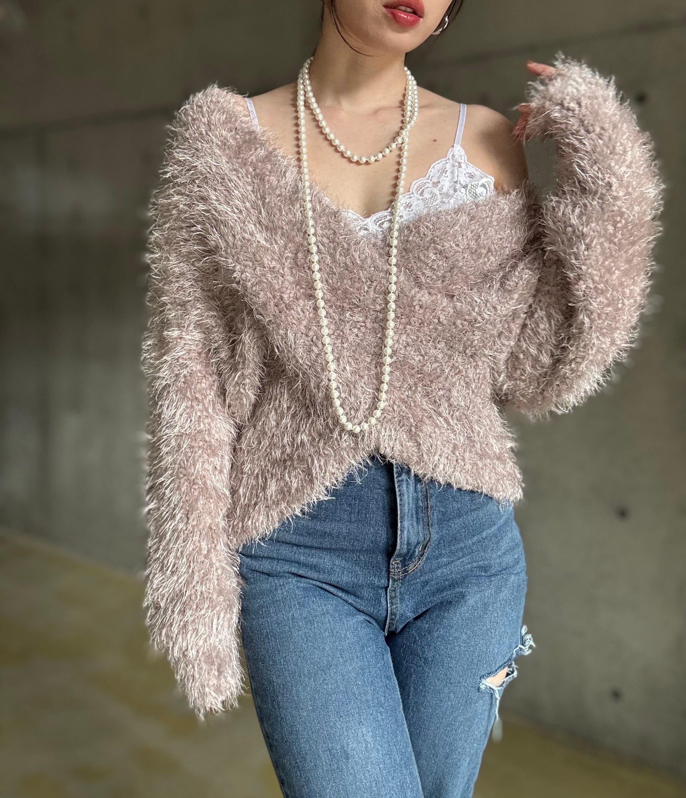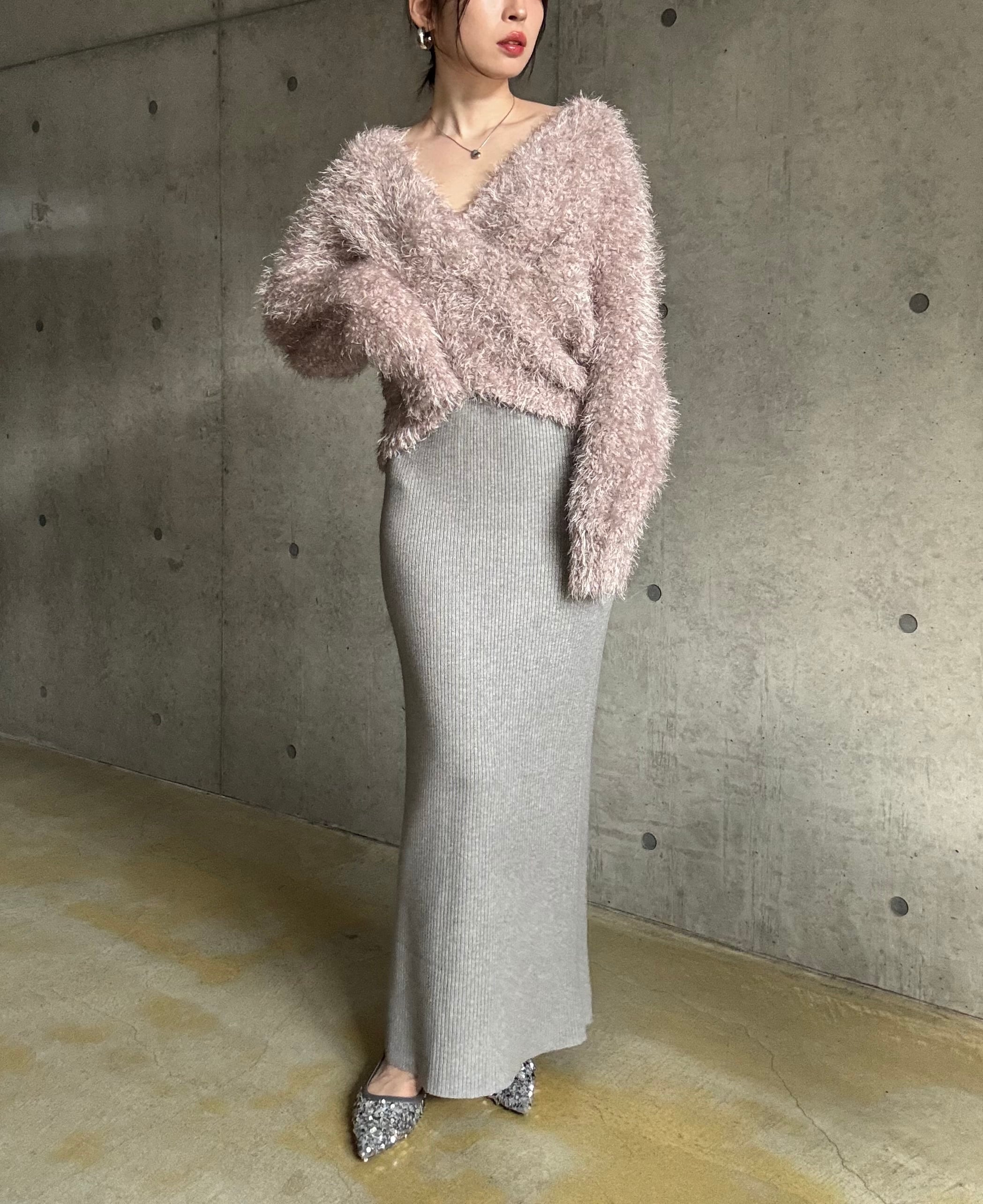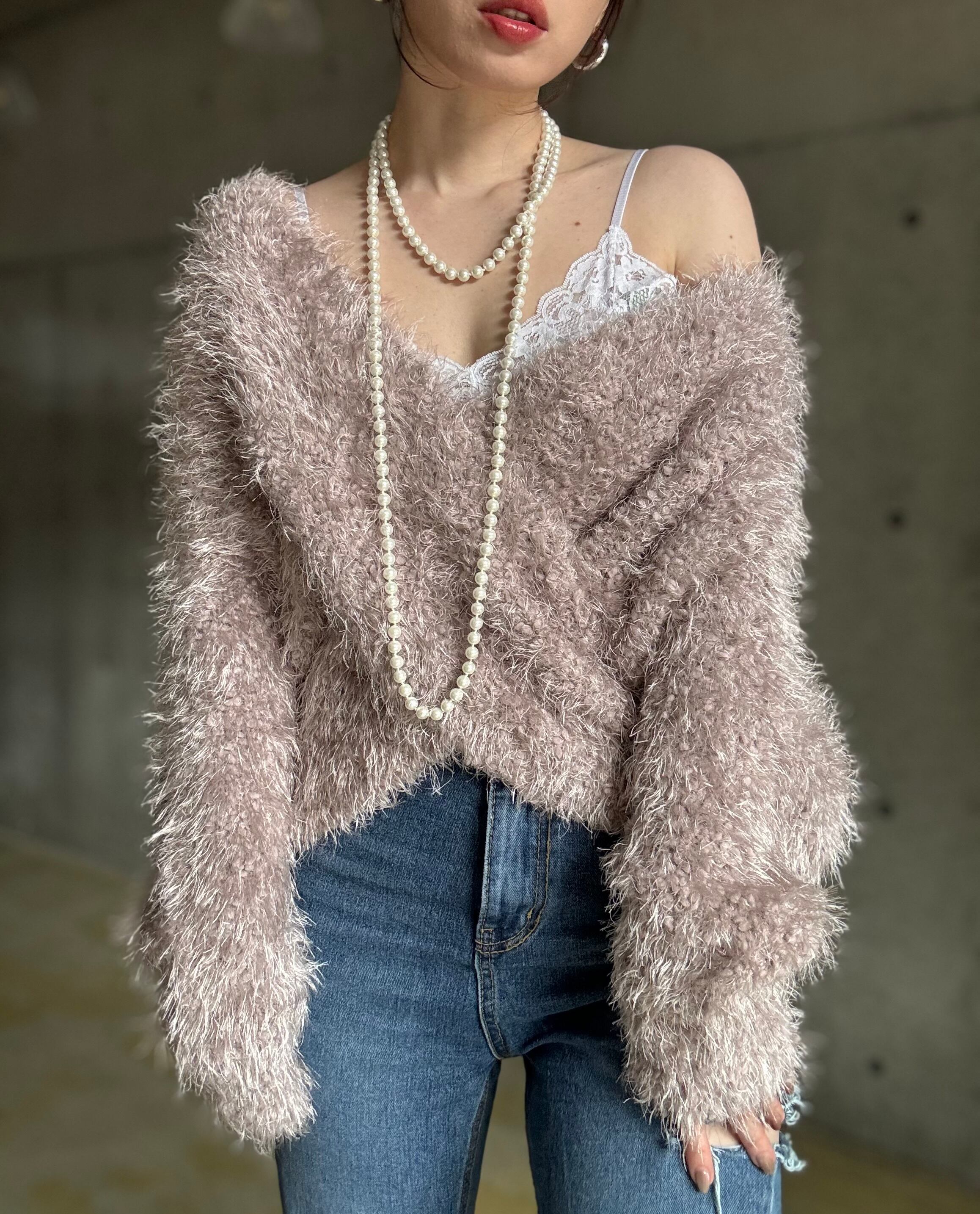 【即納】カシュクールMIXシャギーニット【ダスティピンク】