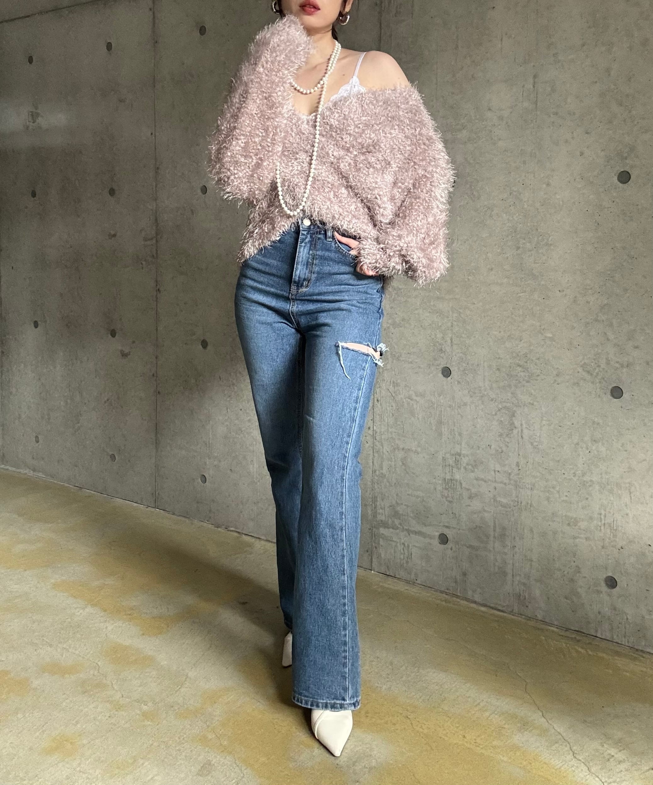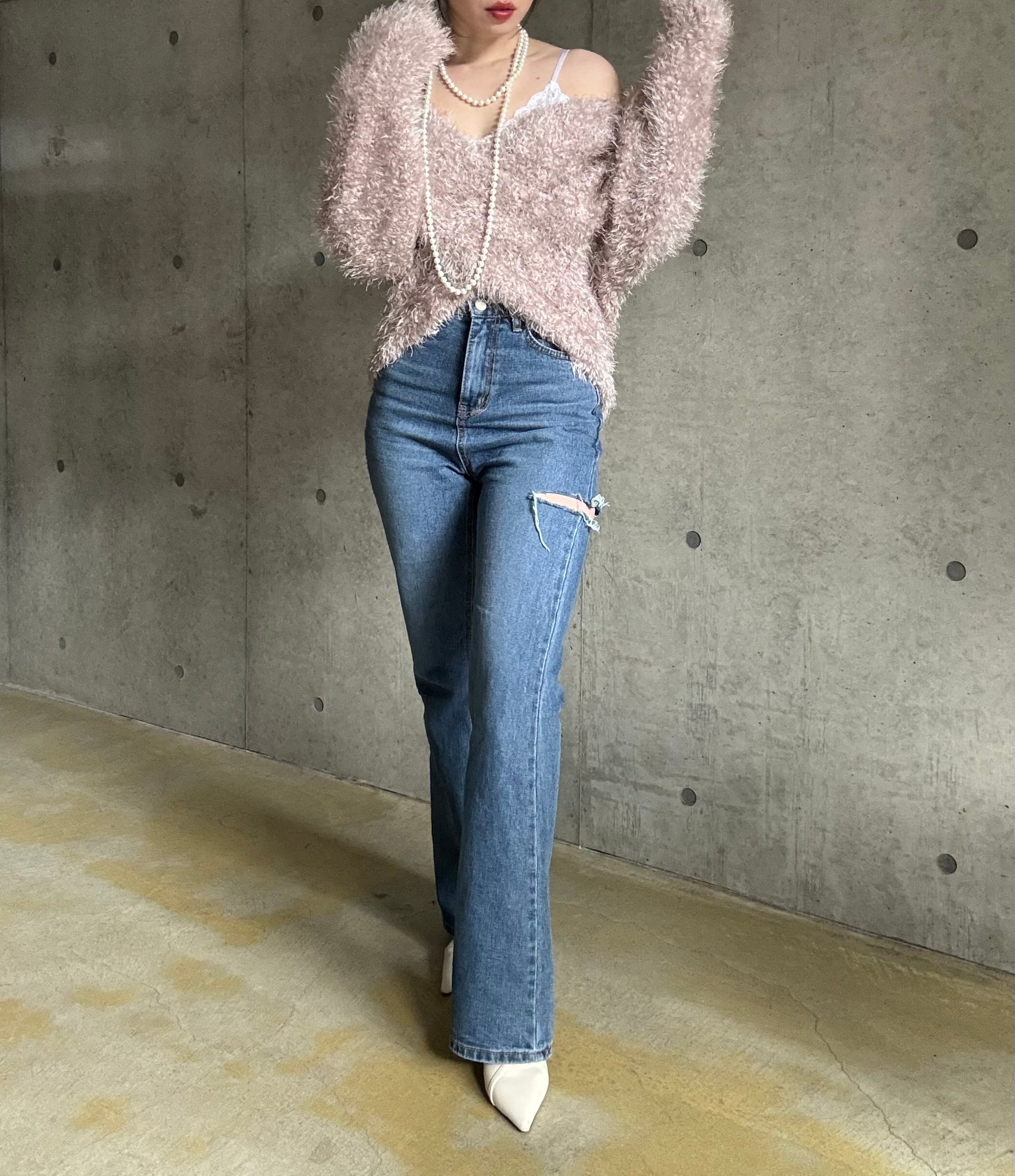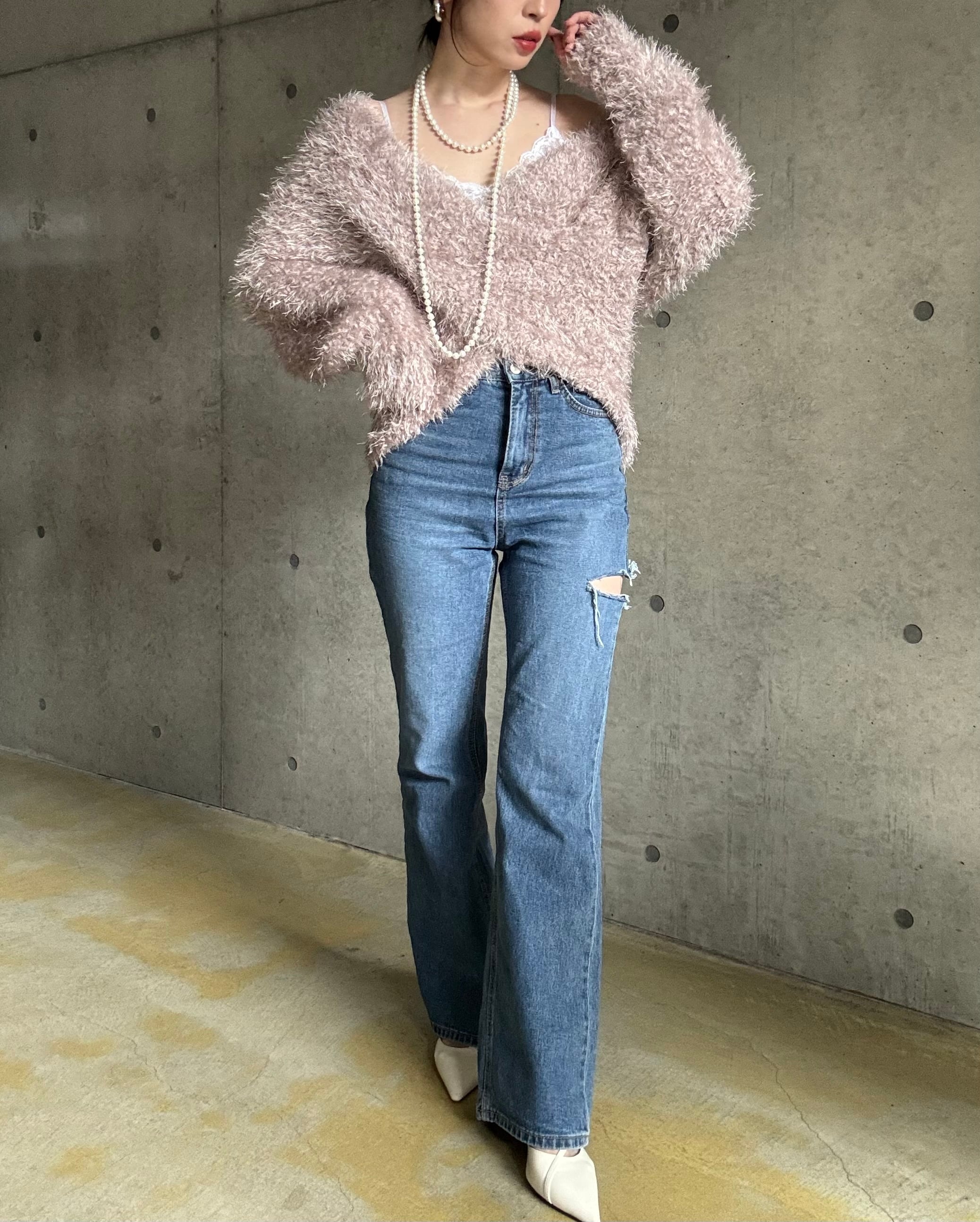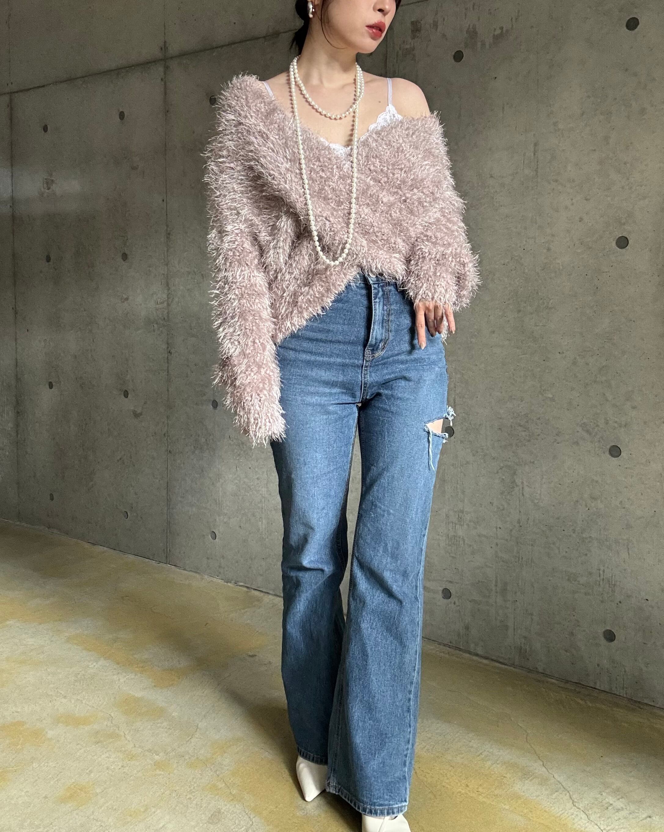 【即納】カシュクールMIXシャギーニット【ダスティピンク】
