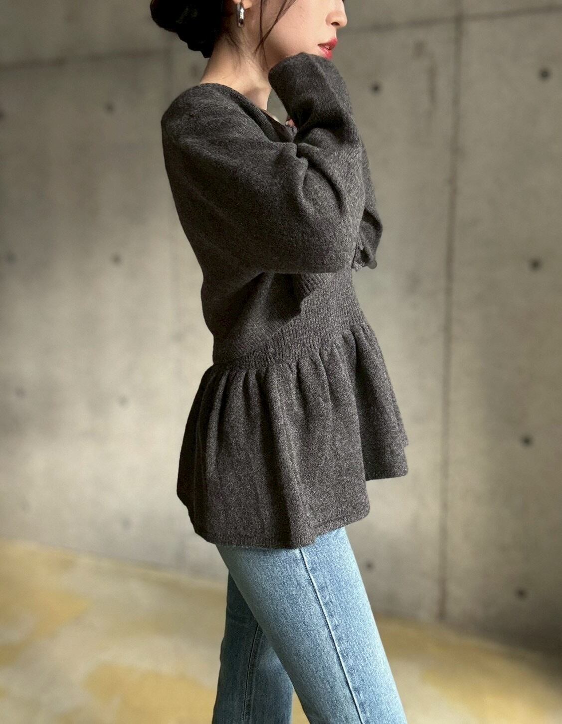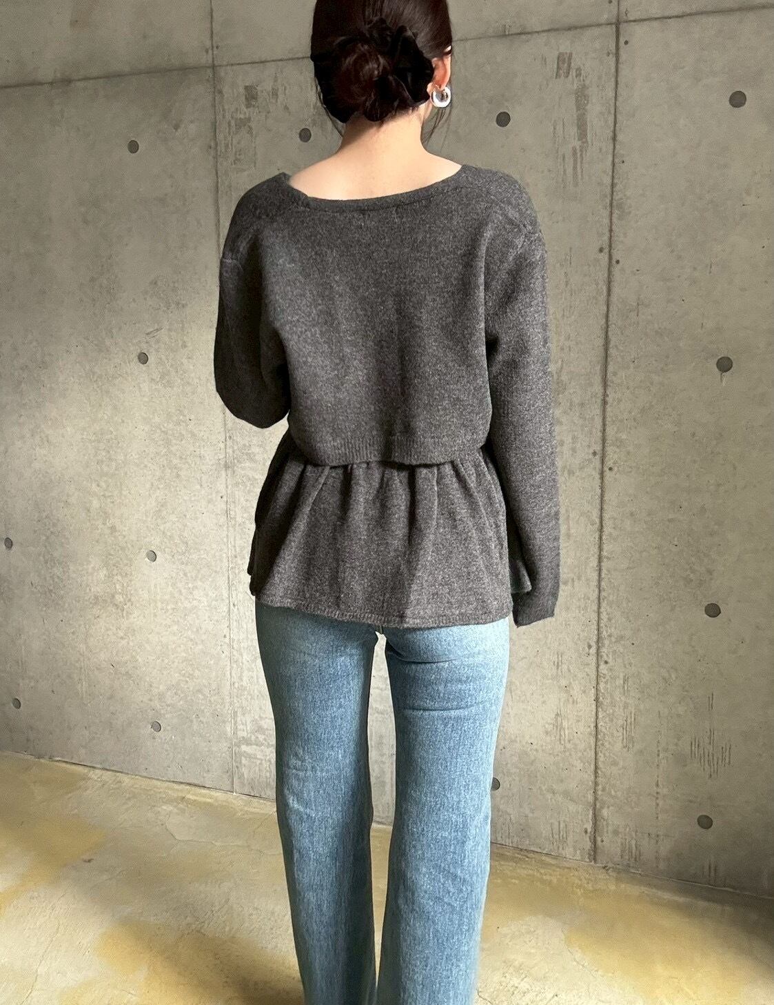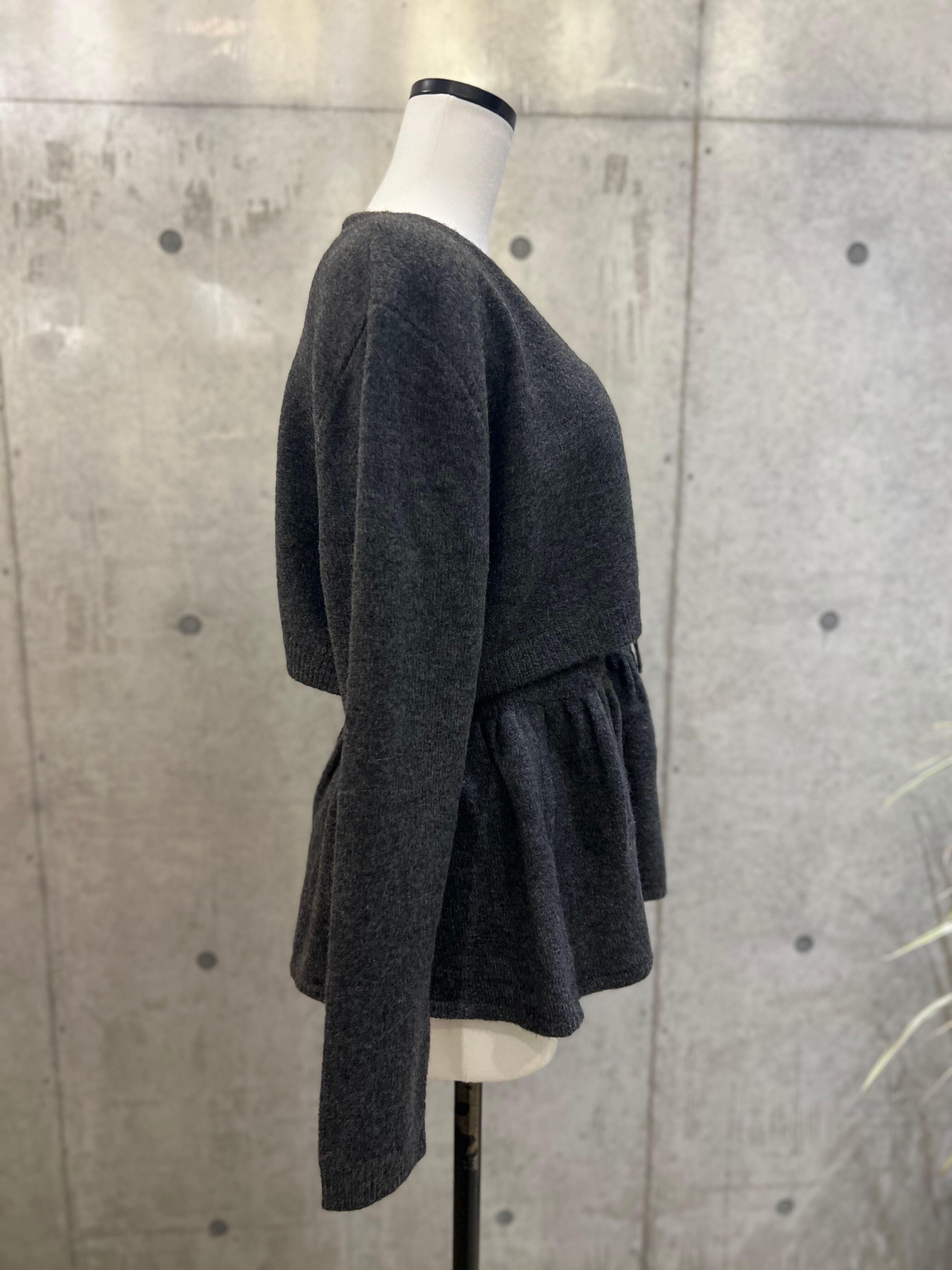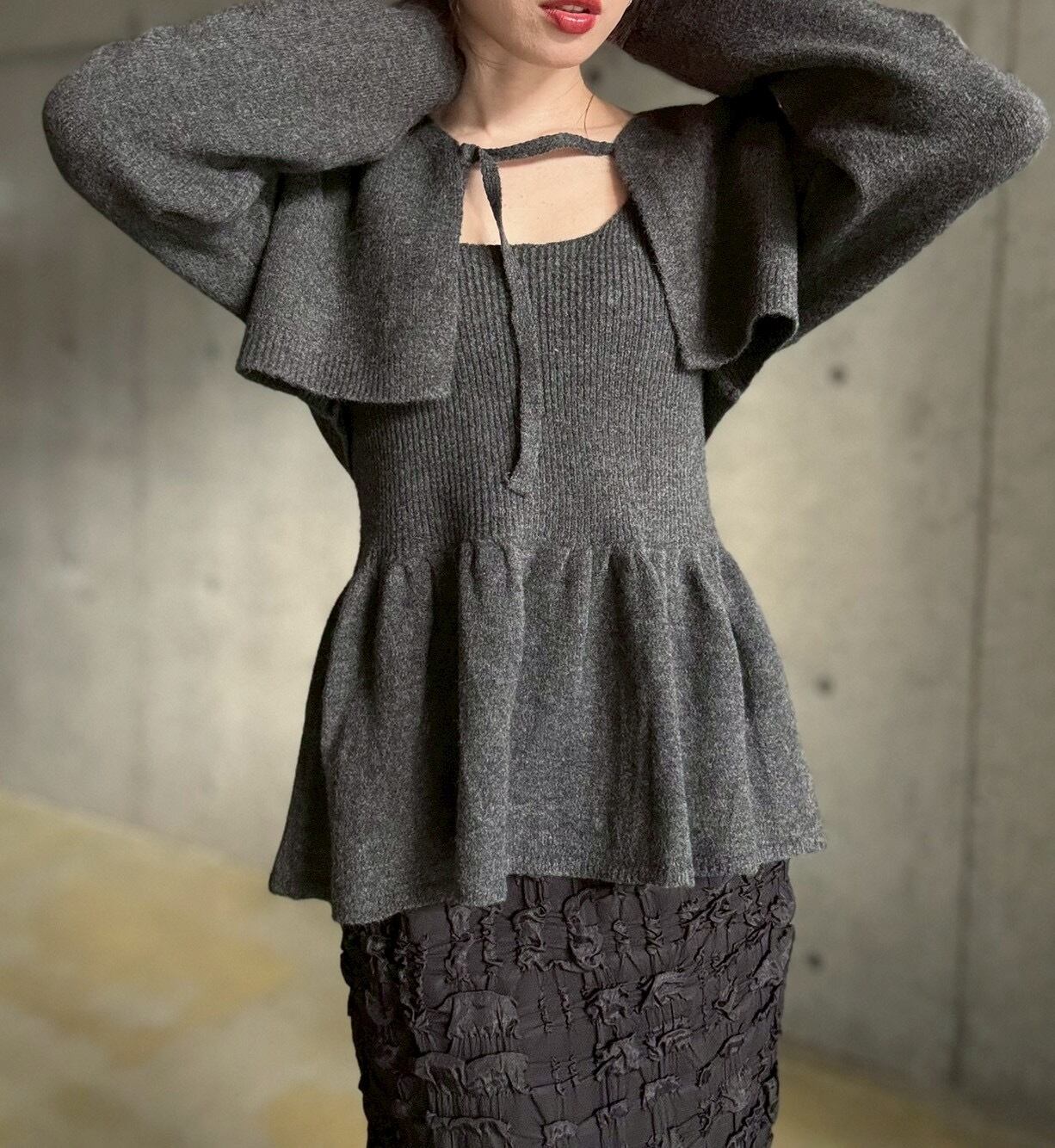 ニットペプラムキャミソール+ボレロカーディガンset【チャコール】