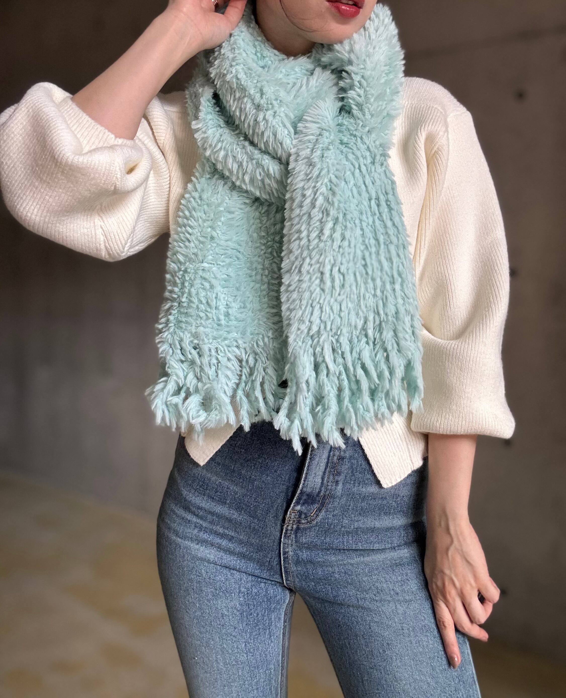 柔らかなファー糸をたっぷり使用した、肌触り最高なロングマフラー♪